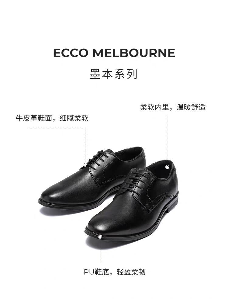 ECCO爱步男款经典德比鞋 秋季真皮皮鞋商务正装皮鞋 墨本621634