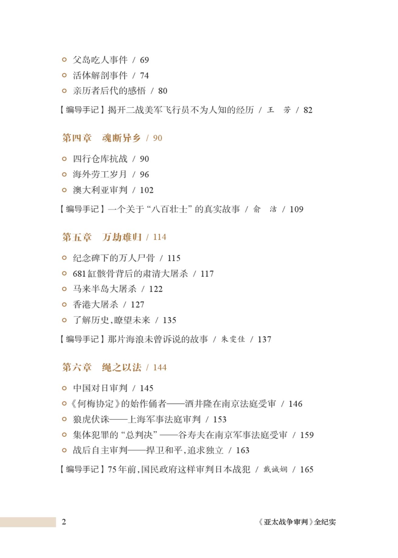《亚太战争审判》聚焦二战后各同盟国对日本BC级(乙丙级)战犯的审判,展现了日军在太平洋战场犯下的种种暴行,其中大部分事件在此之前都不为世人所知,比如“地狱航船”、活体解剖战俘事件、巴丹死亡行军、泰缅死亡铁路、大久野岛毒气工厂等历史事件,讲述了战后国际社会以法理精神惩治战争罪行的历史。本书作为纪录片《亚太战争审判》的可视化图书,讲述了亚太战争审判的全貌,展示了摄制组不远万里追寻真相,挖掘散落在世界各地的影音文档,抢救性采访海内外事件亲历者及后人,揭开尘封的历史,只为告诉世界和平的价值。