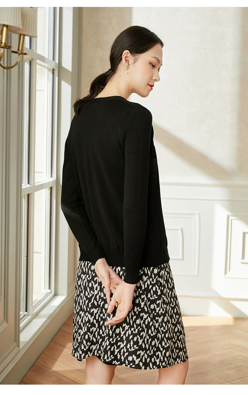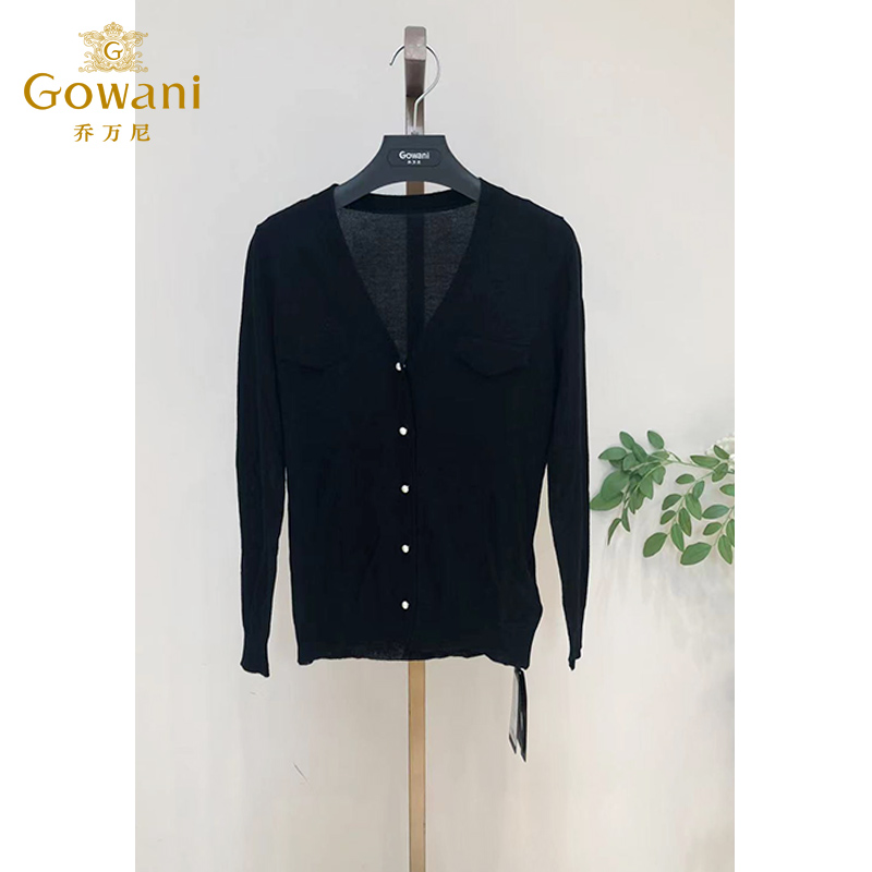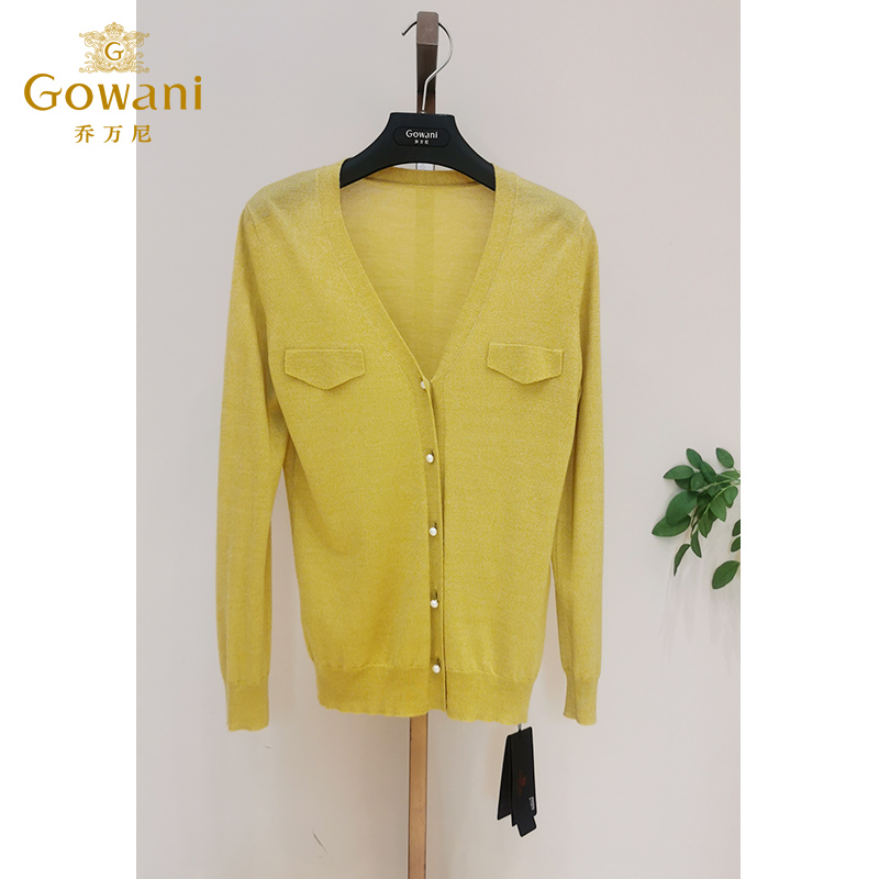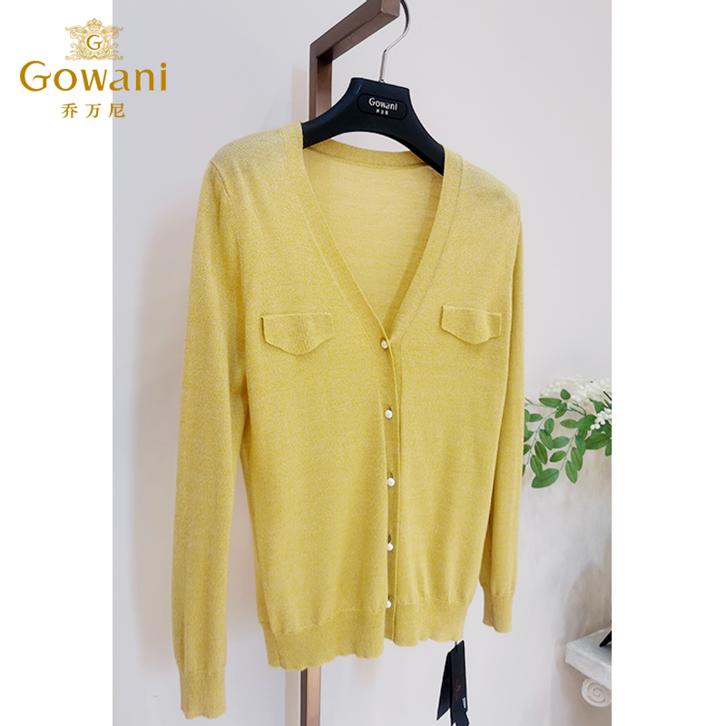 乔万尼冰丝针织衫女薄款小香风开衫v领春款外套针织衫长袖EI1M950