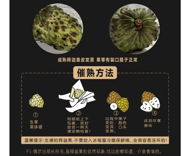 【斌哥优选】云南凤梨释迦果。甜出天际,冰淇淋口感,凤梨香+甘蔗甜。表皮发黑发软就是成熟,不是坏了哦。