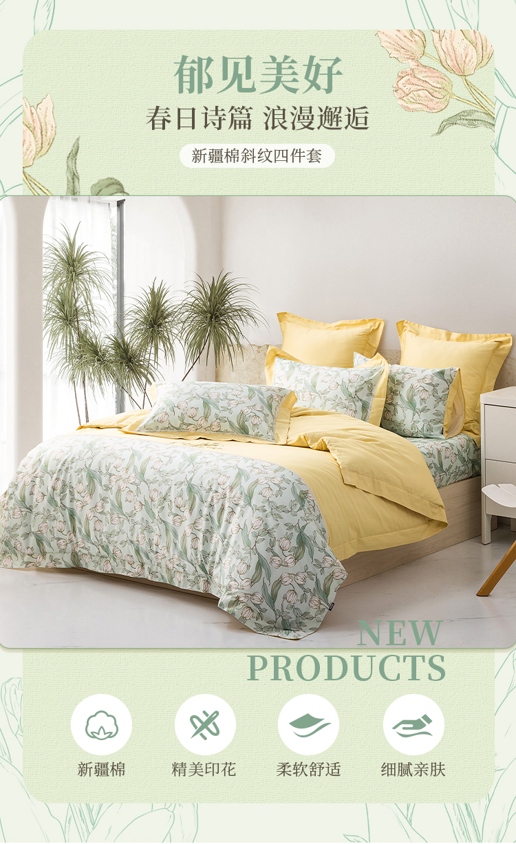 多喜爱 全棉新疆棉斜纹三/四件套 郁见美好