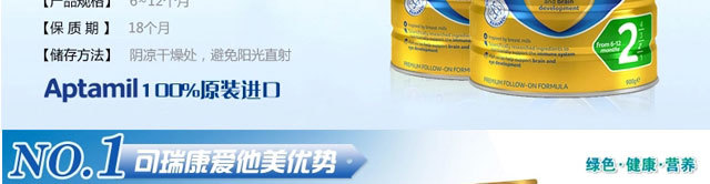 德国可瑞康爱他美婴儿奶粉金装2段900g(2盒装) 商品图1