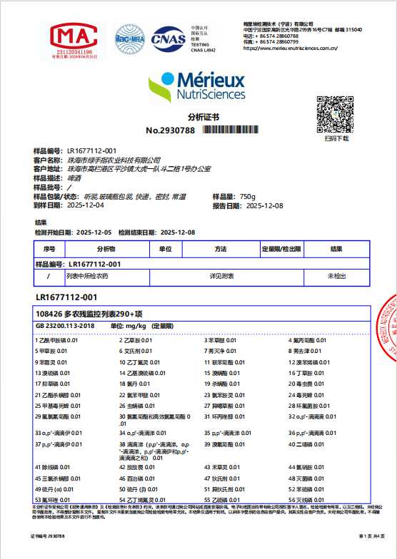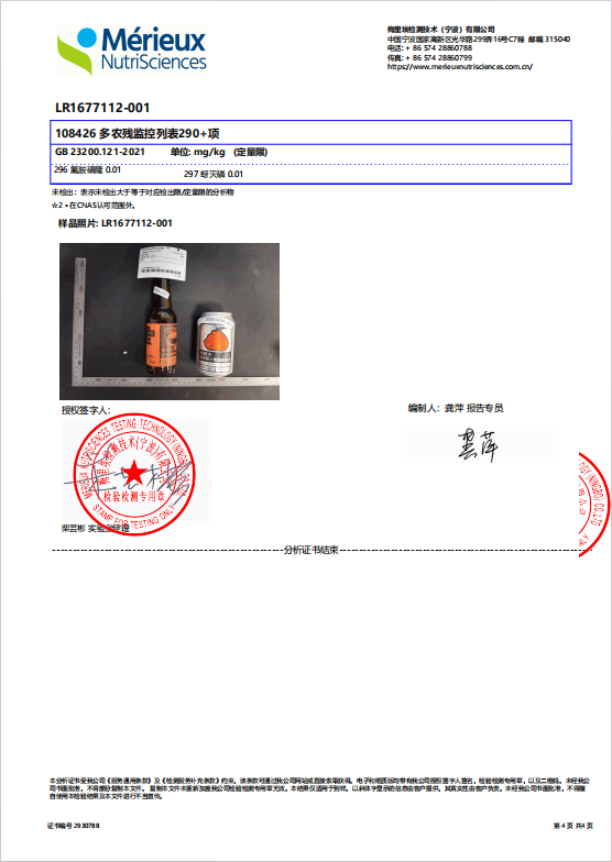 耙耙柑原料果汁和啤酒成品也做了检测,无农残检出。