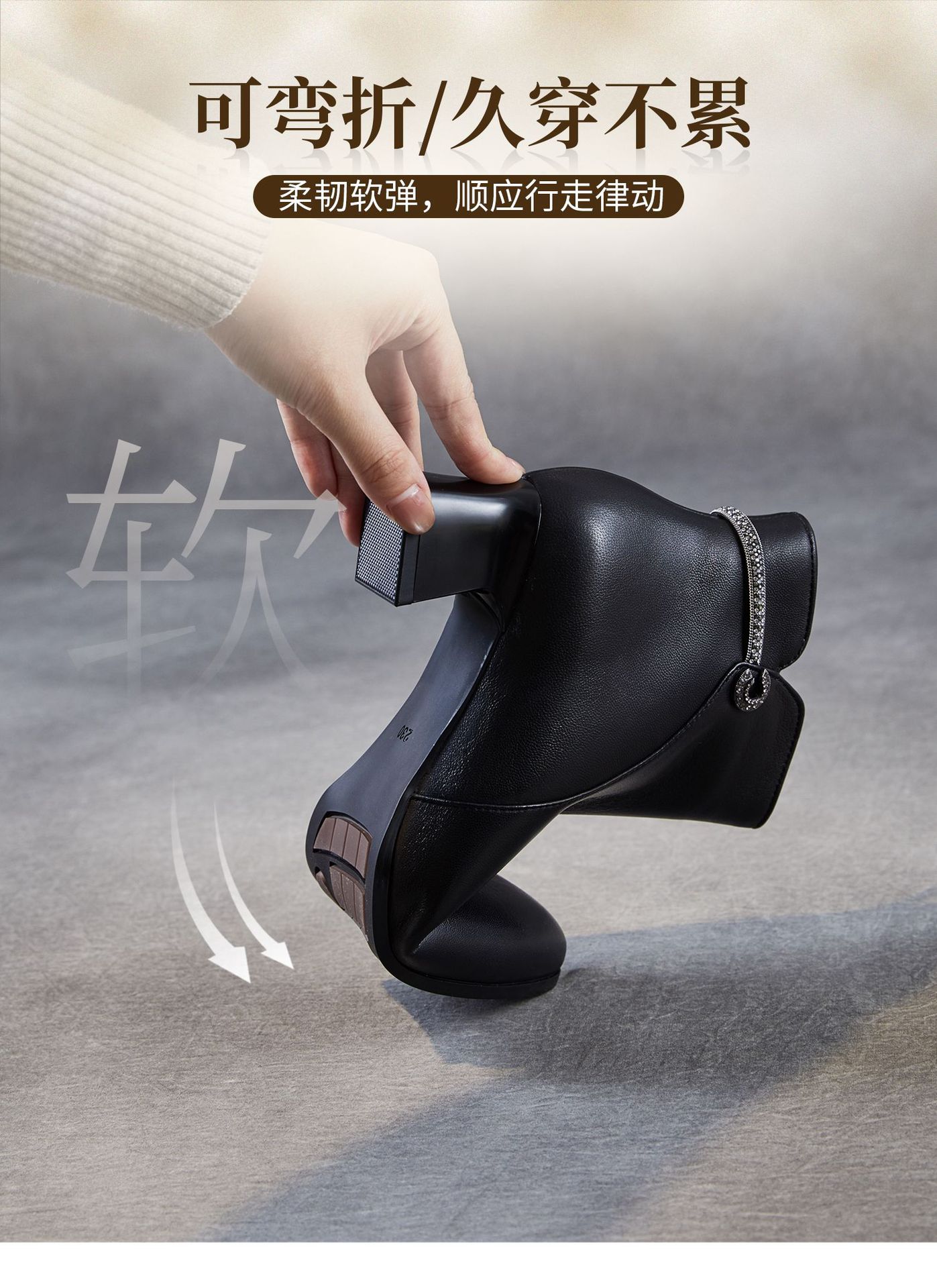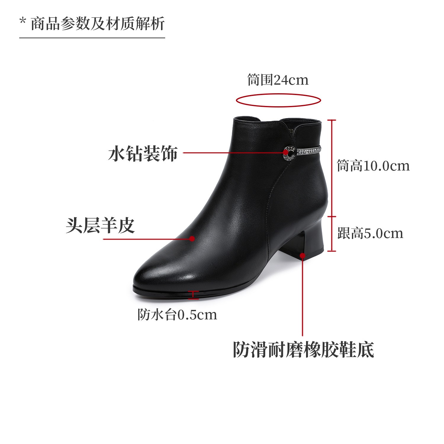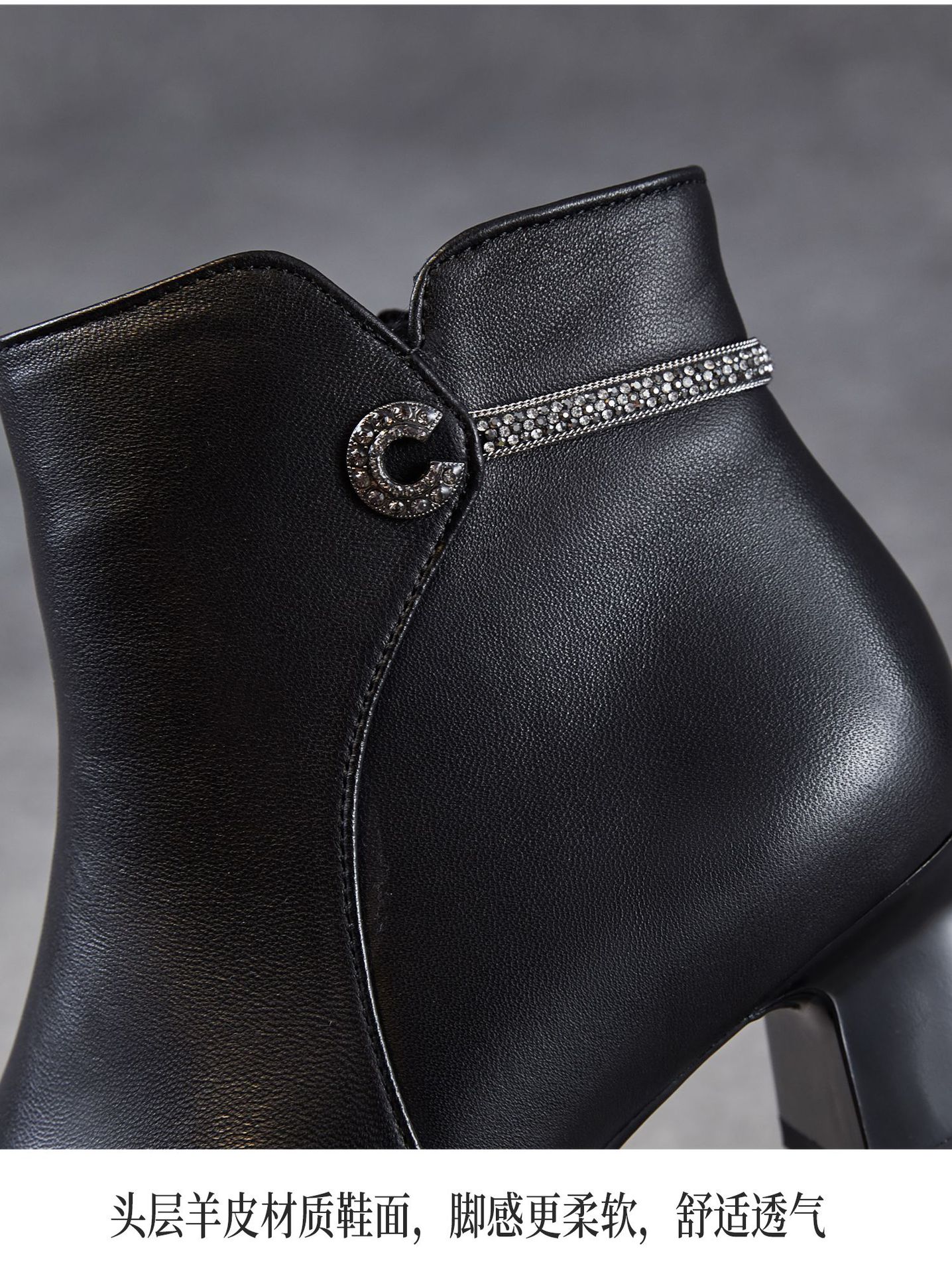 ZM 258687靴子时装靴加绒真皮尖头短靴粗高跟水钻皮靴 商品图4
