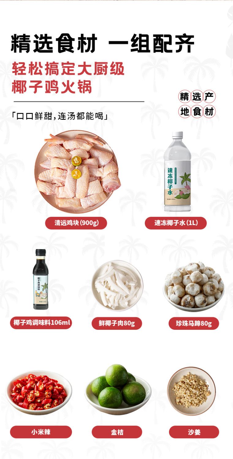 肉嫩汤鲜 | 喜辉海南椰子鸡火锅套餐(清远鸡) 15分钟在家轻松搞定大厨级椰子鸡 新鲜鸡肉套餐食材 4人份