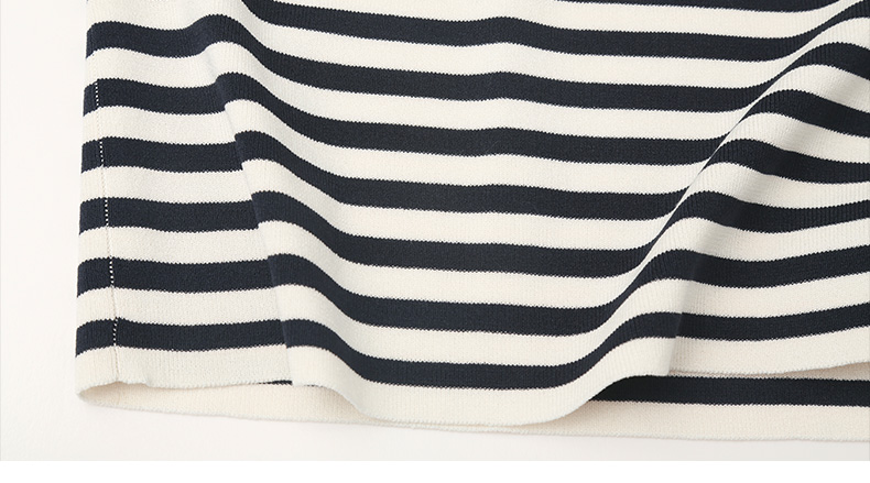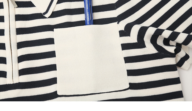 轻奢高级感条纹 Polo 领针织连衣裙女 黑白撞色半拉链口袋显瘦直筒 T 恤裙