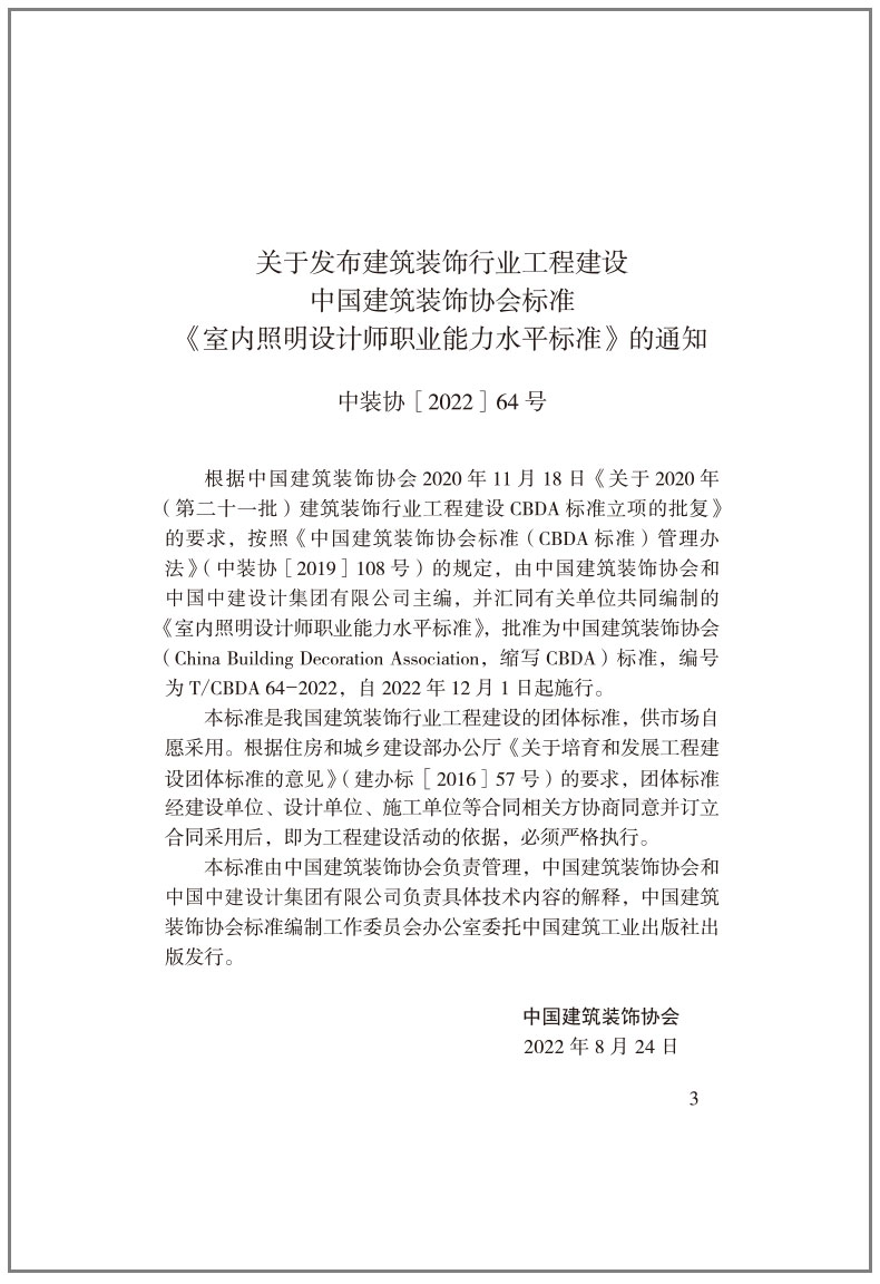书名:室内照明设计师职业能力水平标准T/CBDA64-2022