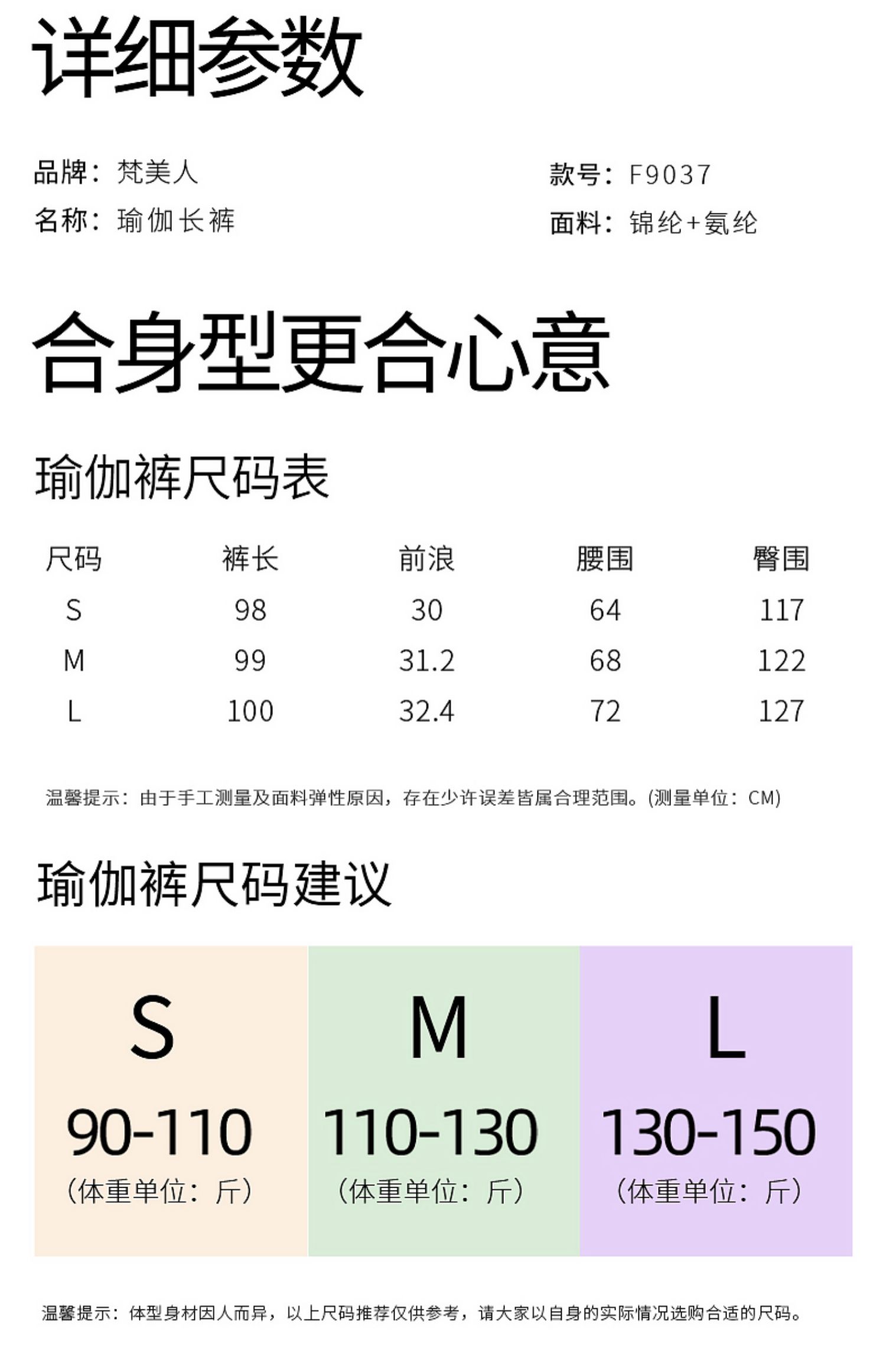 梵美人 F8071 瑜伽九分裤 轻薄防晒裸感 莱卡氨纶 无松紧 无尴尬线