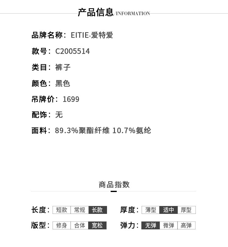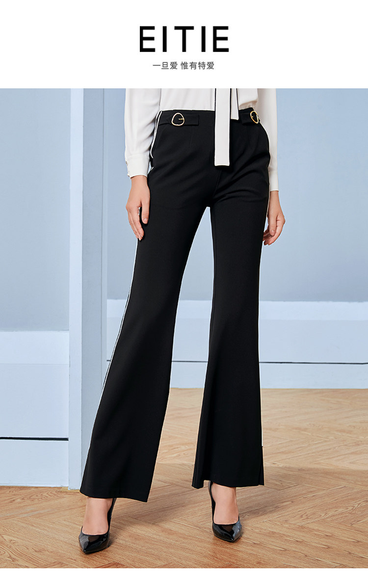 EITIE爱特爱秋季新款时尚通勤职业百搭显瘦显高微喇长裤女裤C2005514