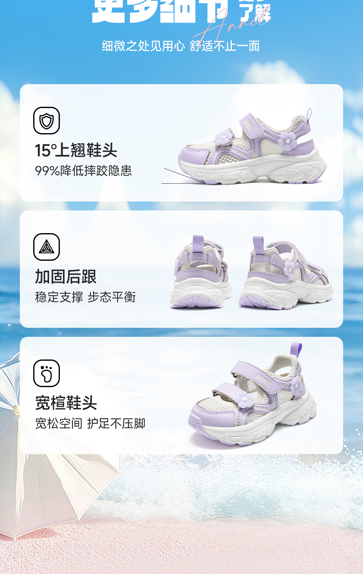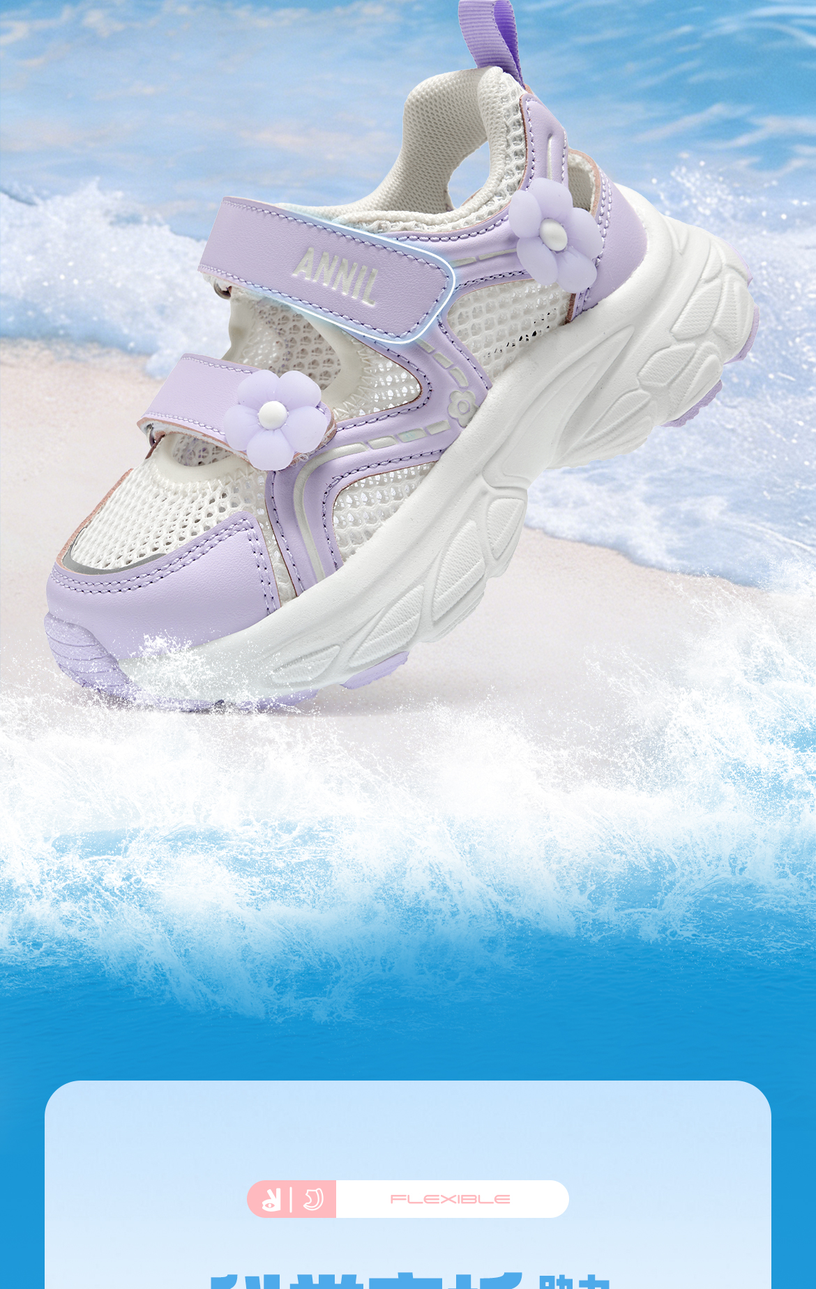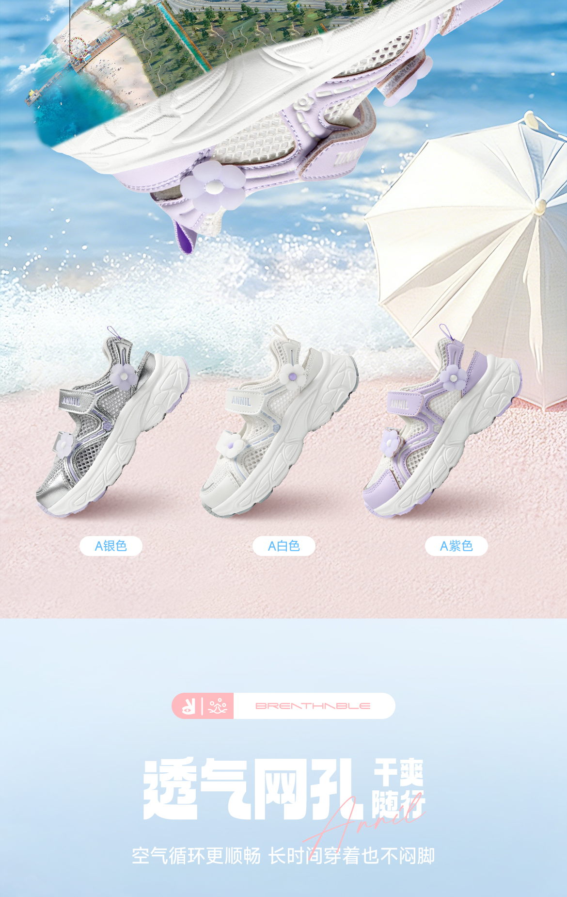 ANNIL/安奈儿童鞋女童夏季鞋子软底运动凉鞋防滑童鞋公主风HG6205792