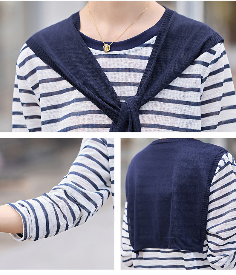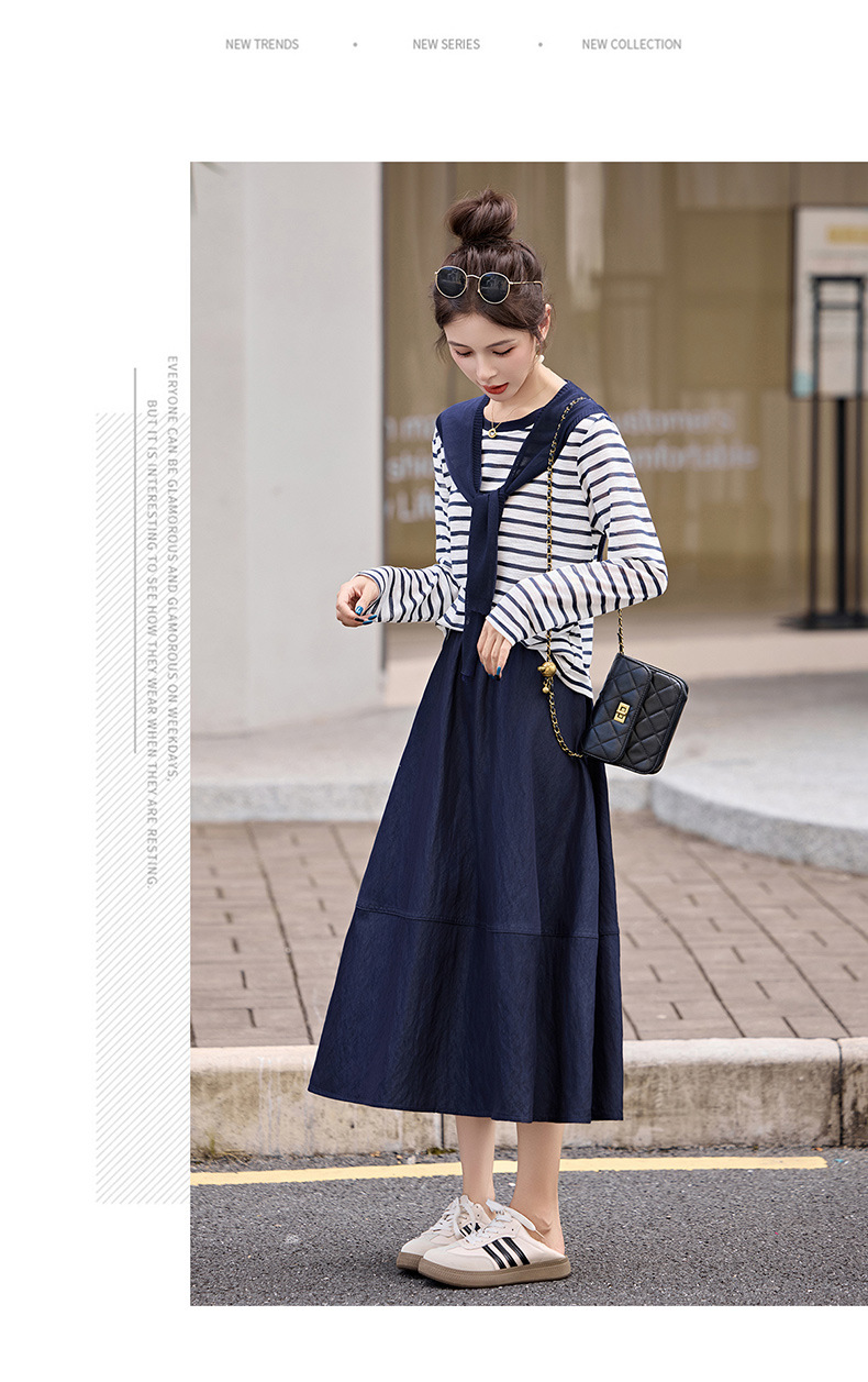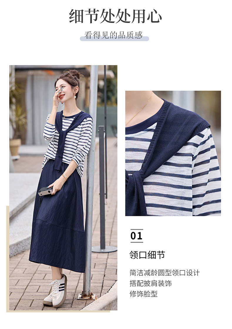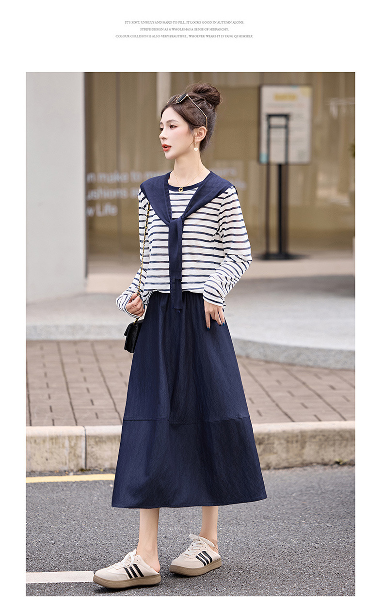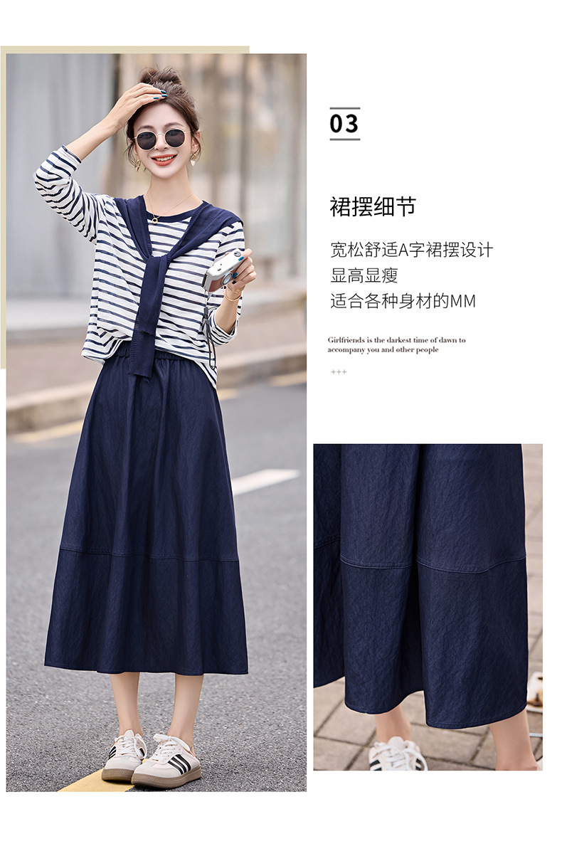 时尚条纹T恤上衣半身裙套装,韩系显瘦宽松减龄两件套HR-LNS9766