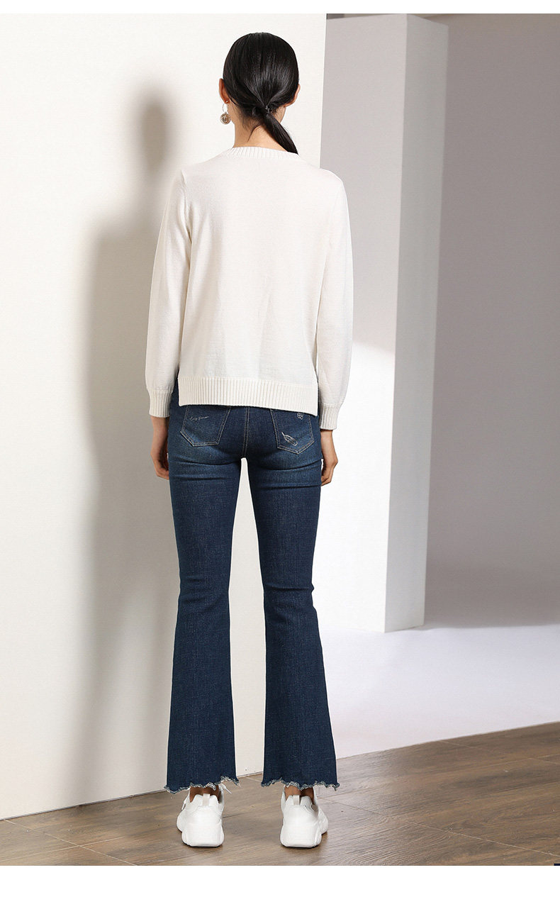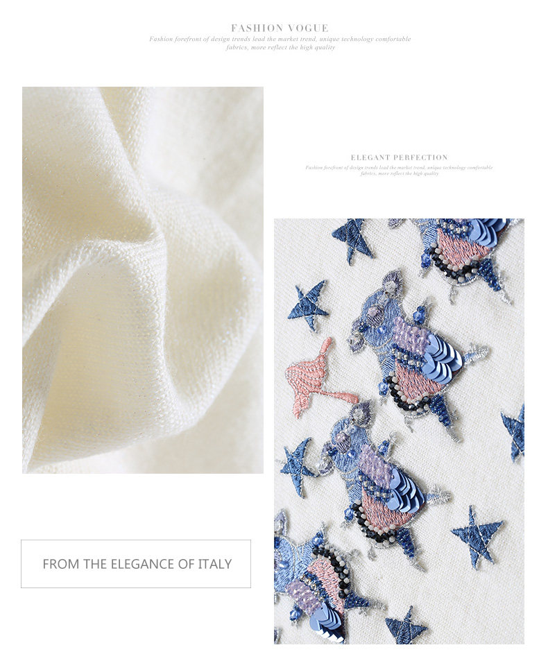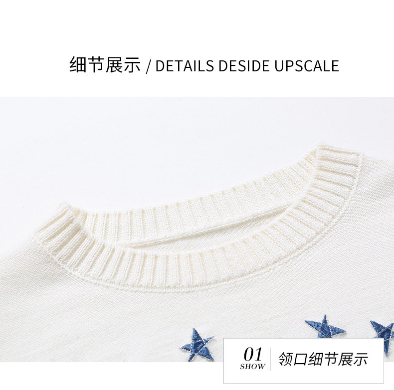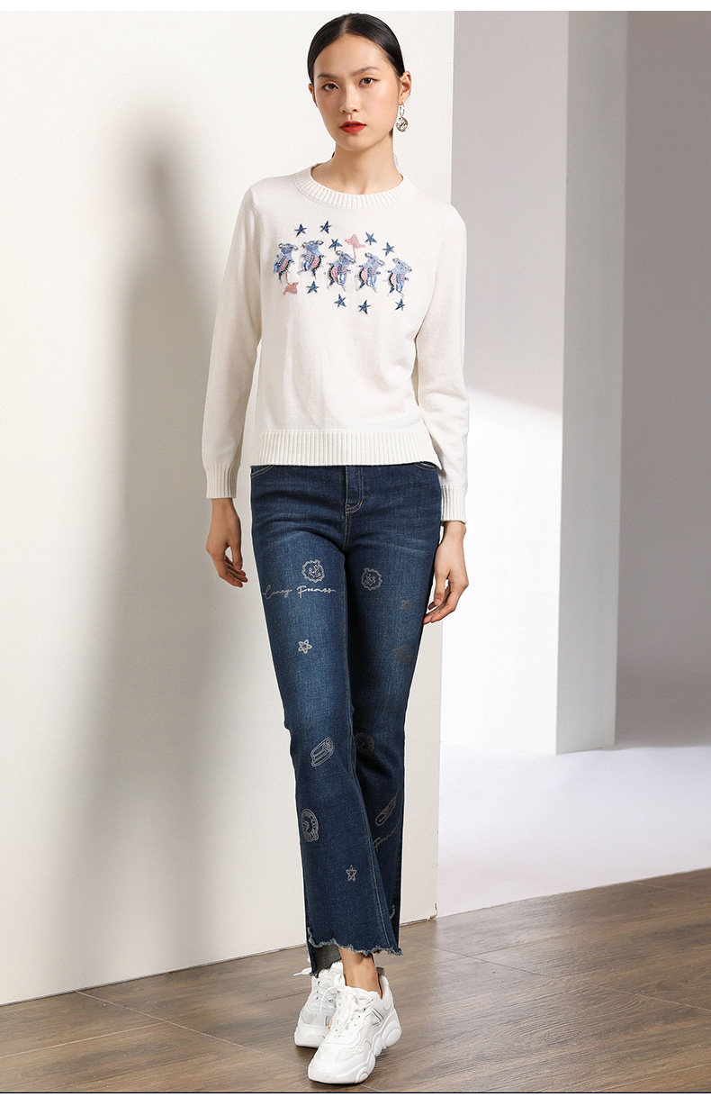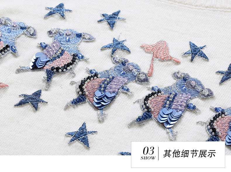 乔万尼秋装羊毛针织衫白色宽松贴布绣花外穿长袖上衣EN3M389