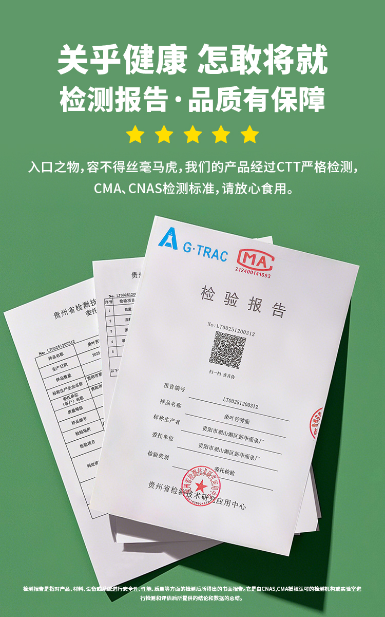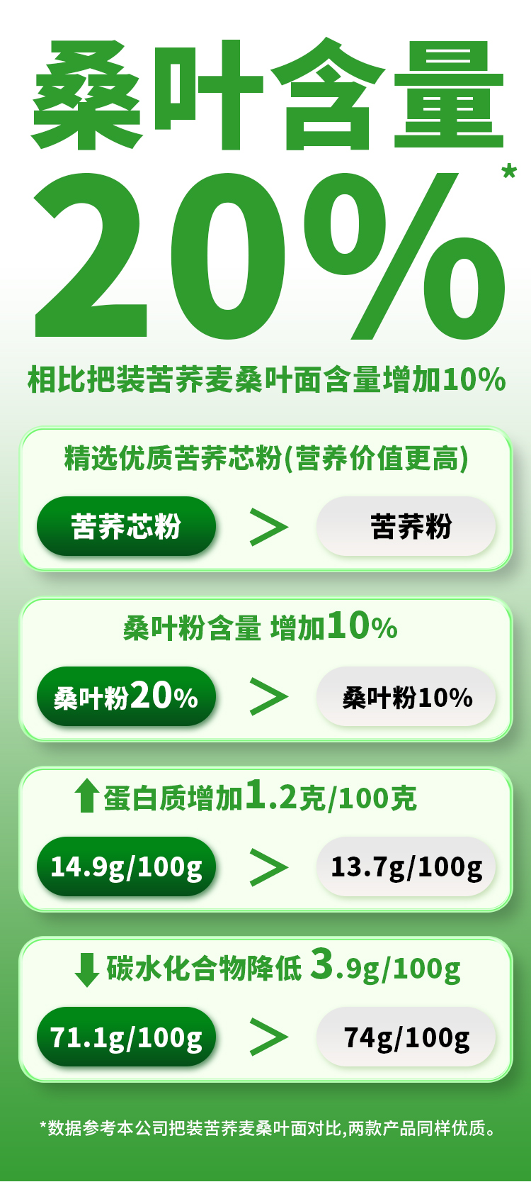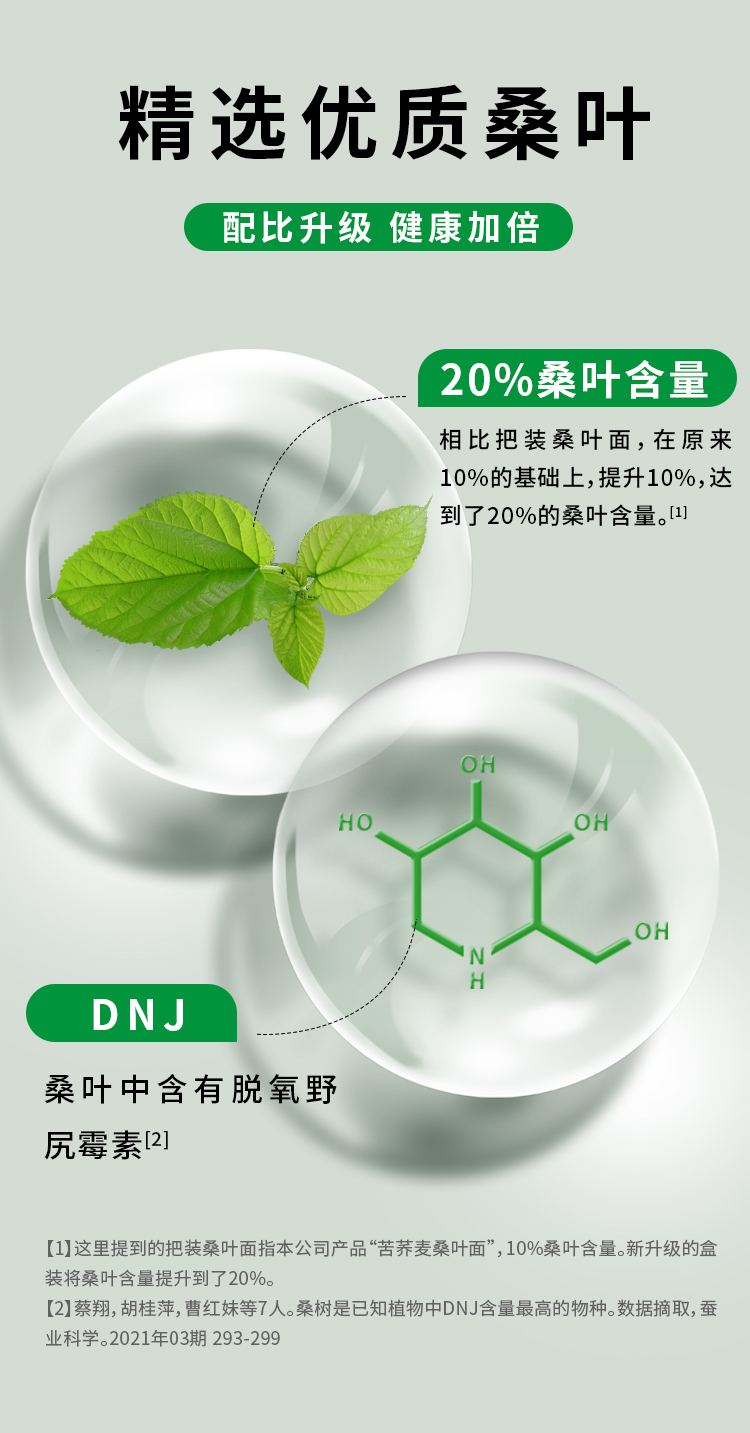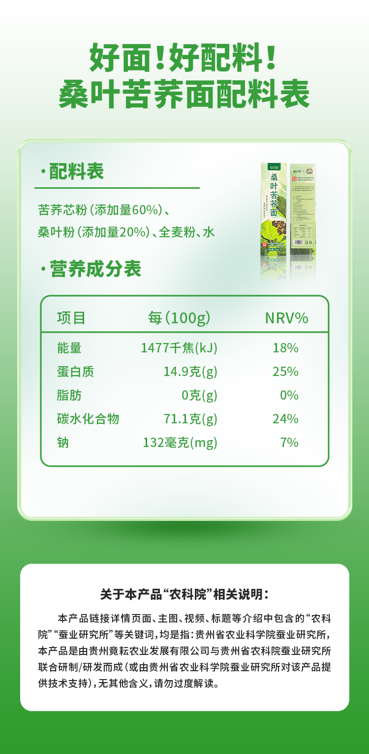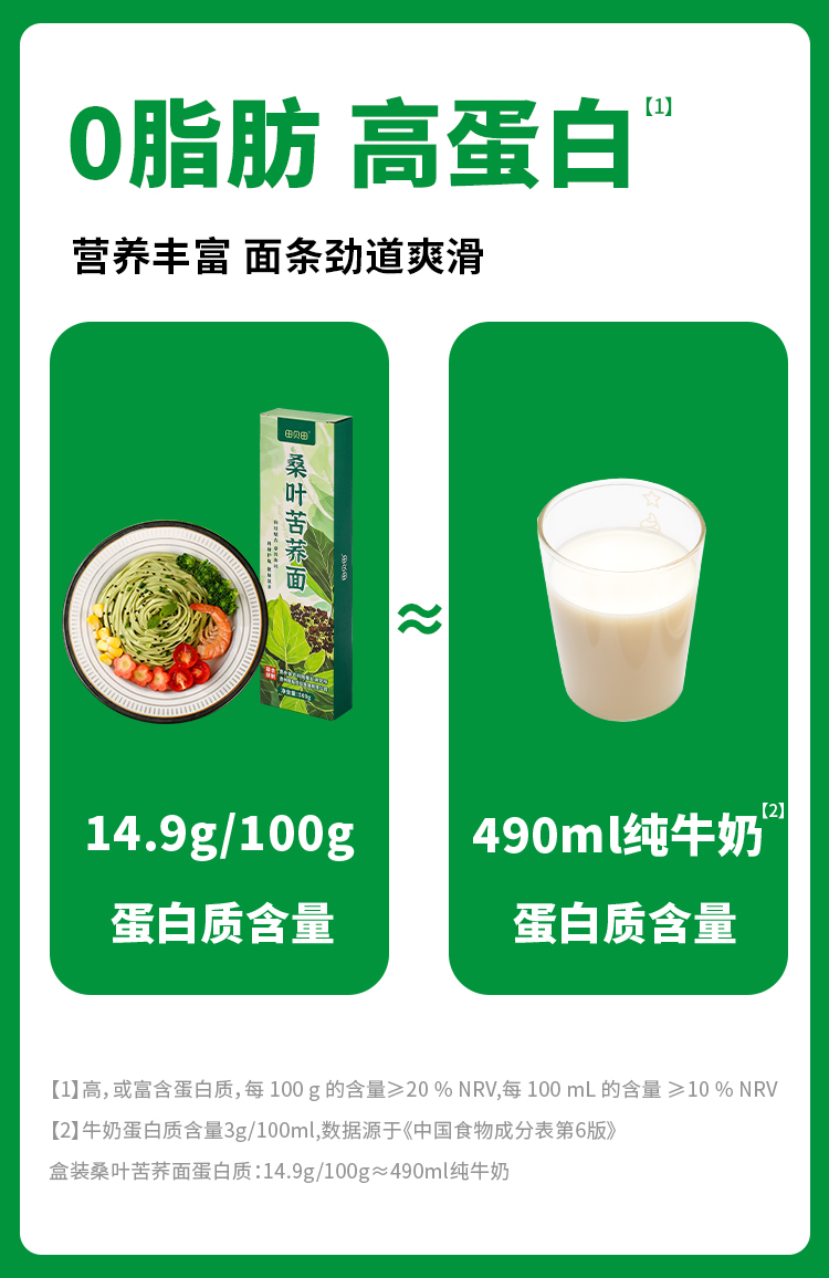 田贝田 桑叶苦荞面 高蛋白质 农科院研制 20%桑叶含量 0脂肪