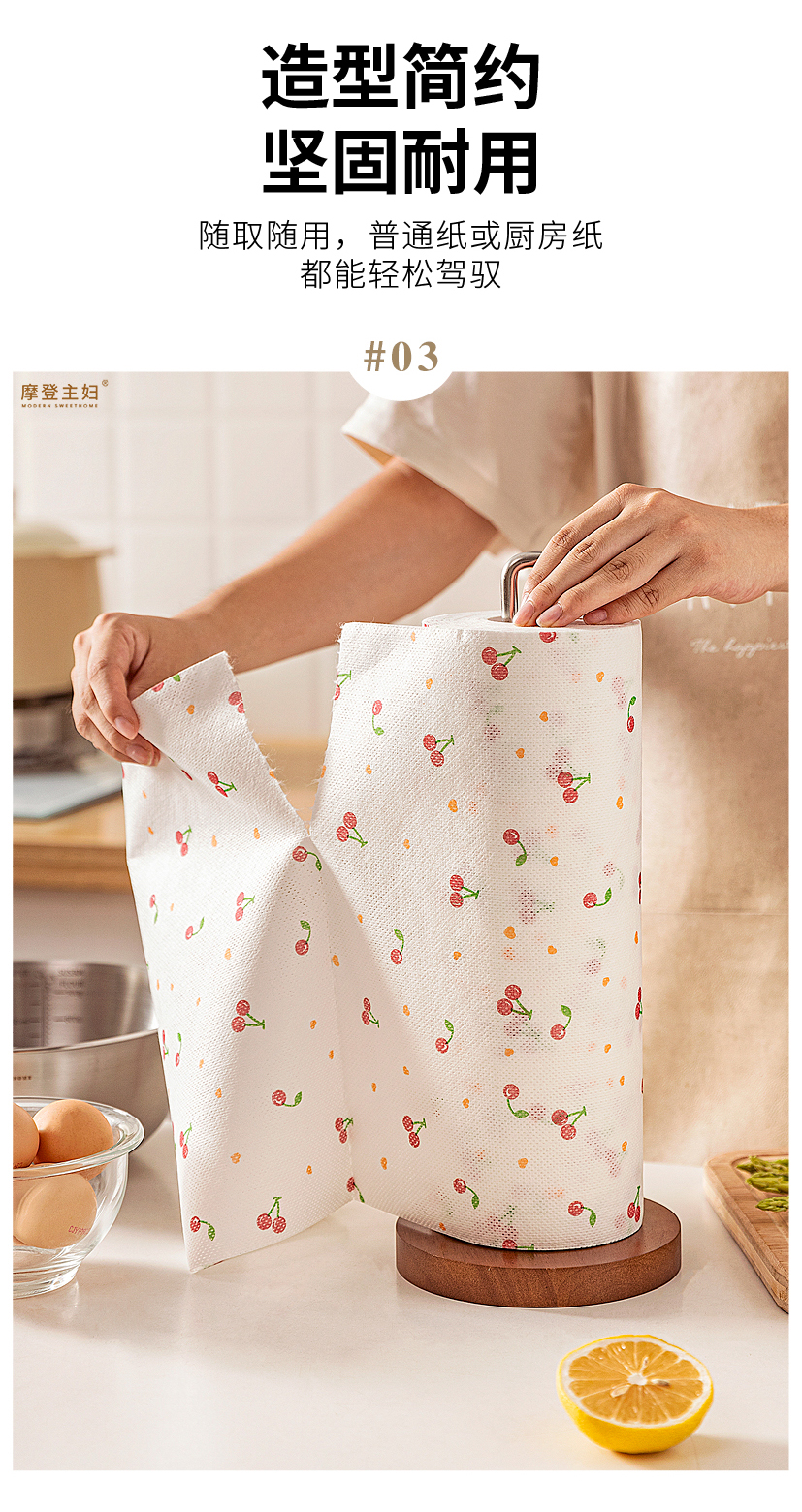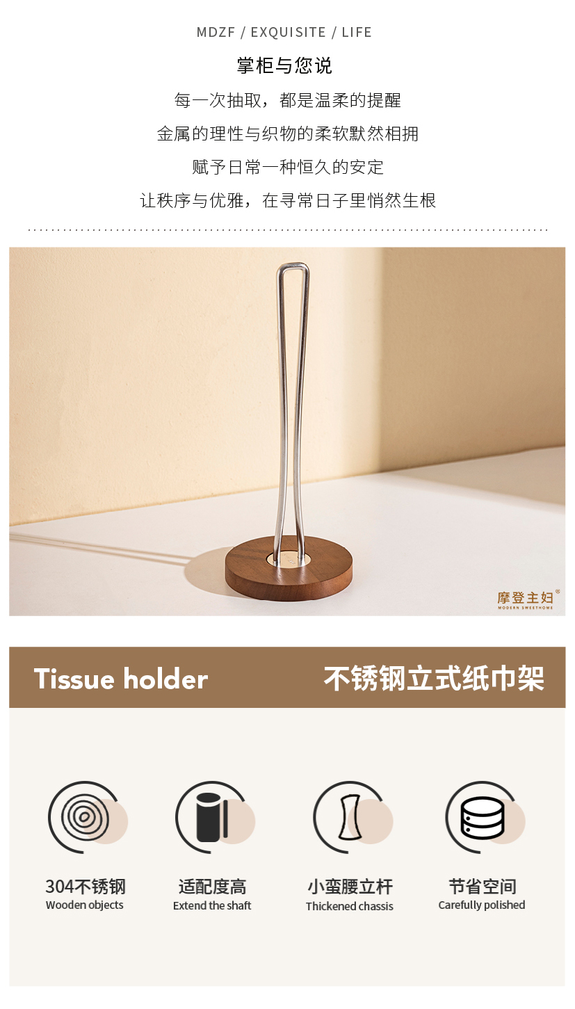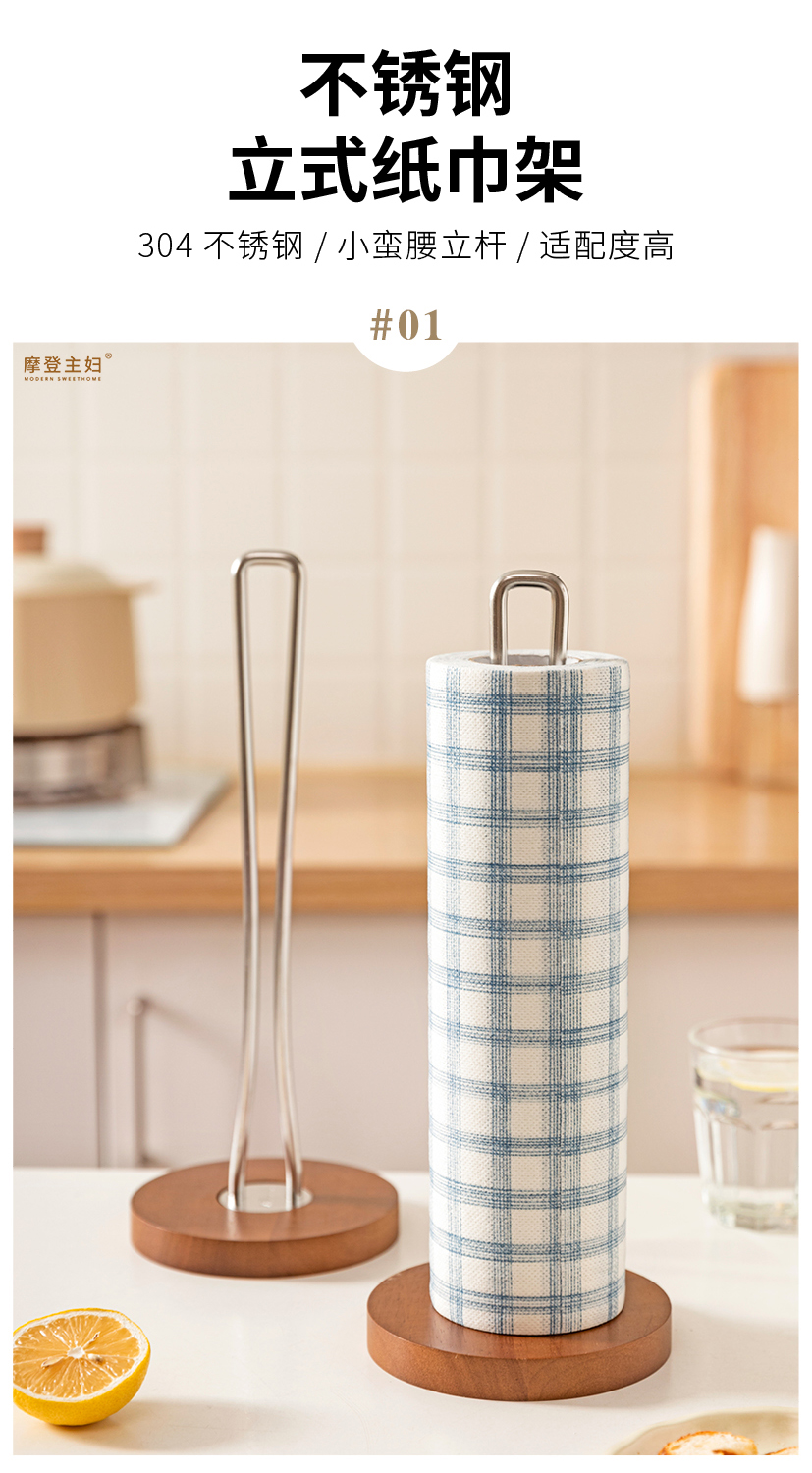 摩登主妇不锈钢厨房纸巾架子卷纸架立式懒人抹布免打孔收纳置物架
