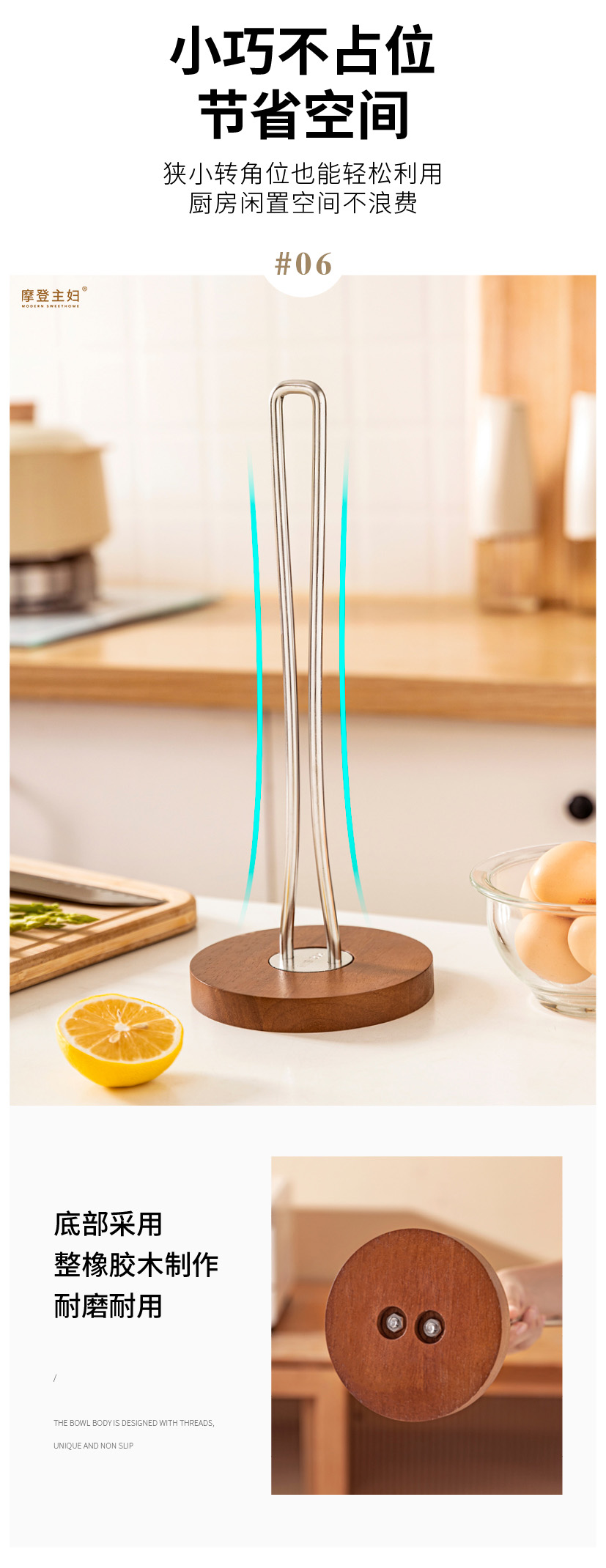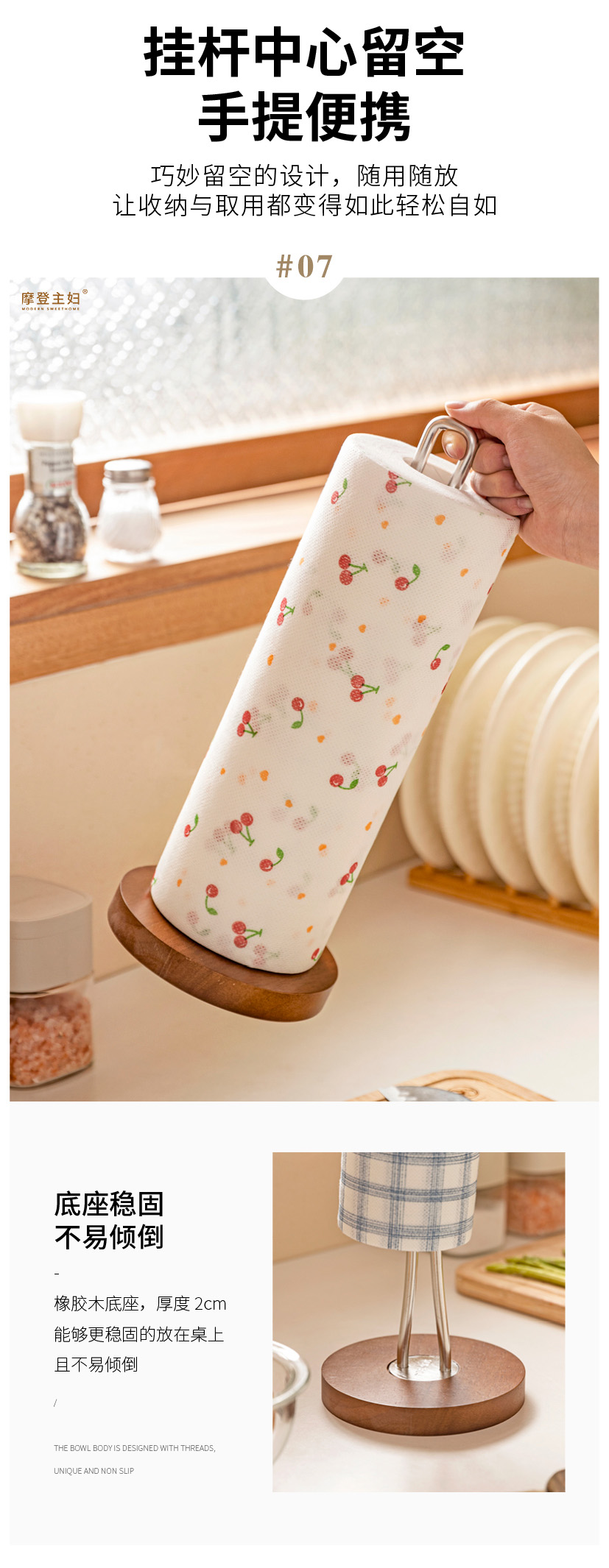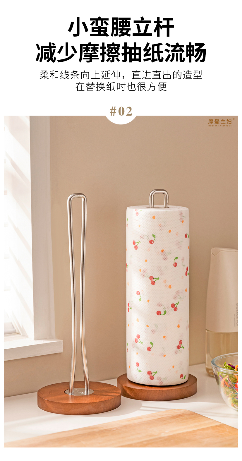 摩登主妇不锈钢厨房纸巾架子卷纸架立式懒人抹布免打孔收纳置物架