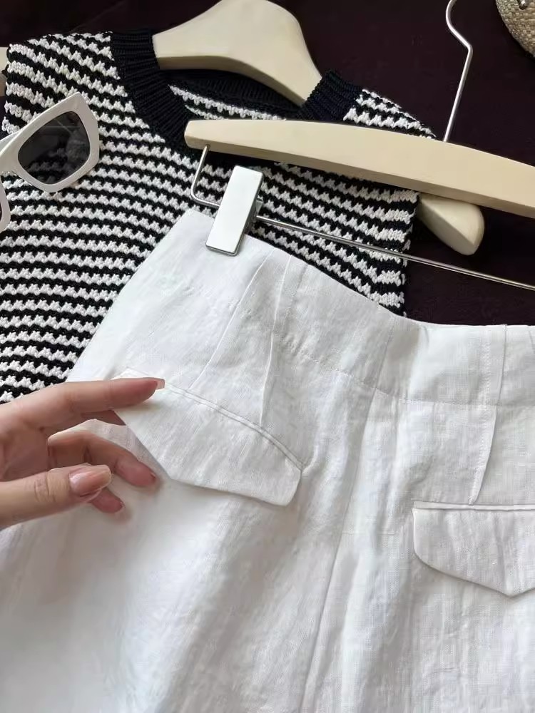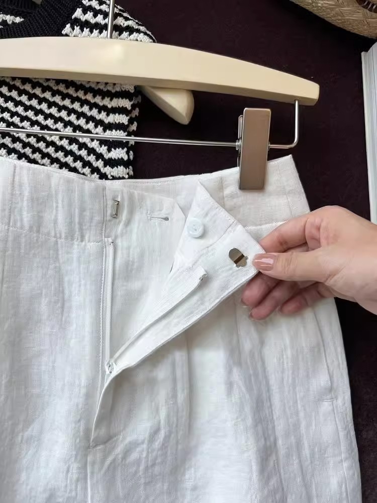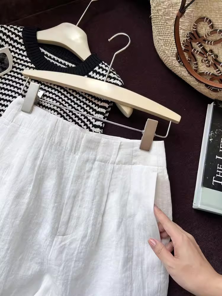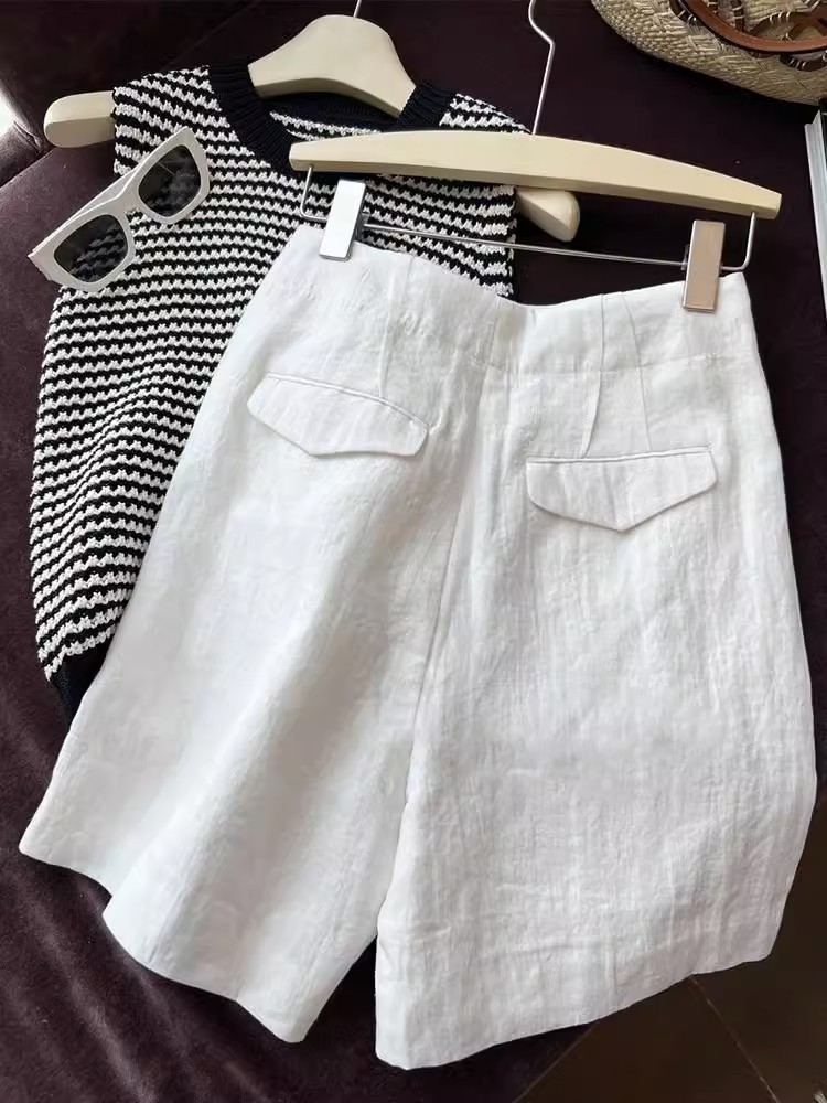 丁摩 亚麻短裤女夏季阔腿裤薄款a字高腰宽松白色裤子女夏西装五分裤5ZF-2509