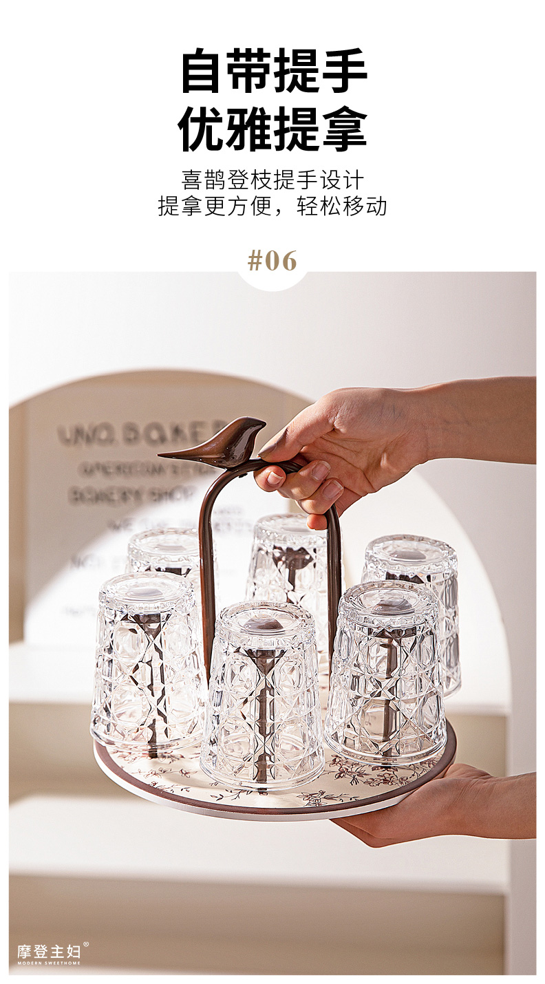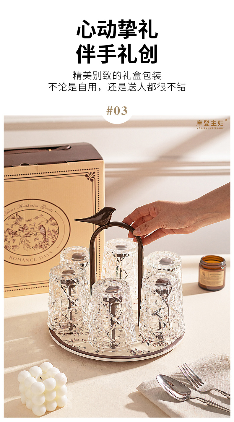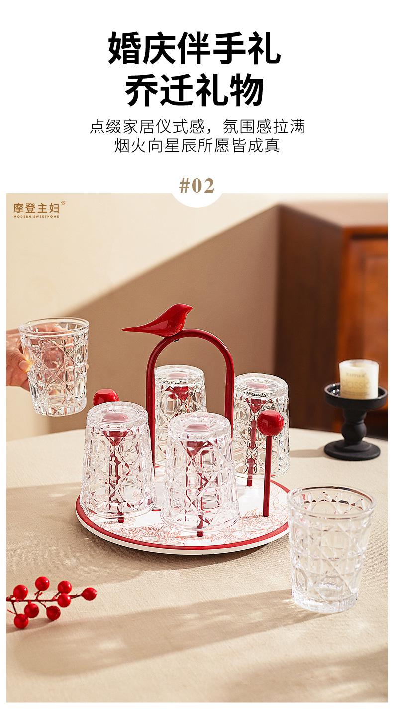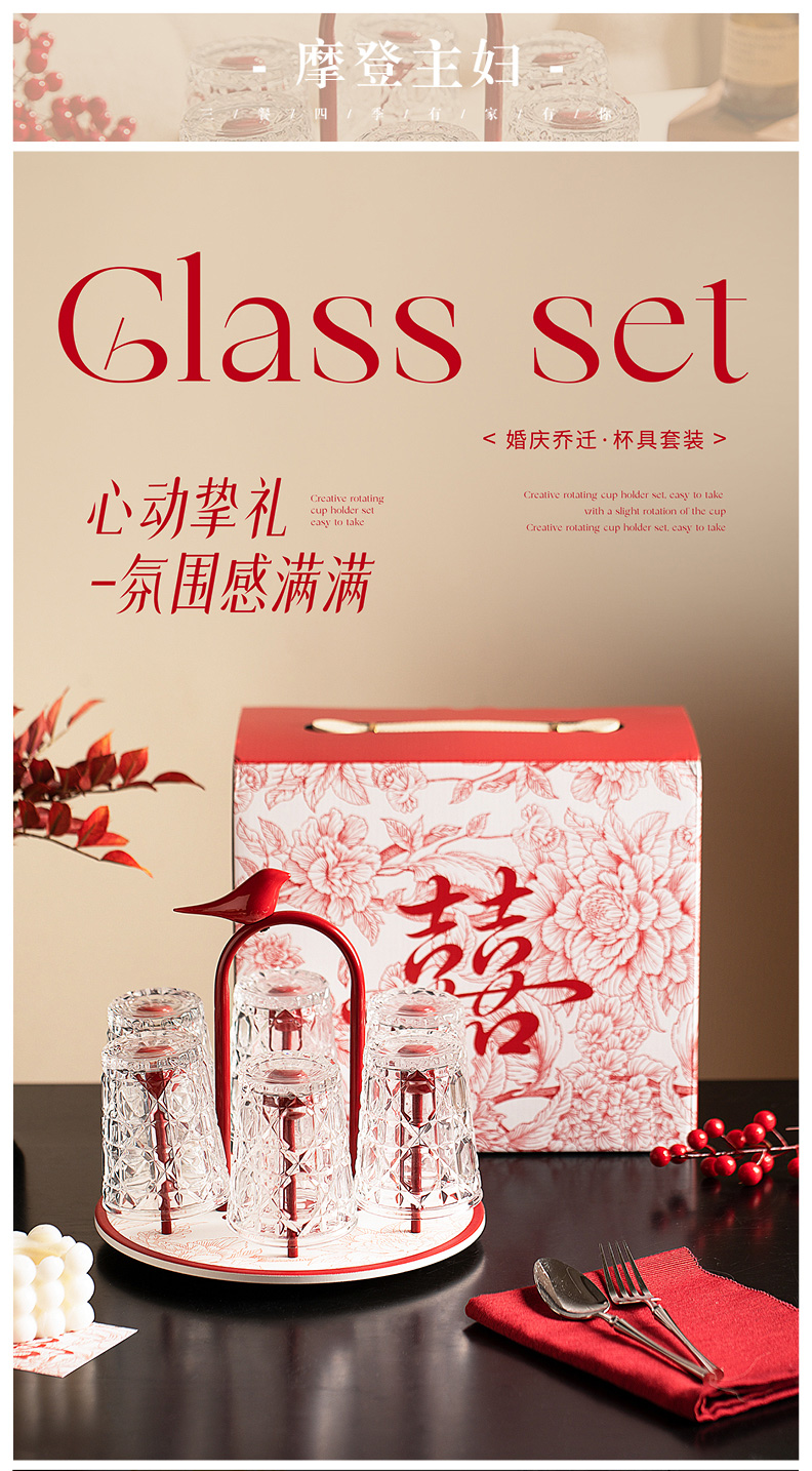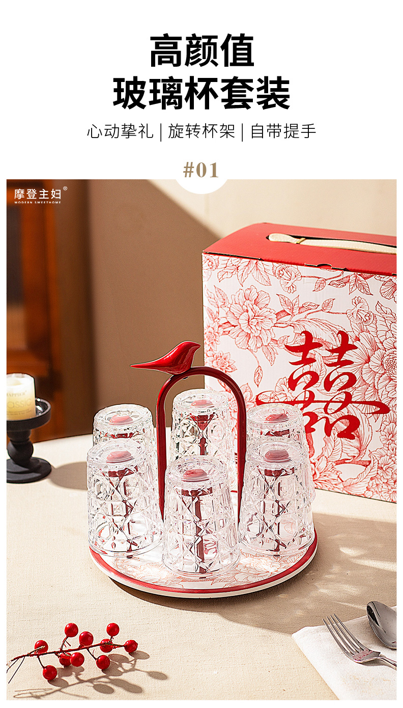 摩登主妇玻璃杯结婚新婚礼物家用喝水杯带旋转杯架杯子套装饮料杯
