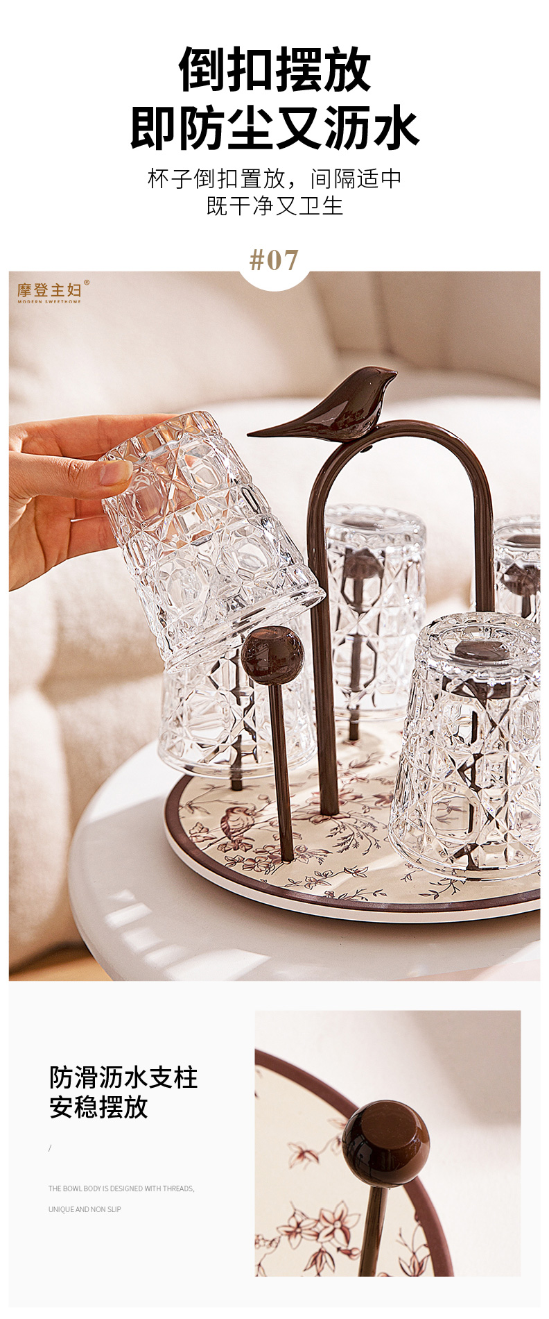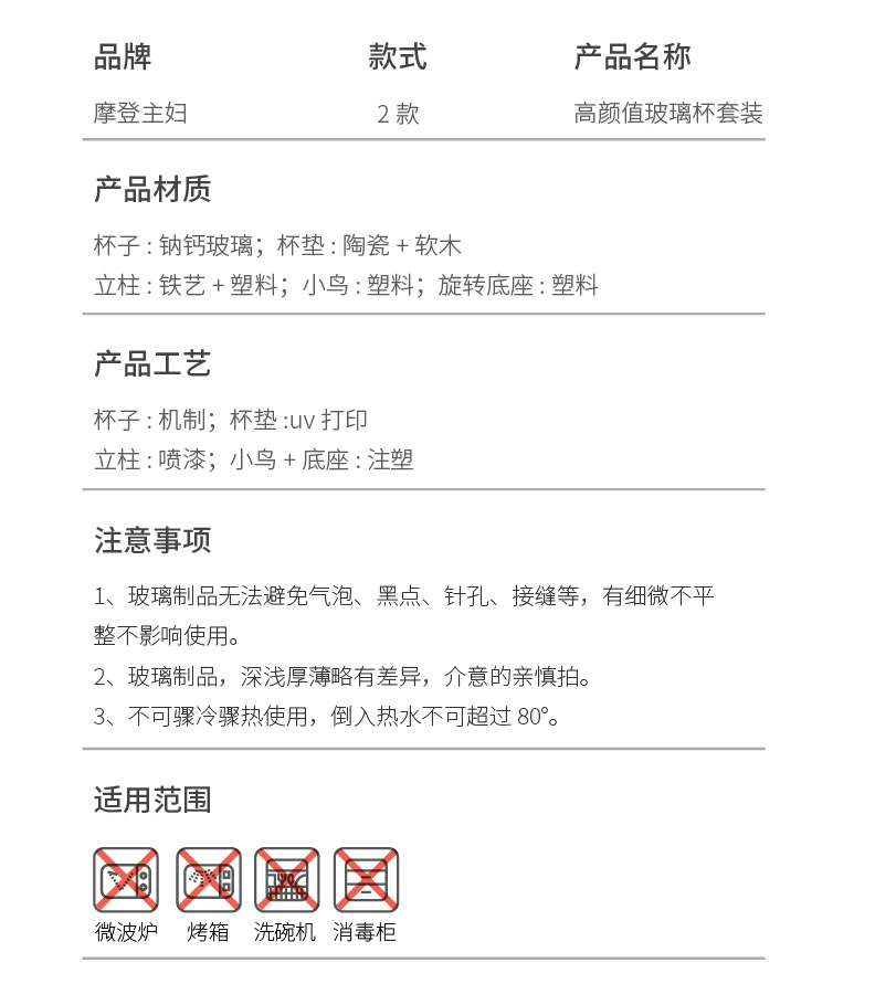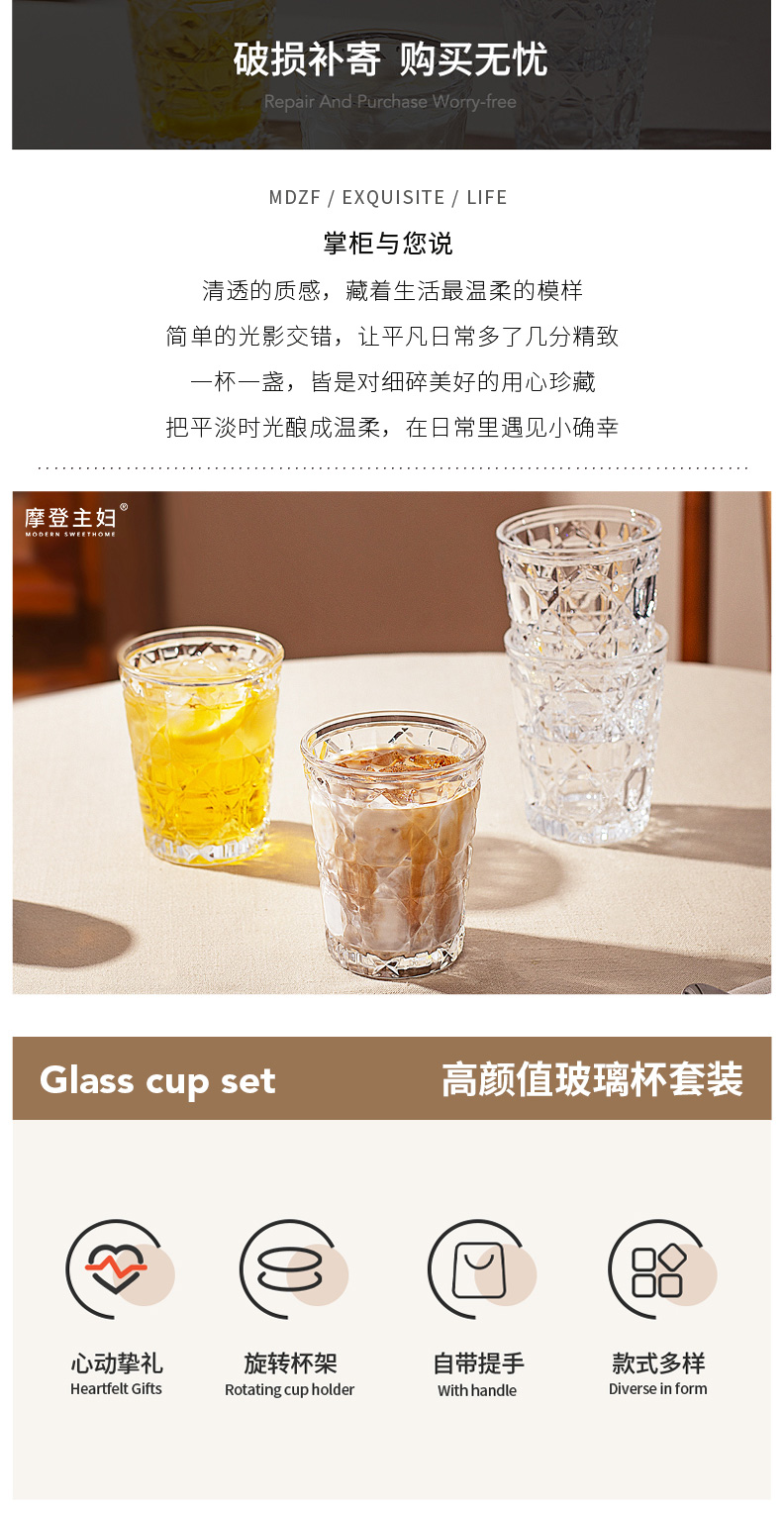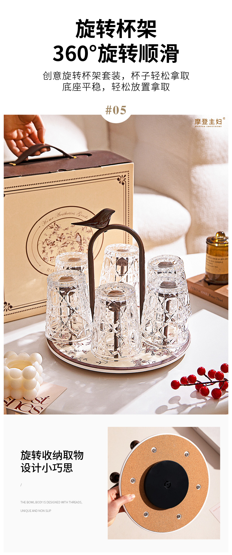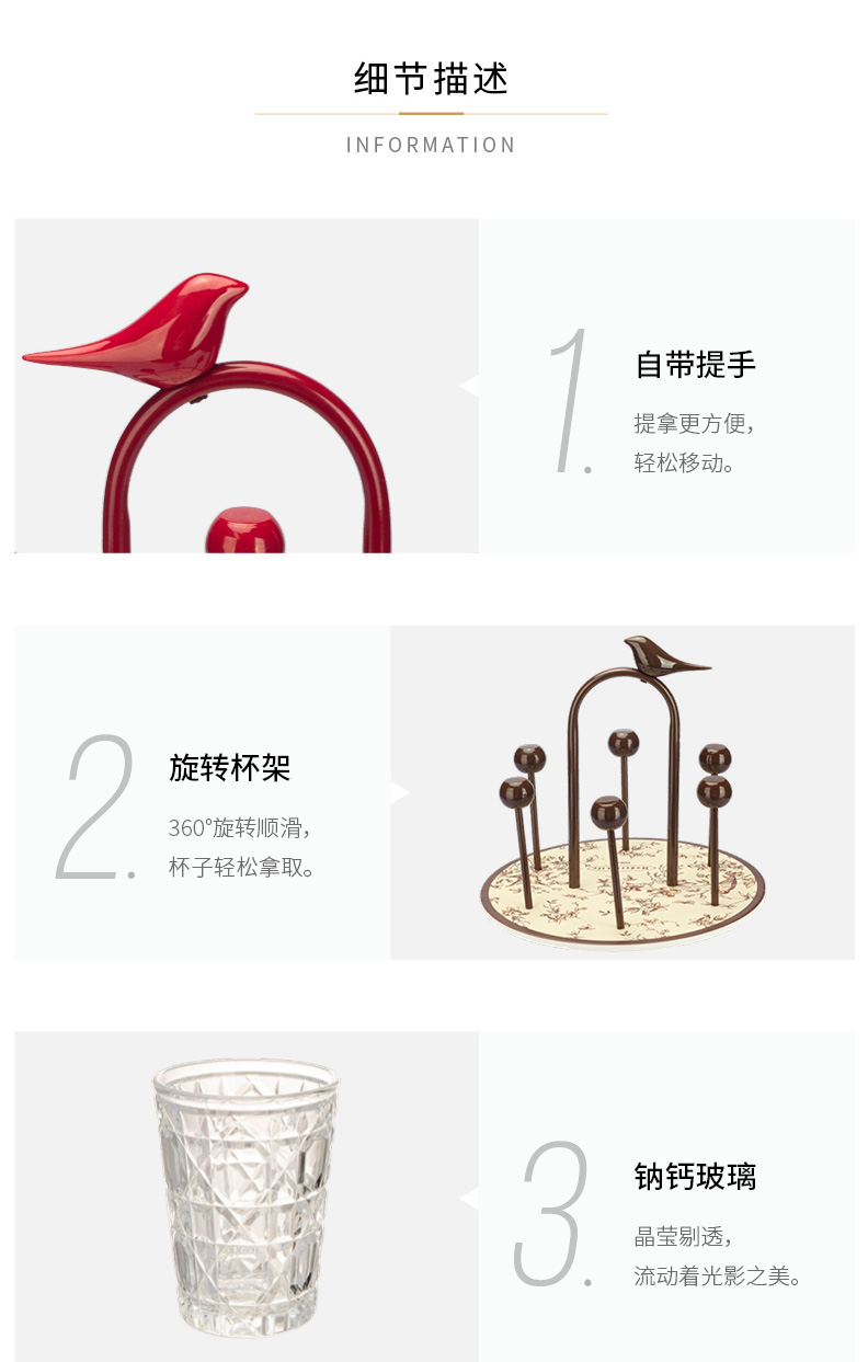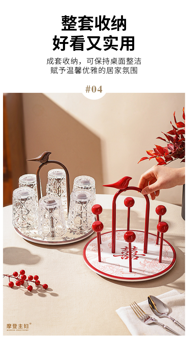 摩登主妇玻璃杯结婚新婚礼物家用喝水杯带旋转杯架杯子套装饮料杯