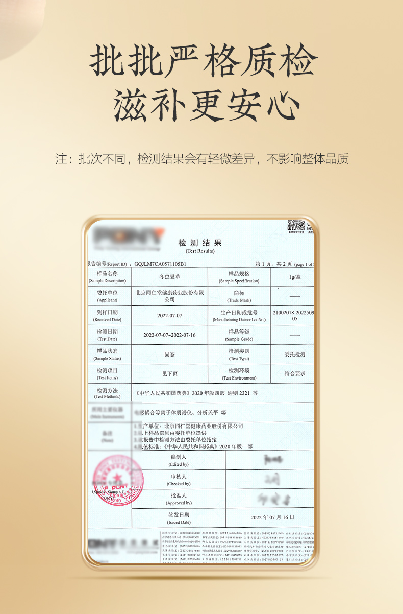【正宗同仁堂品牌】北京同仁堂 冬虫夏草-50/10克 虫体干净 高品质干虫草 滋补品SY