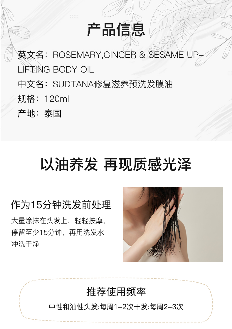 sudtana 佛手柑椰子修复滋养预洗发油120ml