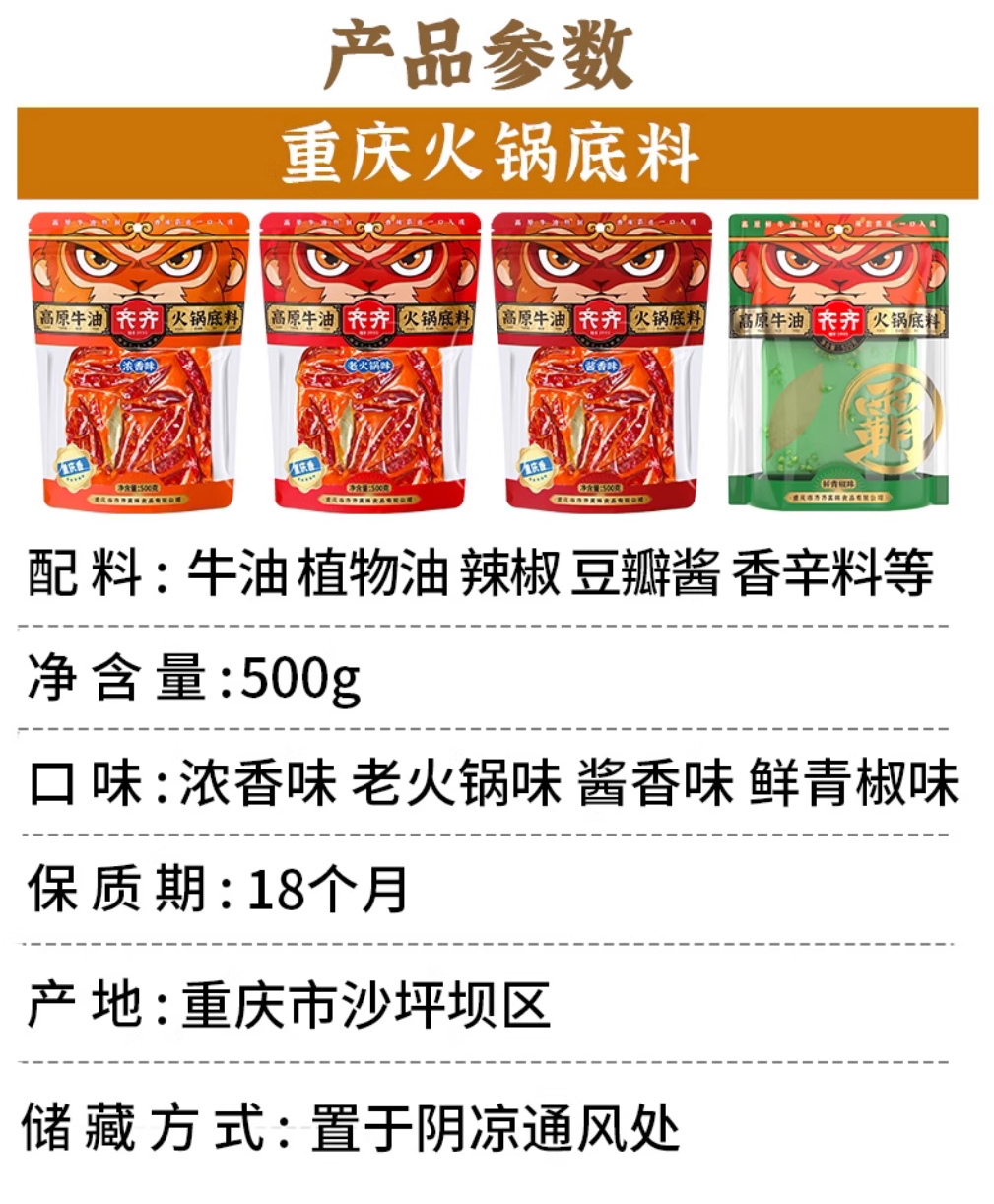 齐齐重庆牛油浓香火锅底料500g