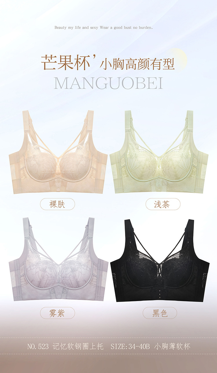 ZYQ-523 小胸内衣薄款透气软钢圈上托舒适聚拢性感蕾丝防下垂调整型文胸女(单件)