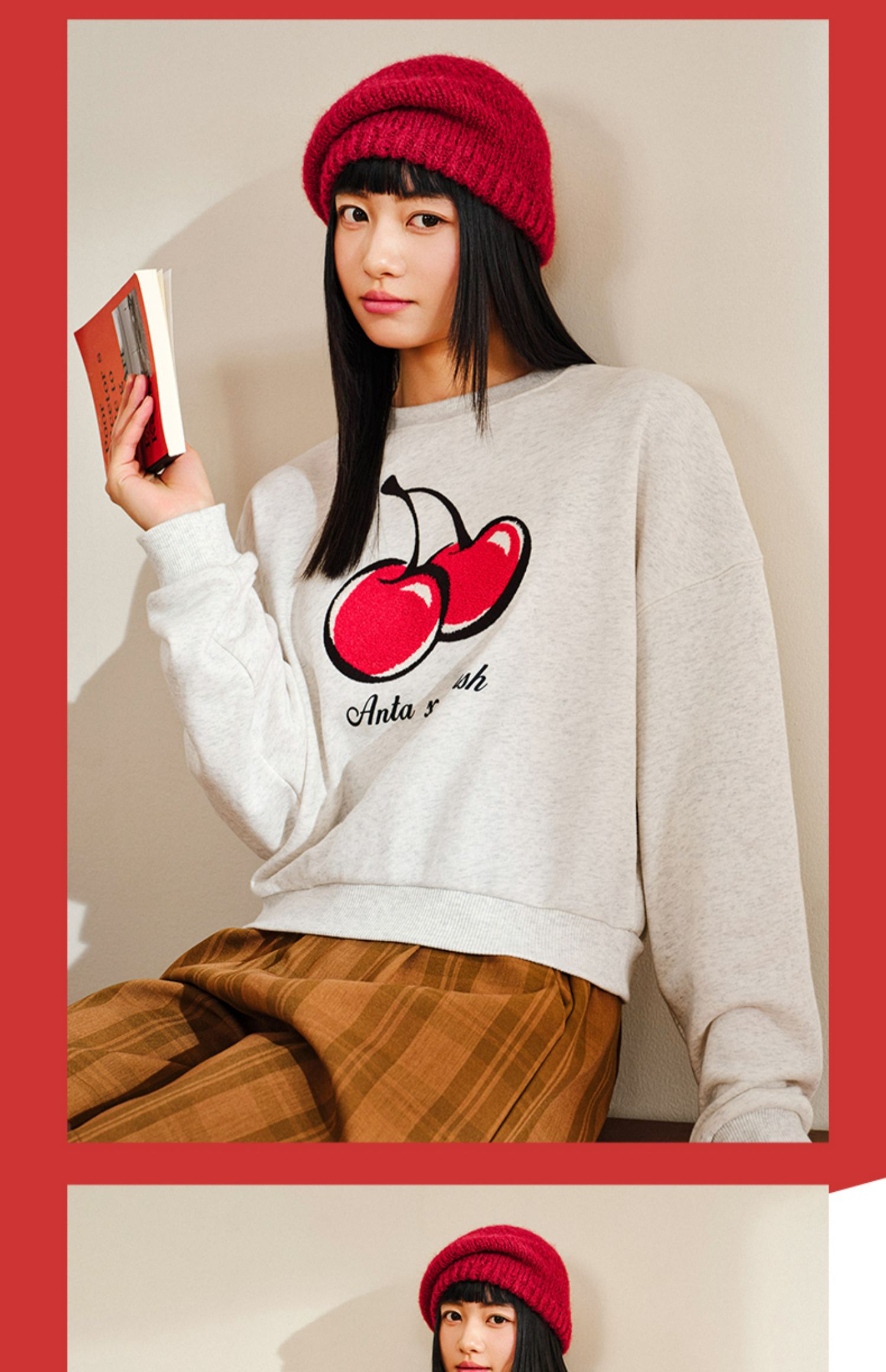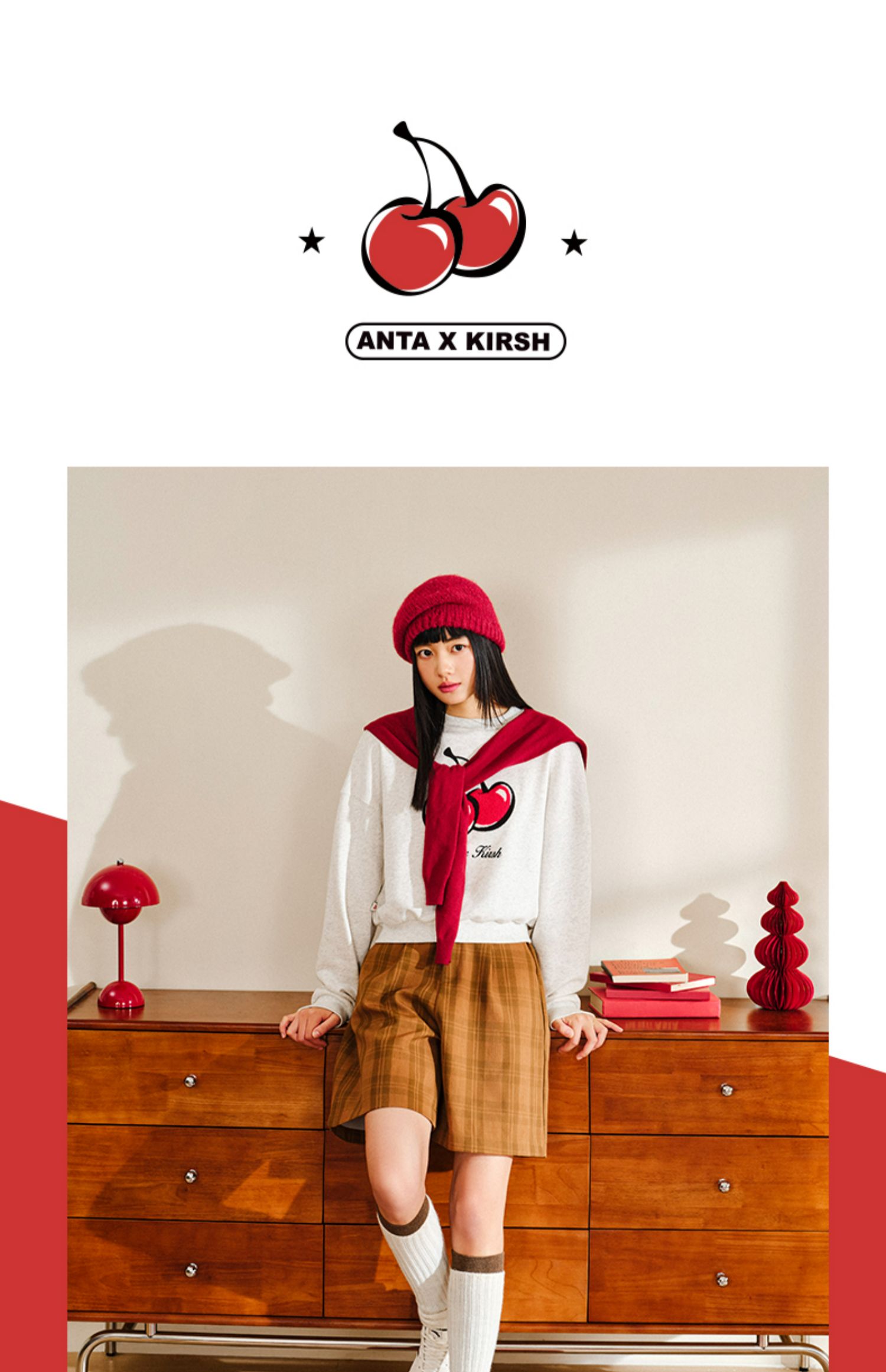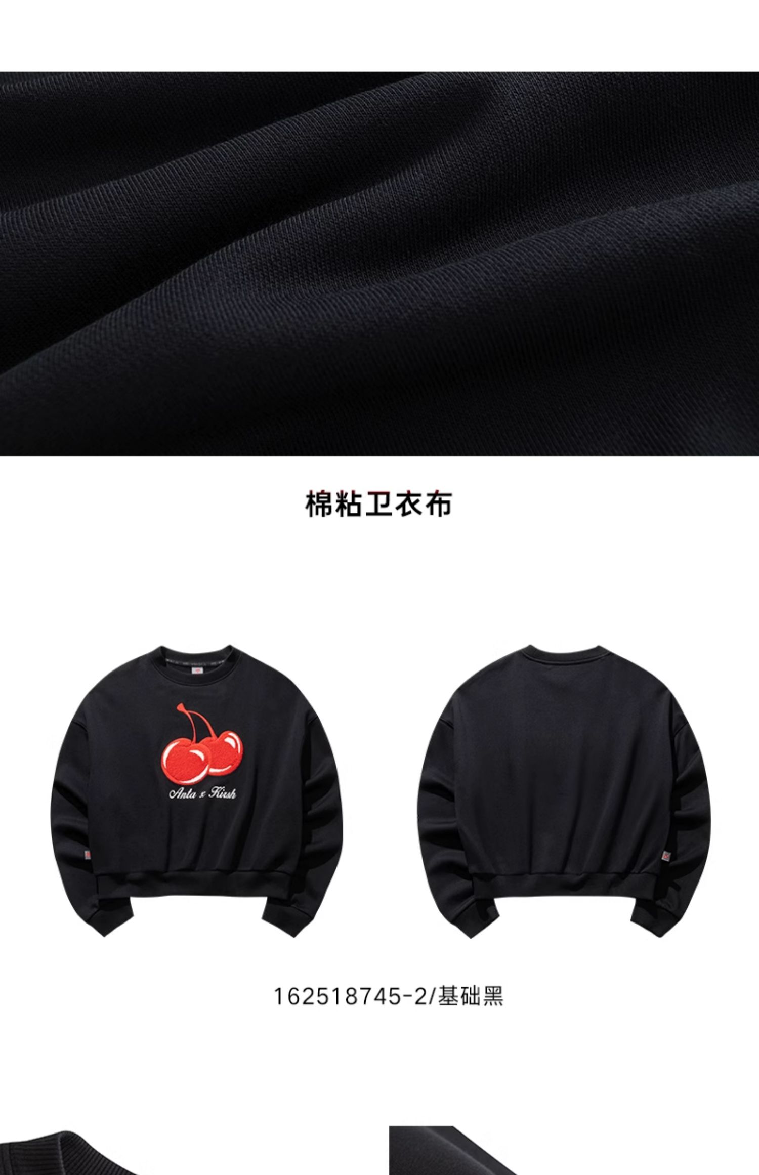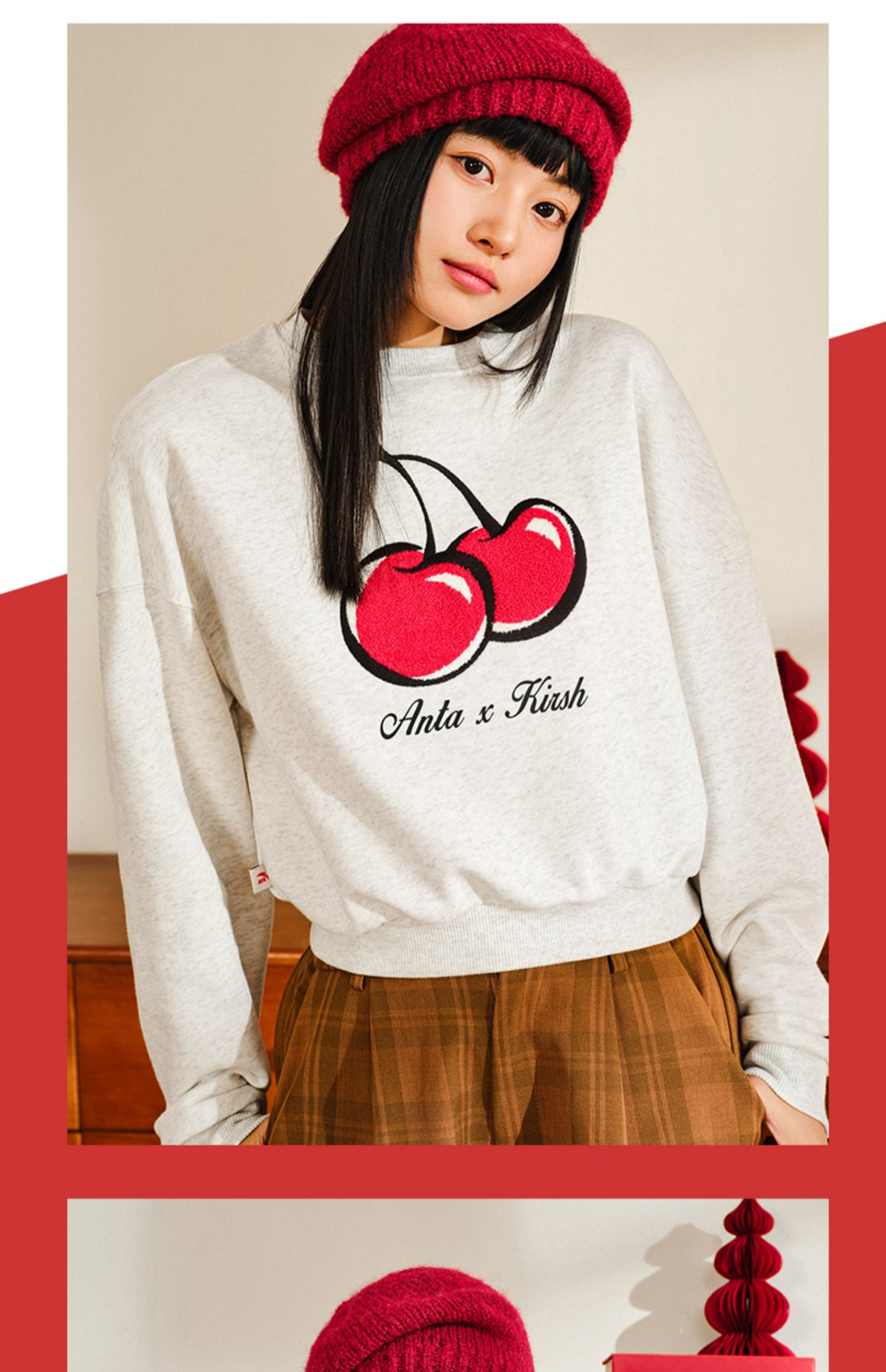 【299任选2件】安踏×kirsh联名丨好事发生大樱桃短款卫衣女士套头上衣162518745
