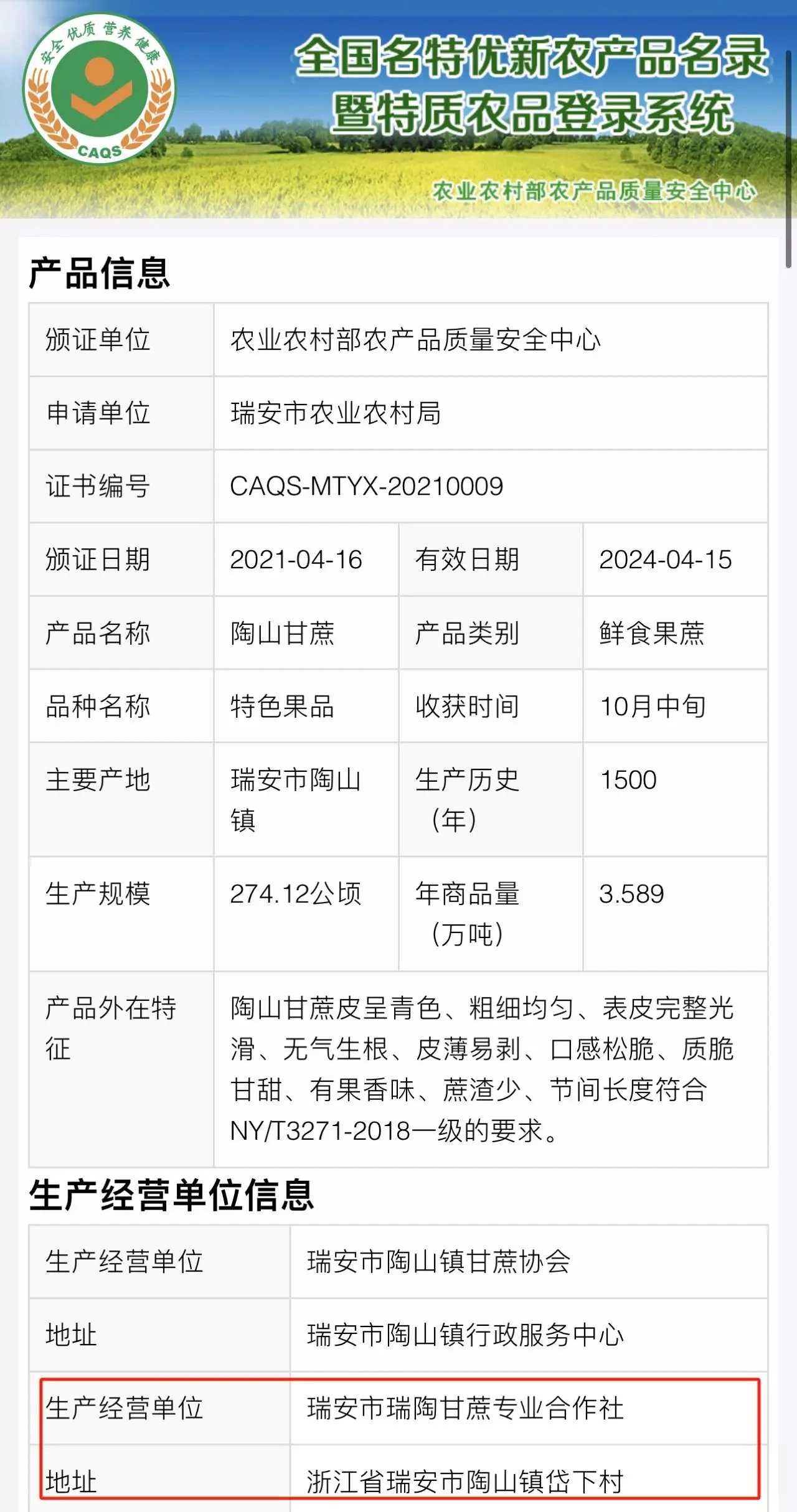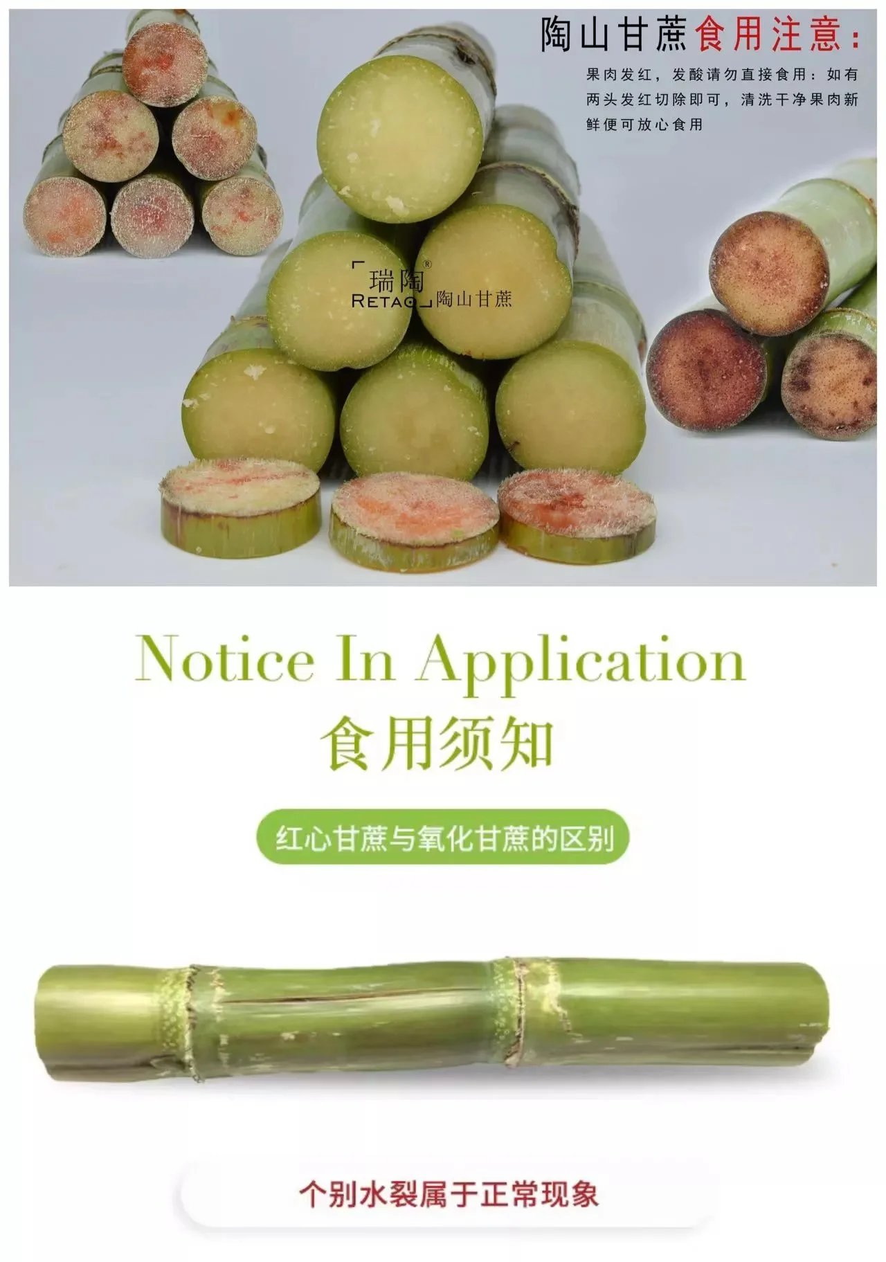 1、陶山甘蔗,又名陶山果蔗,已有近1500年种植历史。皮薄、质脆、汁多、节长、清甜,渣松而软,是浙江省优良果蔗品种之一。 瑞陶单位“陶山甘蔗”被录入"全国名特优新农产品,瑞安市十大名优农特产,温州伴手礼名录等。陶山甘蔗过年过节的送礼佳品! 2、广受消费者喜爱,被称之水果之后。冰糖甜的汁水犹如一颗“糖水炸弹”。 3、独立包装,干净卫生方便携带,高端上档次。