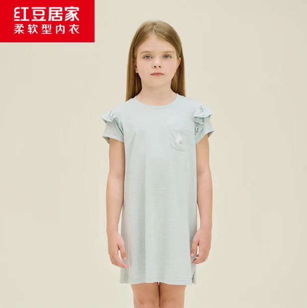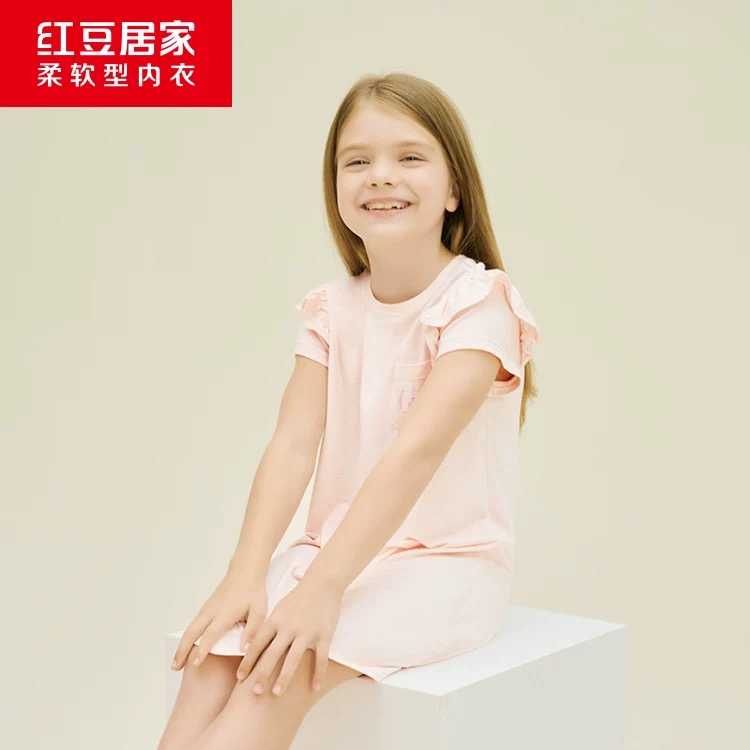 红豆女童莫代尔居家睡裙(桃粉色+青草绿)/2件(130码,适合25-30kg)补单专用