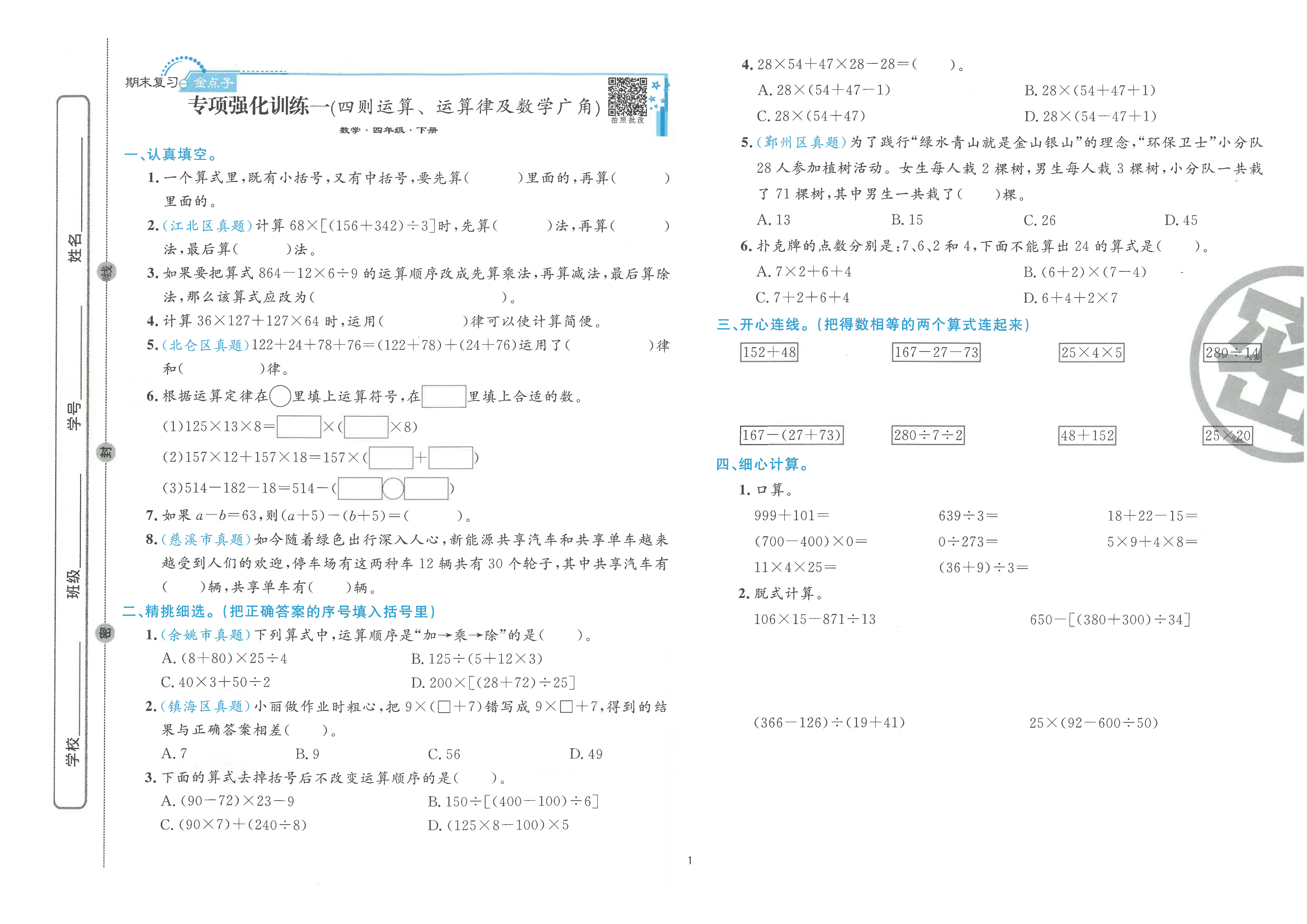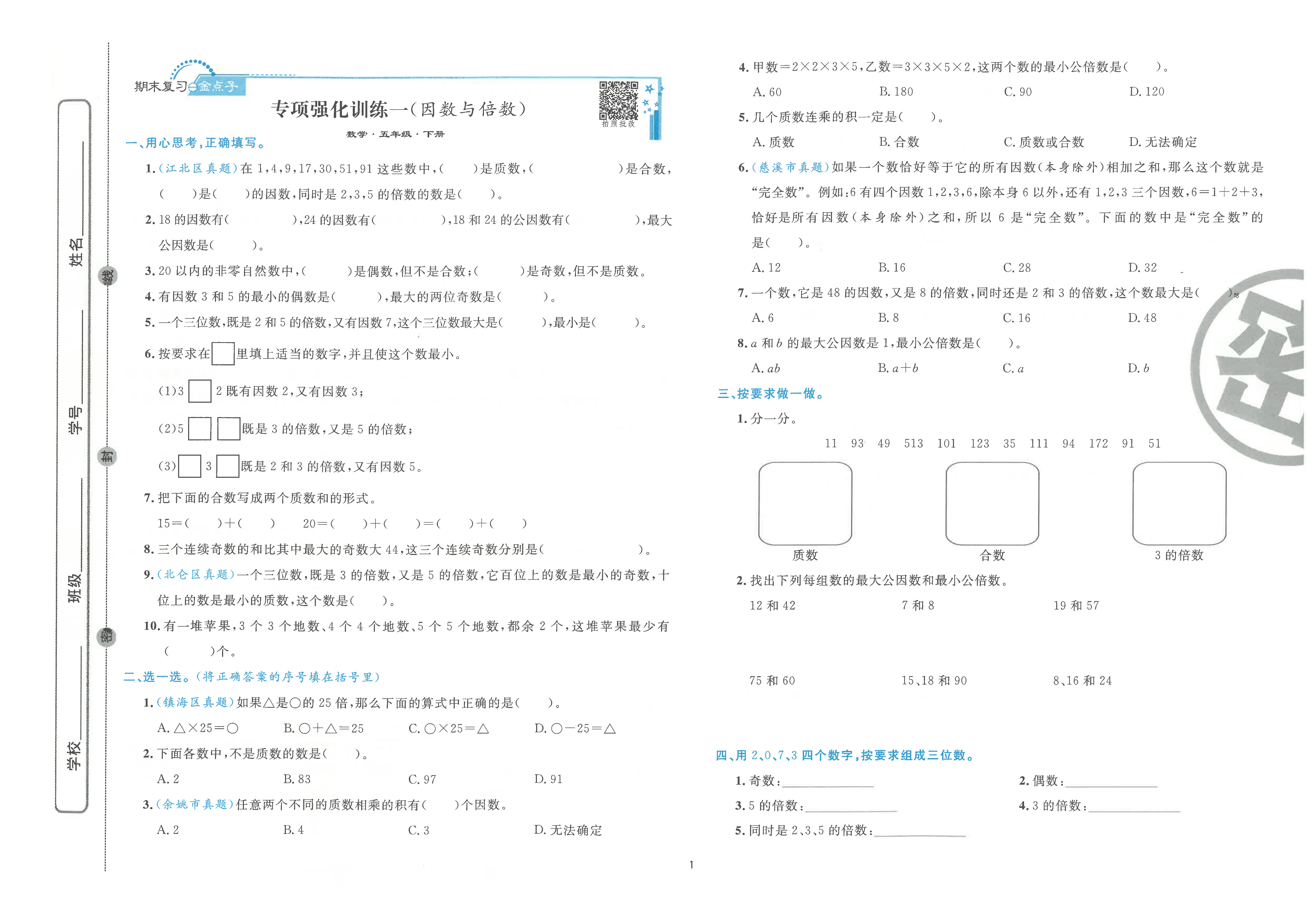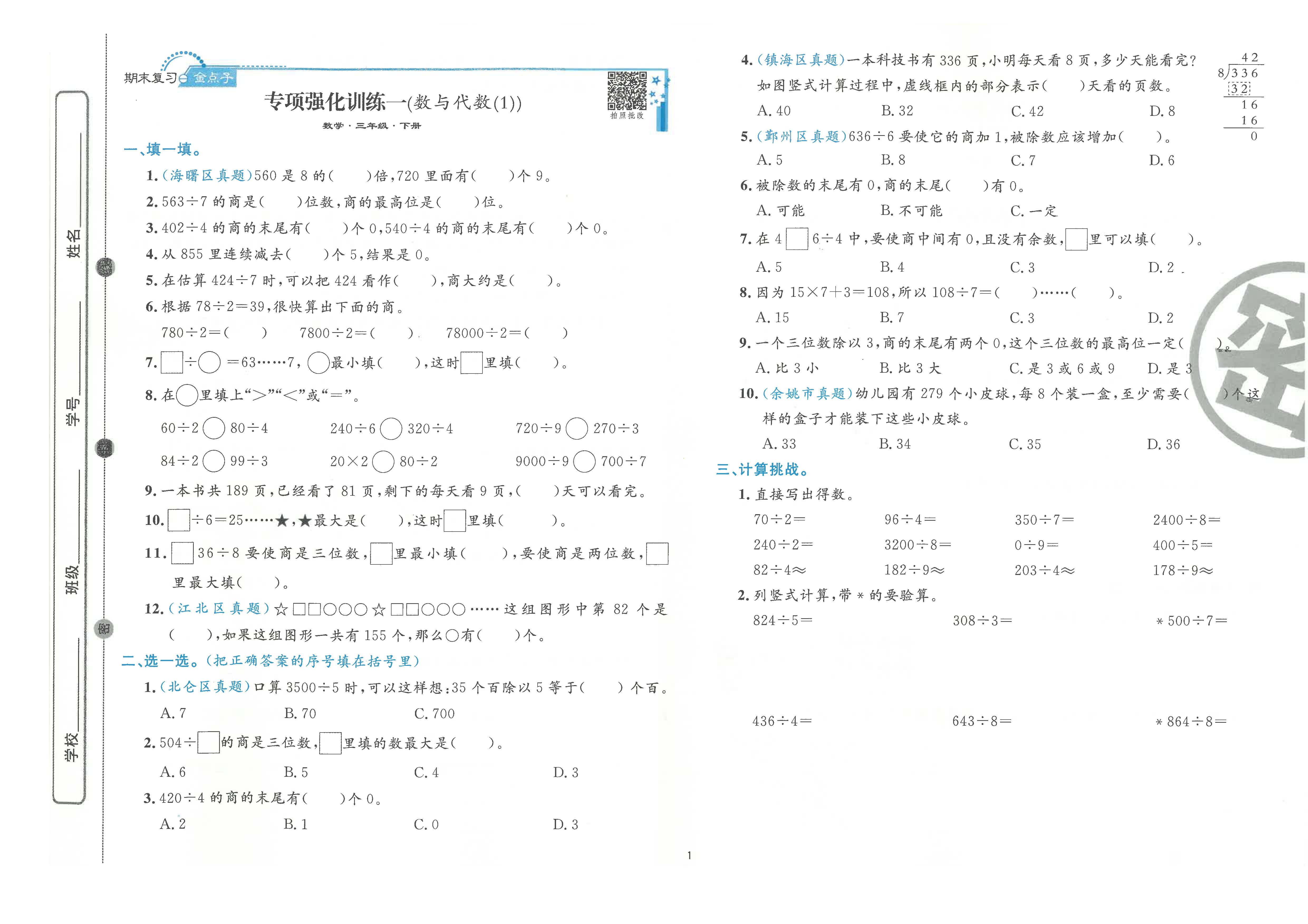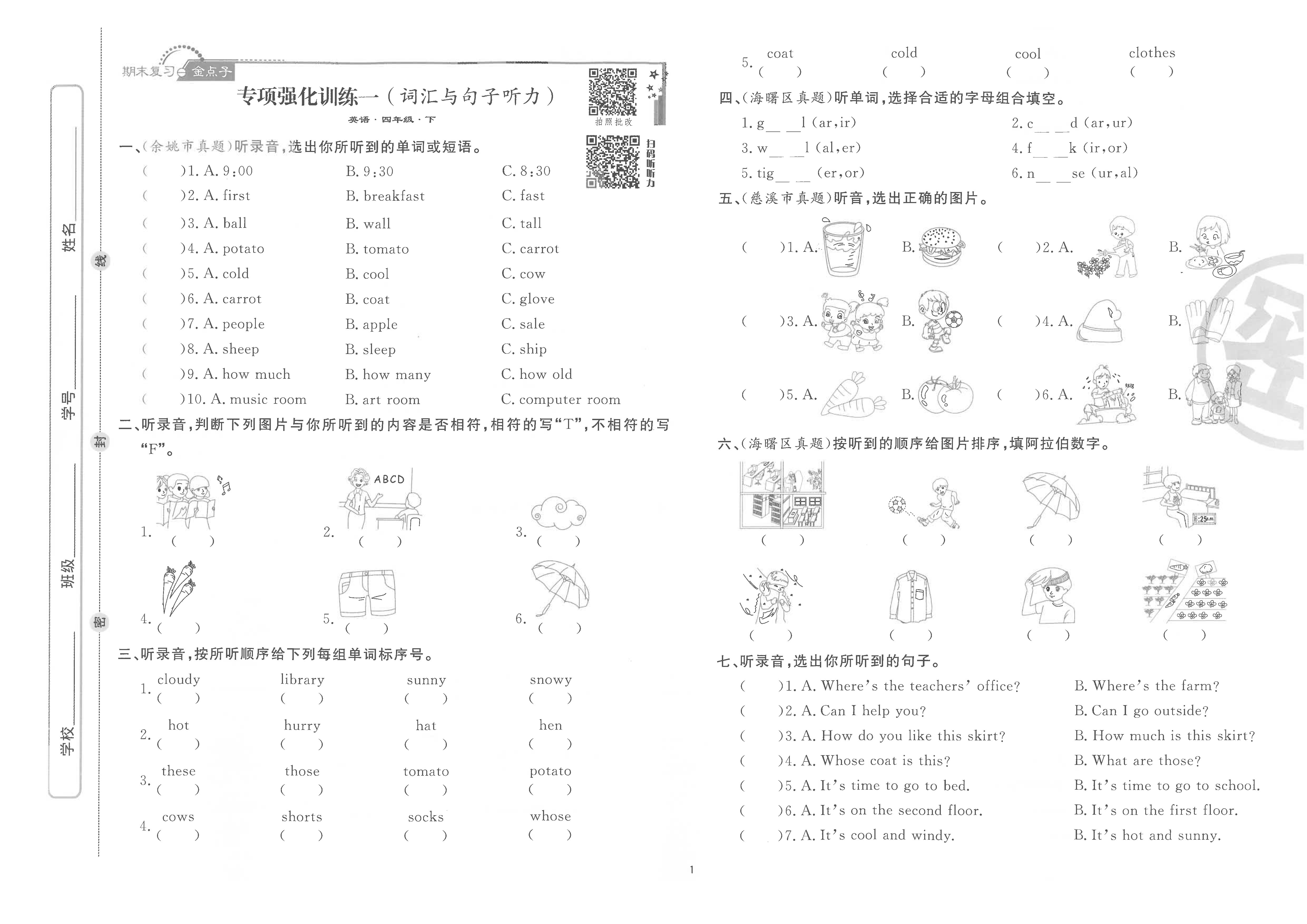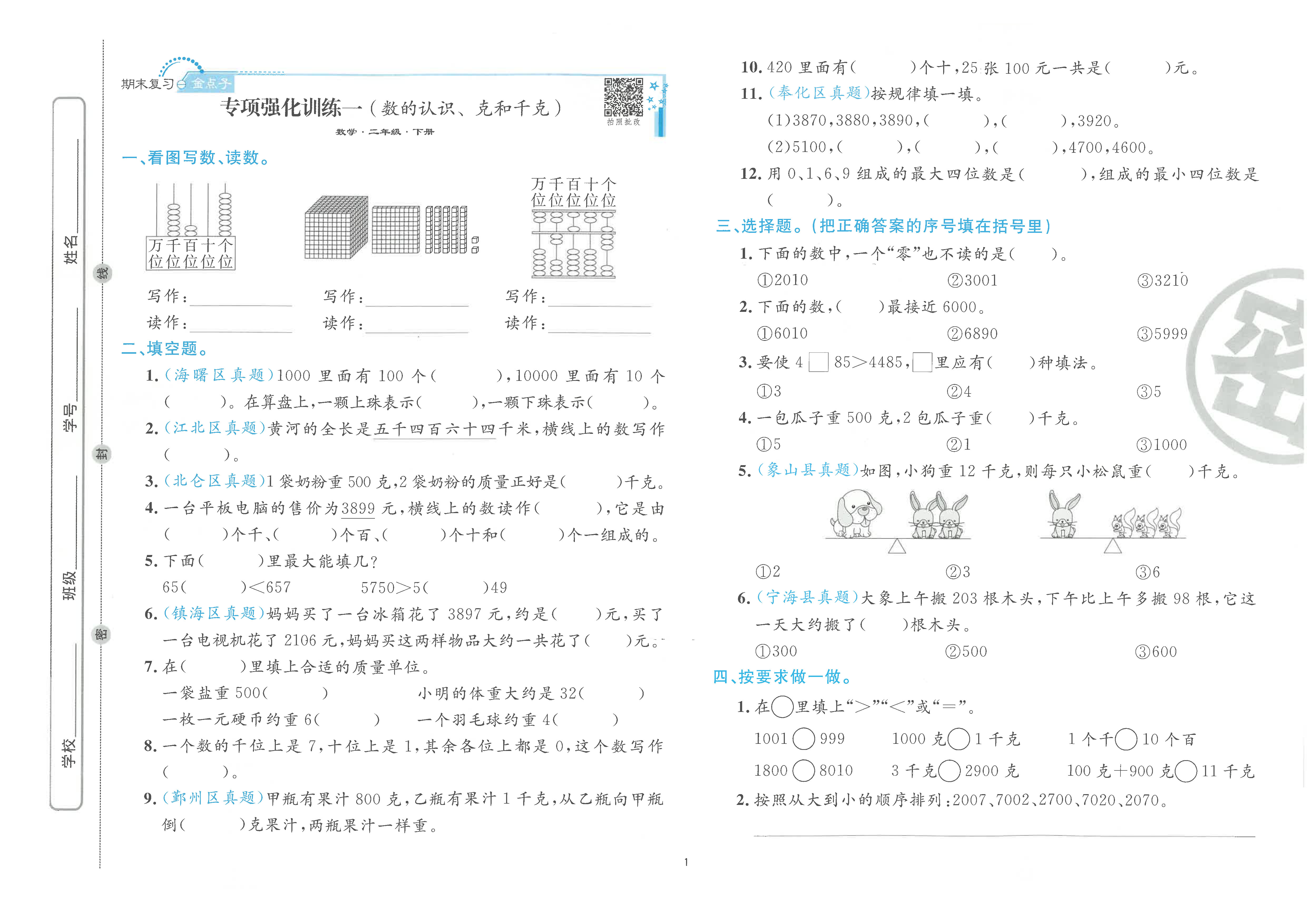 新版 期末真题汇编精选卷下册 语文 数学 英语 小学全套(电子答案)