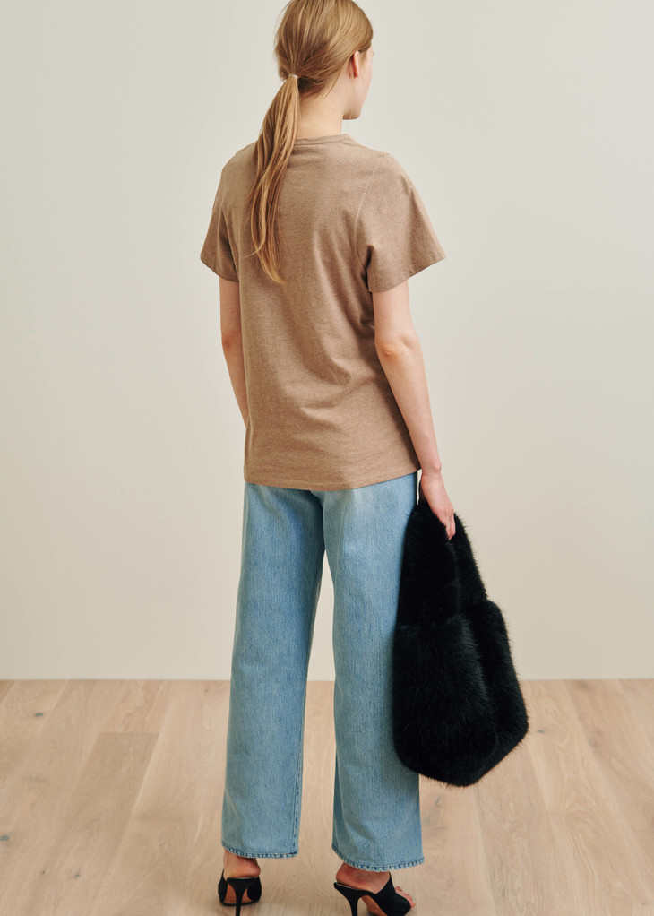 高圆领、肩线做窄的设计带有一些复古感,厚实的棉质面料柔软亲肤,非常好穿。T恤一侧有同色系刺绣logo装饰。