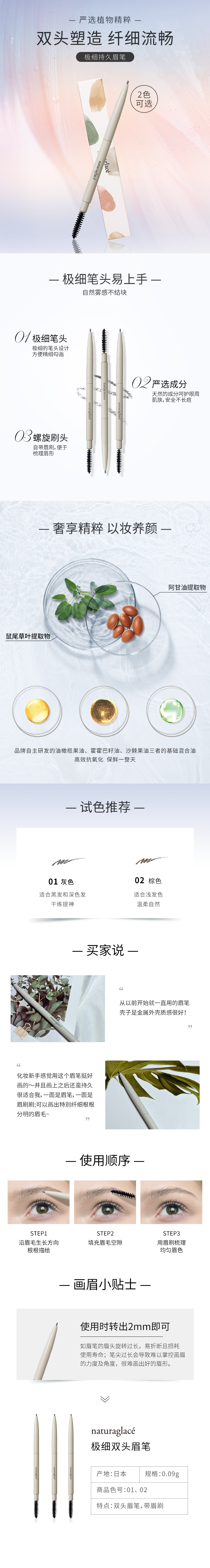 naturaglace极细自然持久自动眉笔不脱色根根分明孕妇专用彩妆