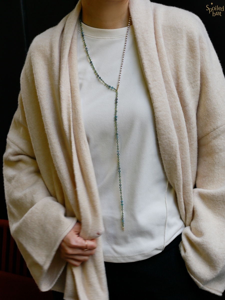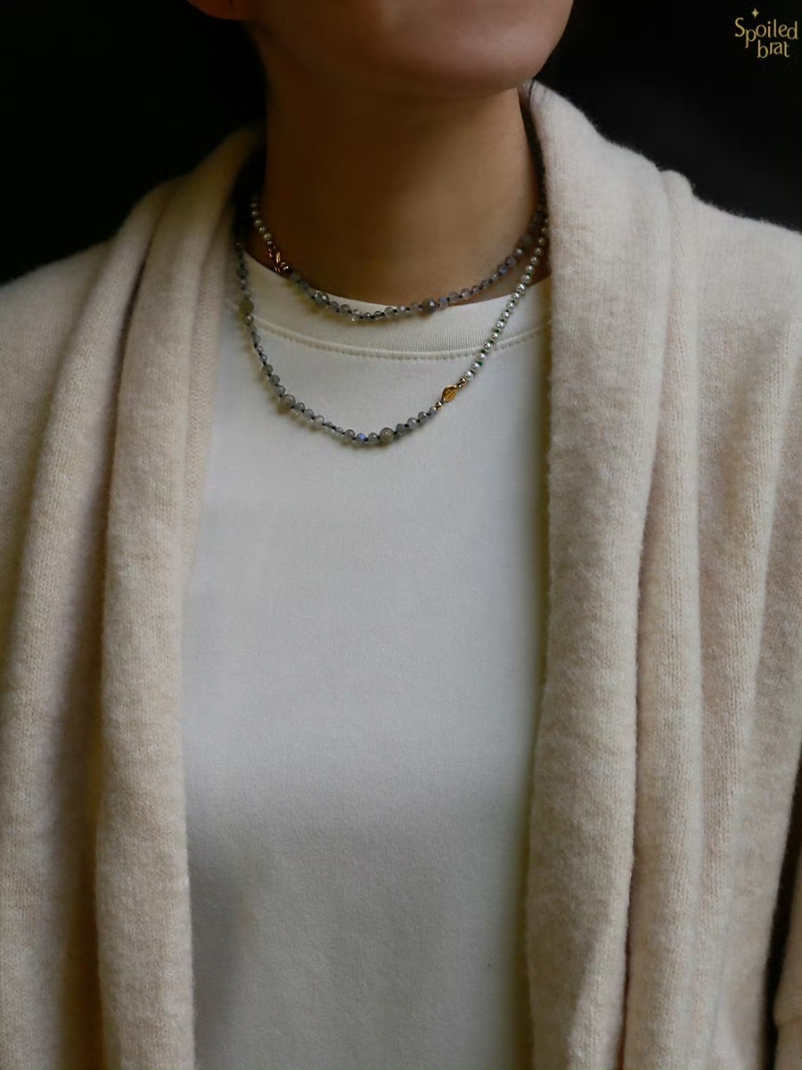SpoiledBrat Jewelry编织系列 | 珍珠斜长石长链 Y型链 双层链