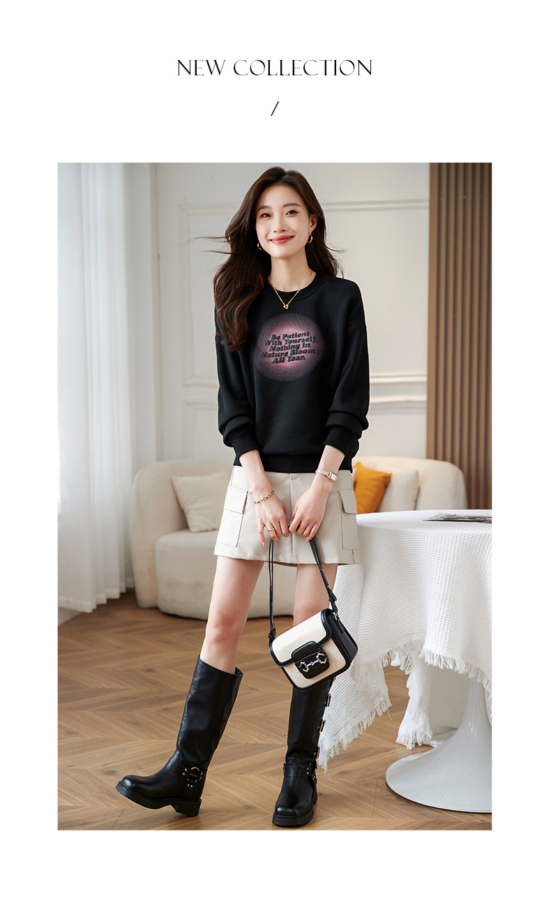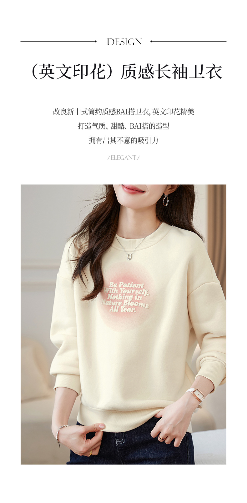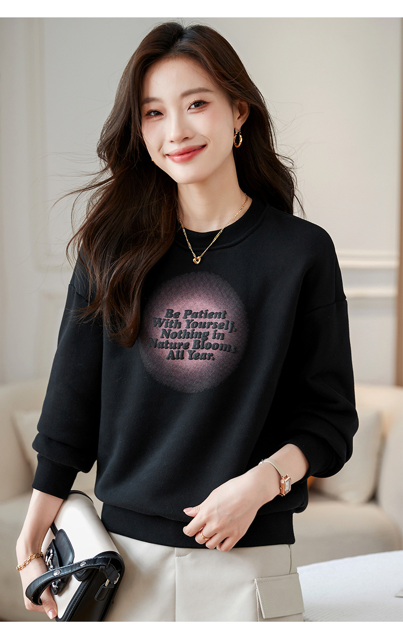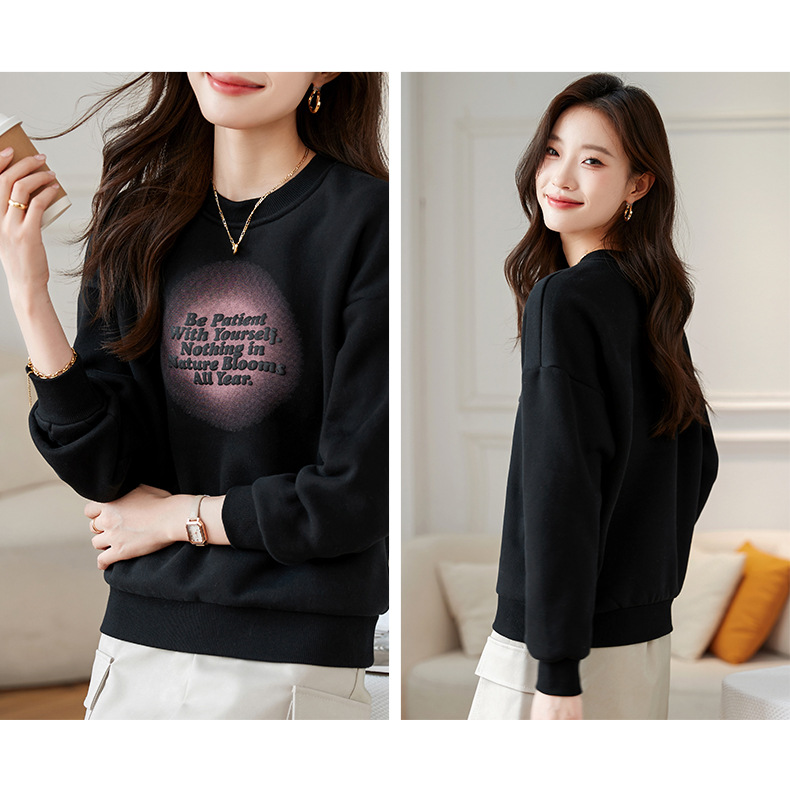 百媚生 圆领卫衣女春秋薄款外套S82340052