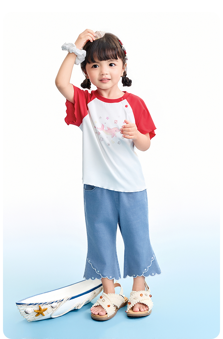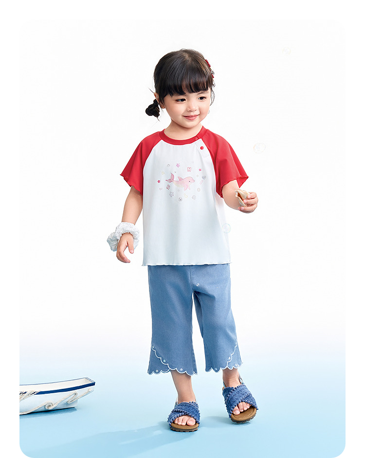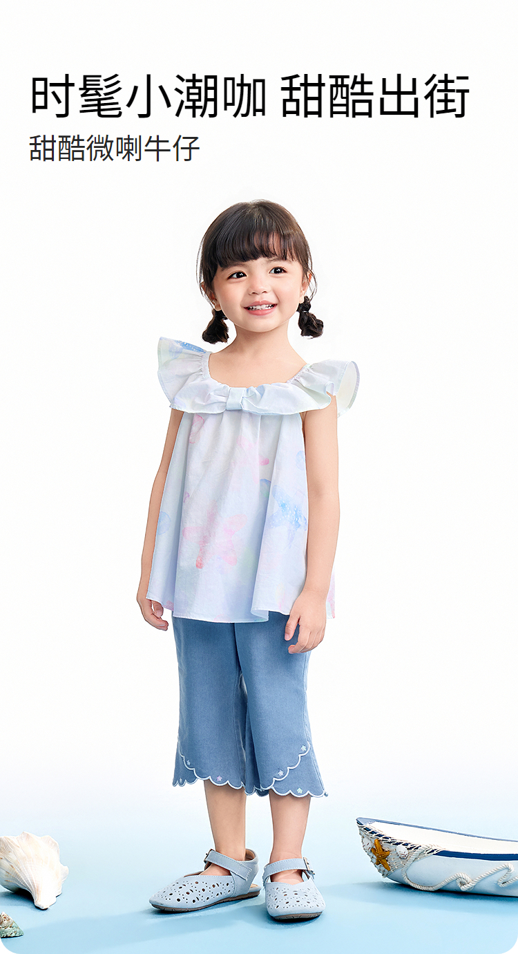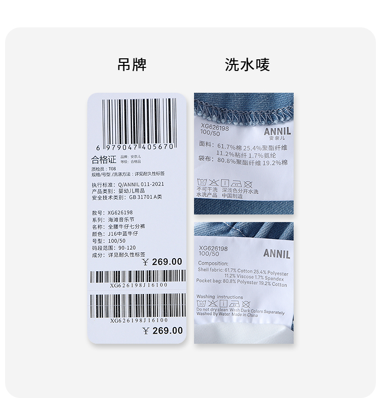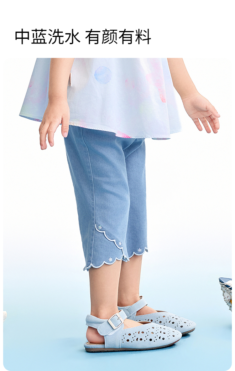 【实体店同款】女童全腰牛仔七分裤夏季新款安奈儿童装XG626198