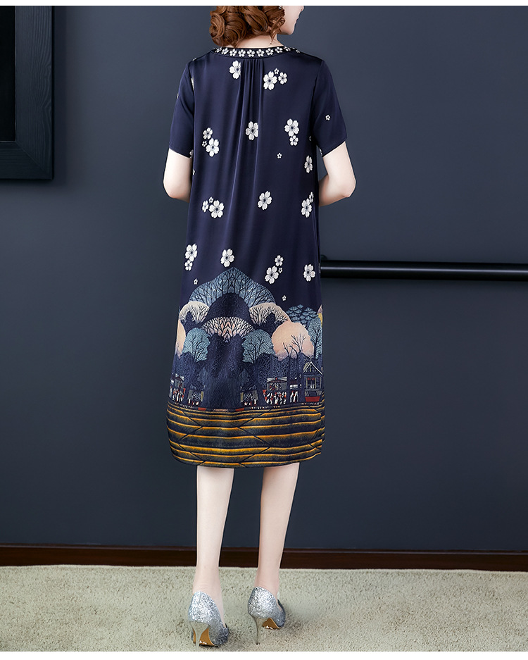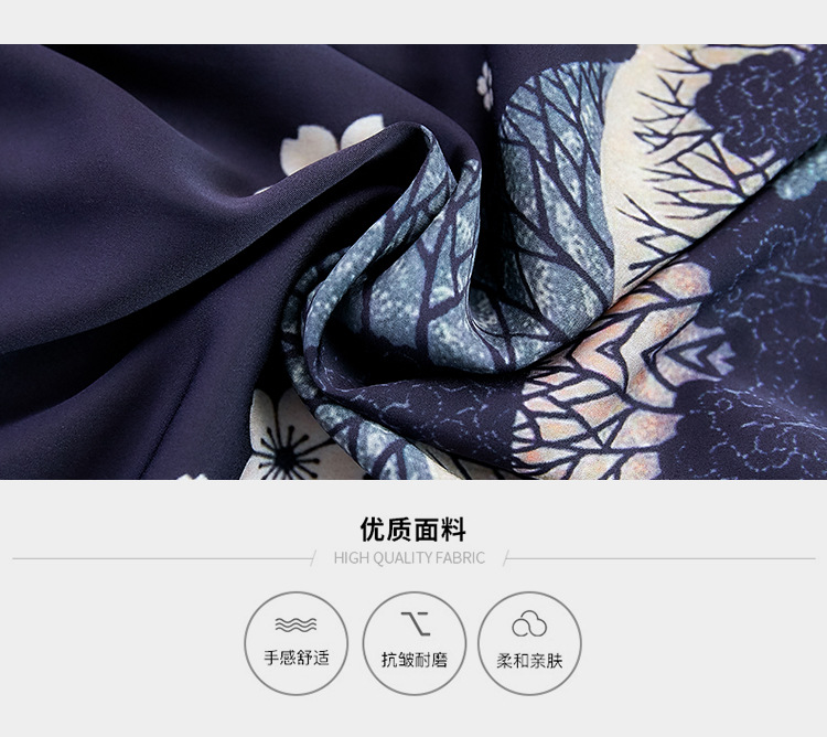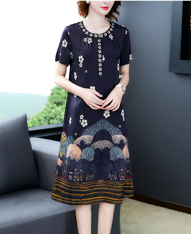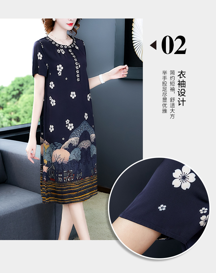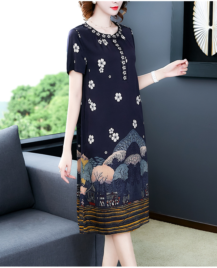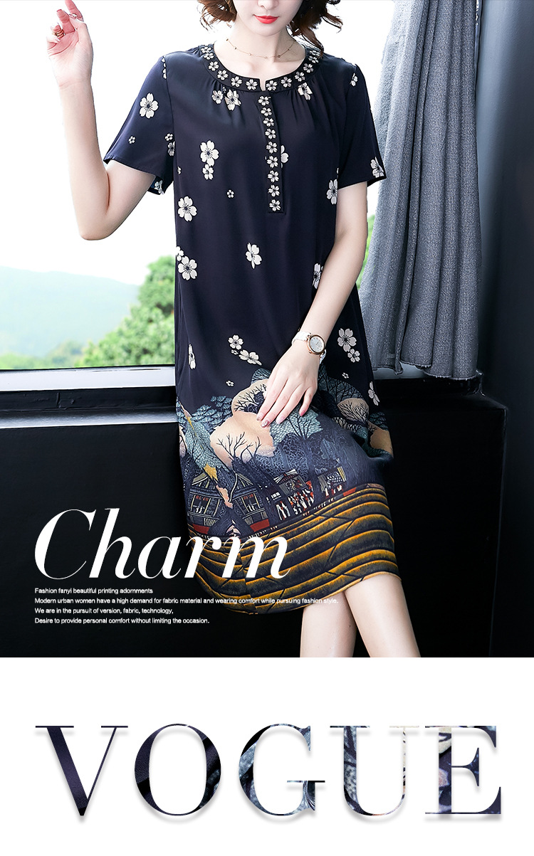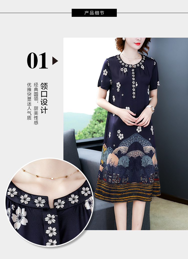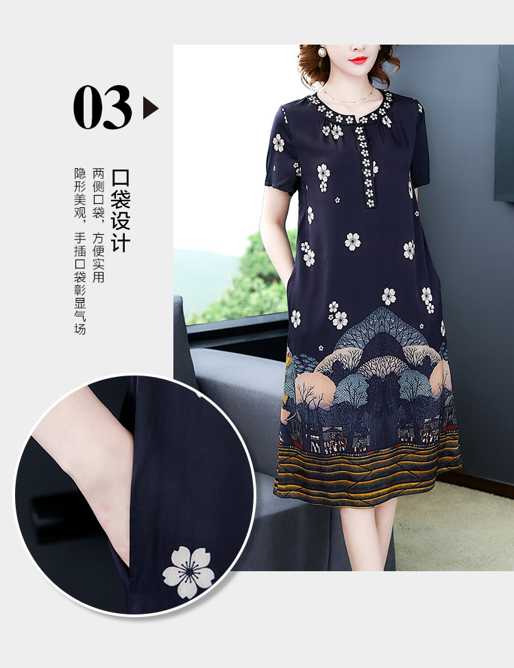 NYF-85456新款圆领印花莨绸纱香云纱连衣裙