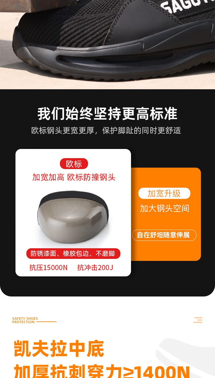 新品四季款超轻劳保鞋欧标钢头防砸防刺穿工作轻便舒适软底透气