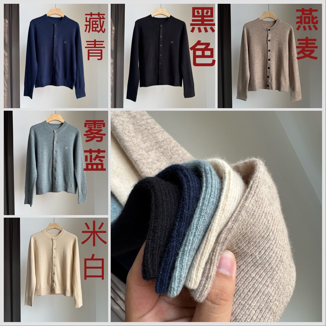 Acn经典100%纯羊毛笑脸开衫,100%纯羊毛,100%纯羊毛,他们家最经典的款式,每年都有改变迭代,今年外贸公司下过来的订单与往年相比工艺有所改变,更复杂 细节更精致,新色系全部订染订纺纱线 每个颜色都是经典都非常显白 超级百搭