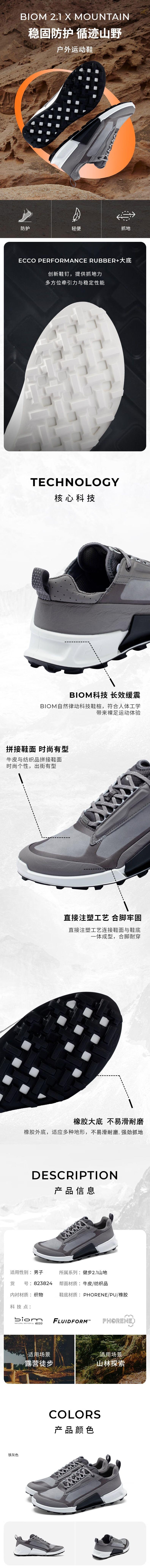 ECCO爱步 男式运动户外鞋 82382450843