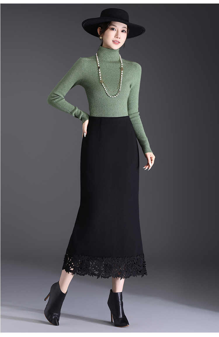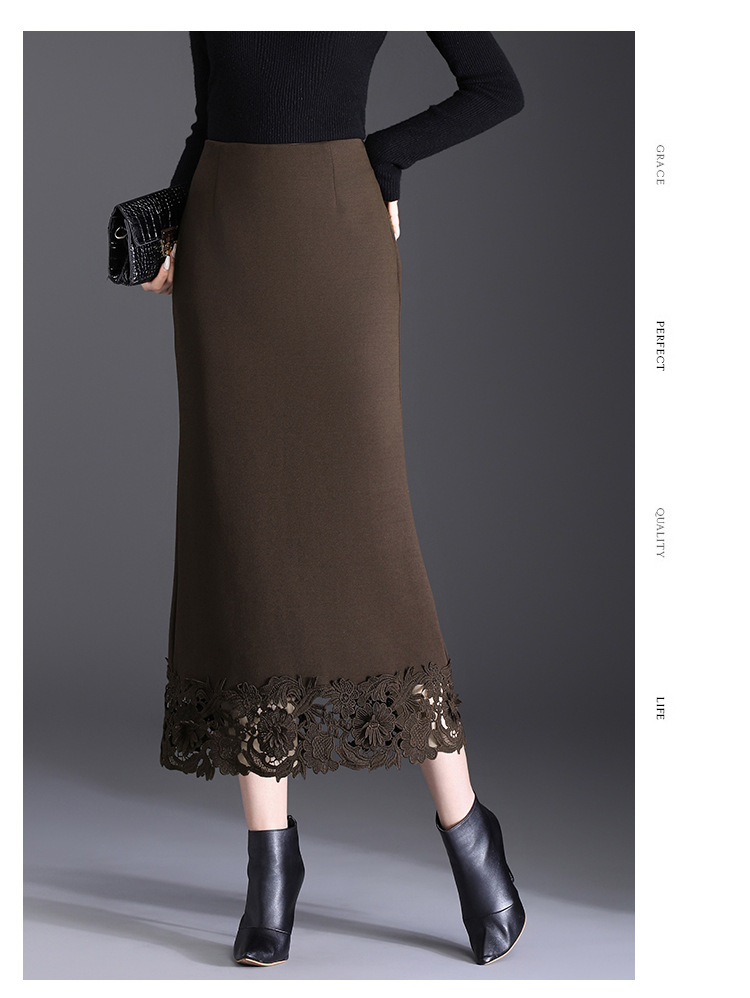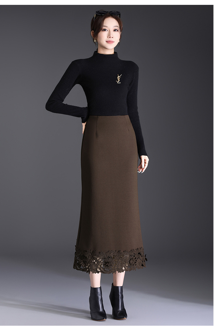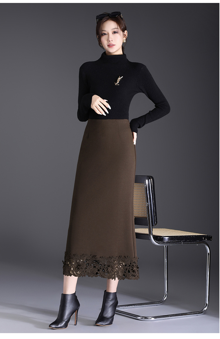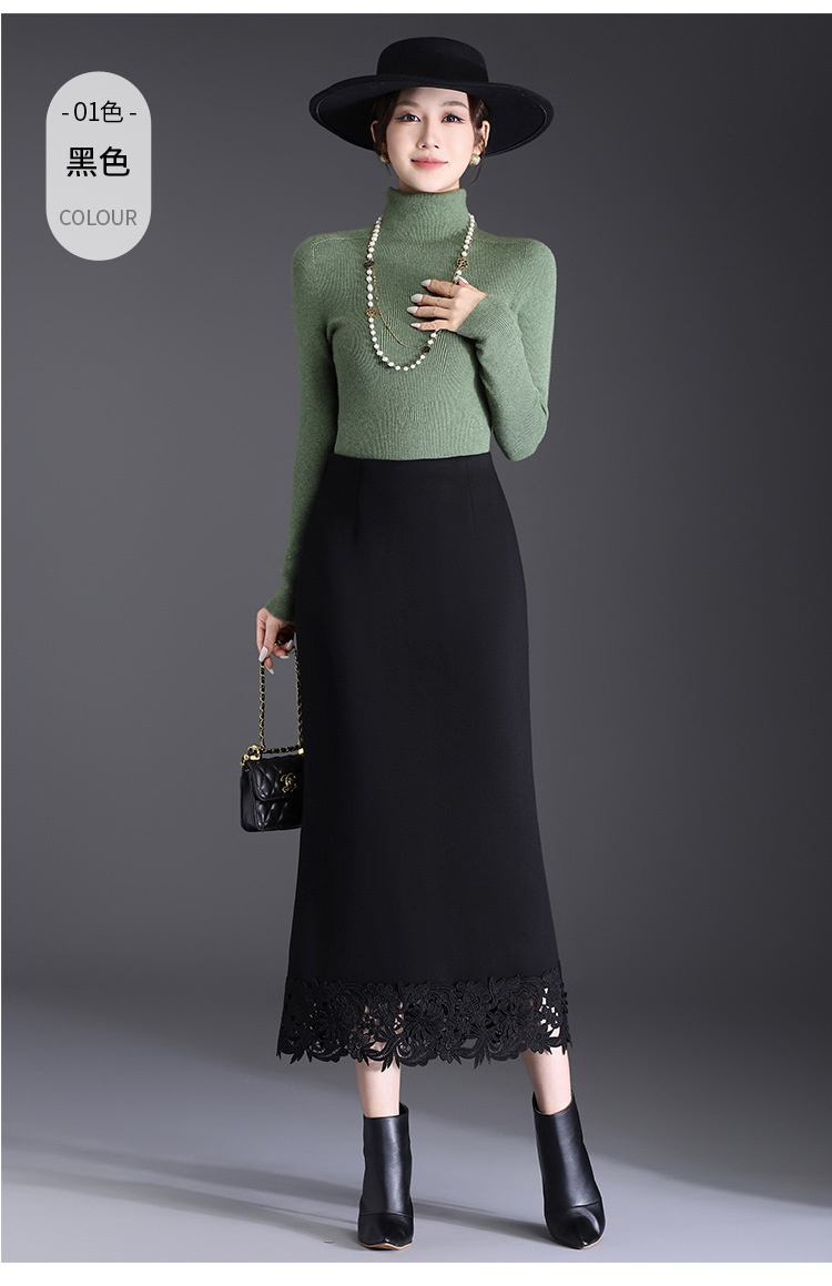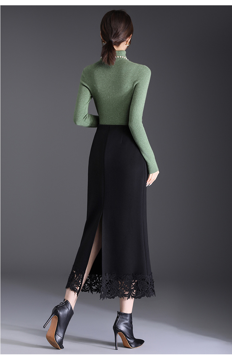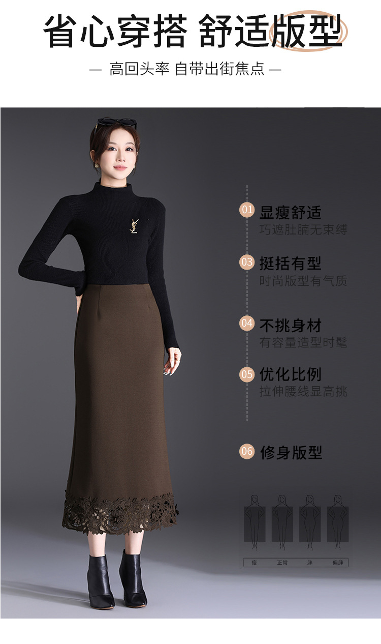 QYM 7103-Y蕾丝边包臀裙半身裙直筒一步裙气质裙 商品图4