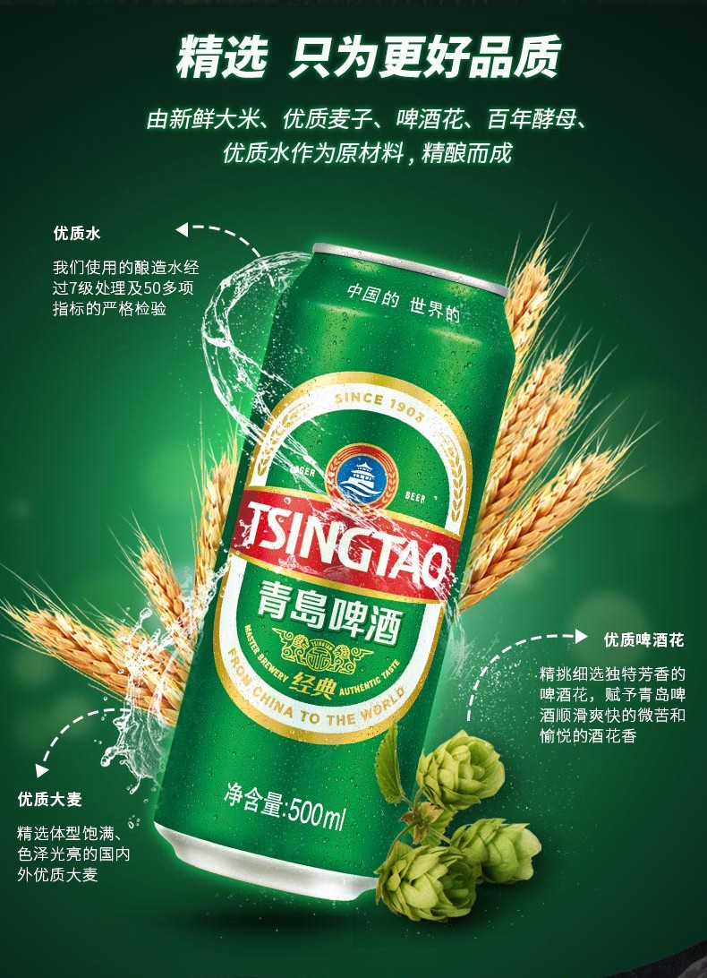 【青岛啤酒】经典啤酒500ml*24听
