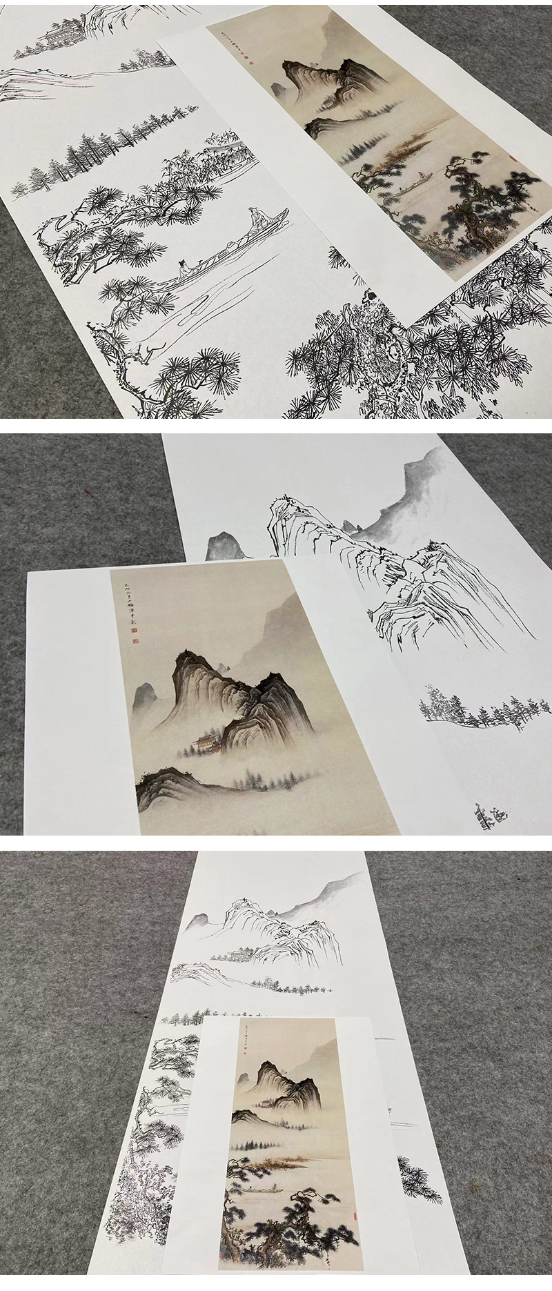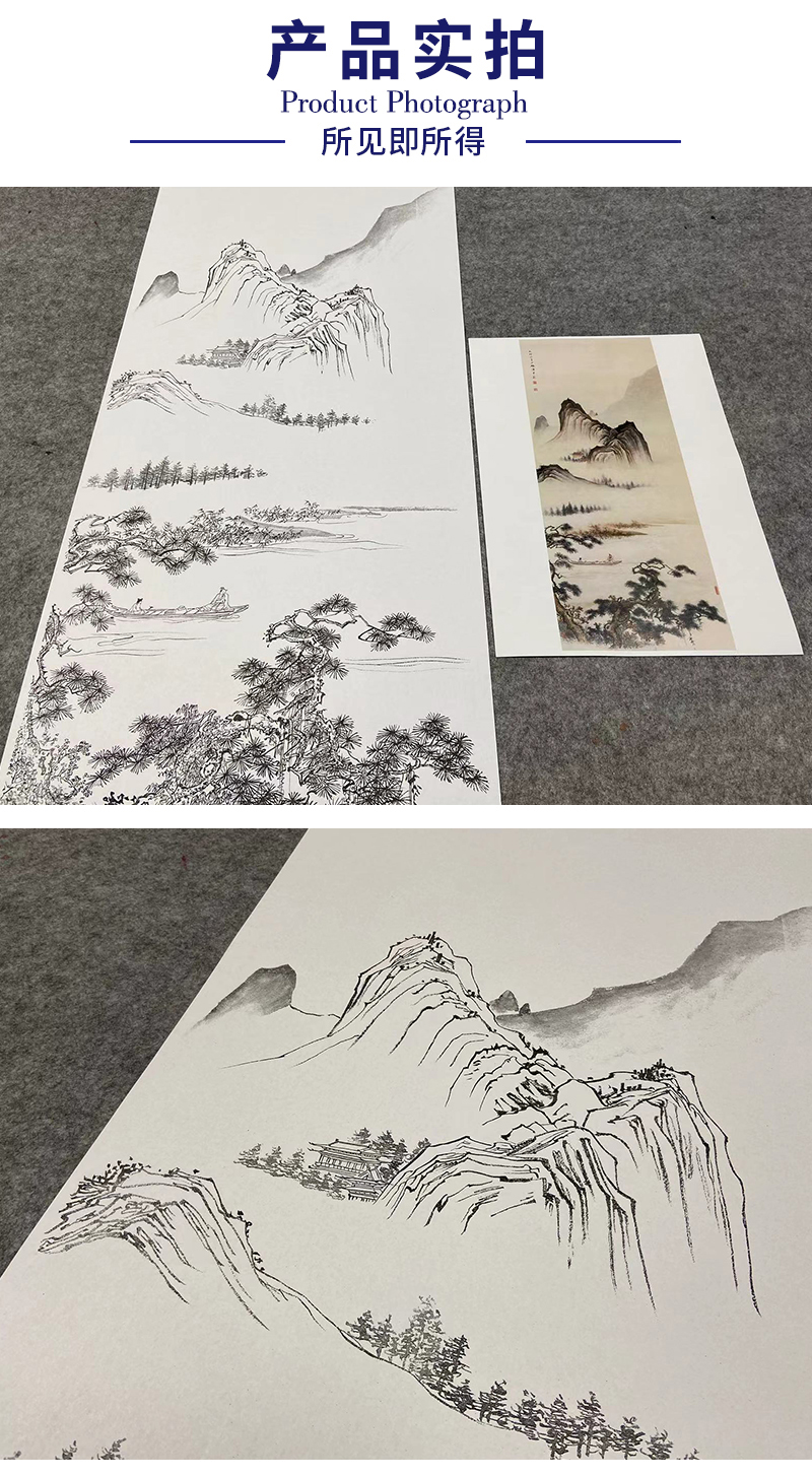 陈少梅竖幅工笔山水白描底稿-《山远江阔》-多种白描尺寸可选-CR40