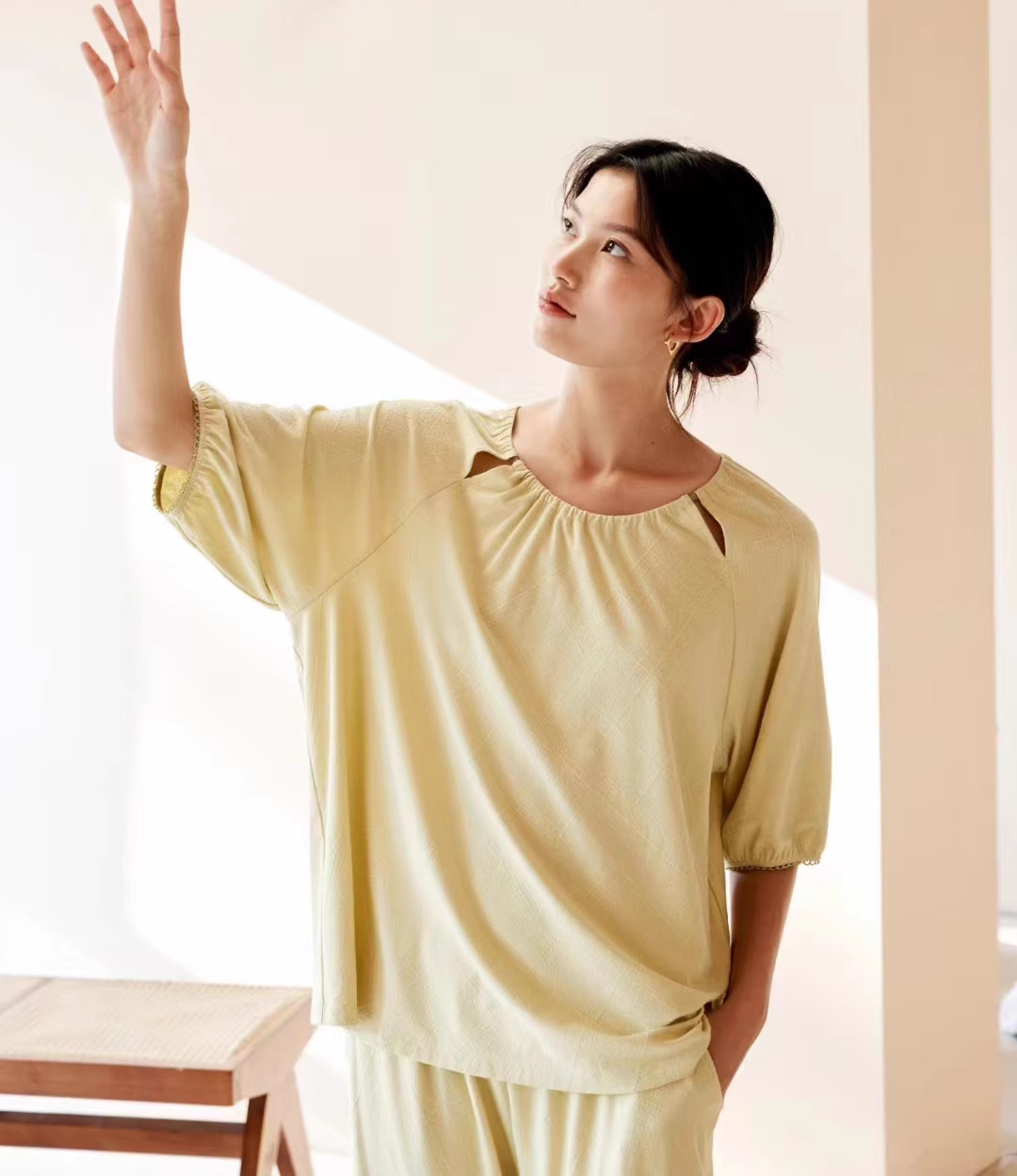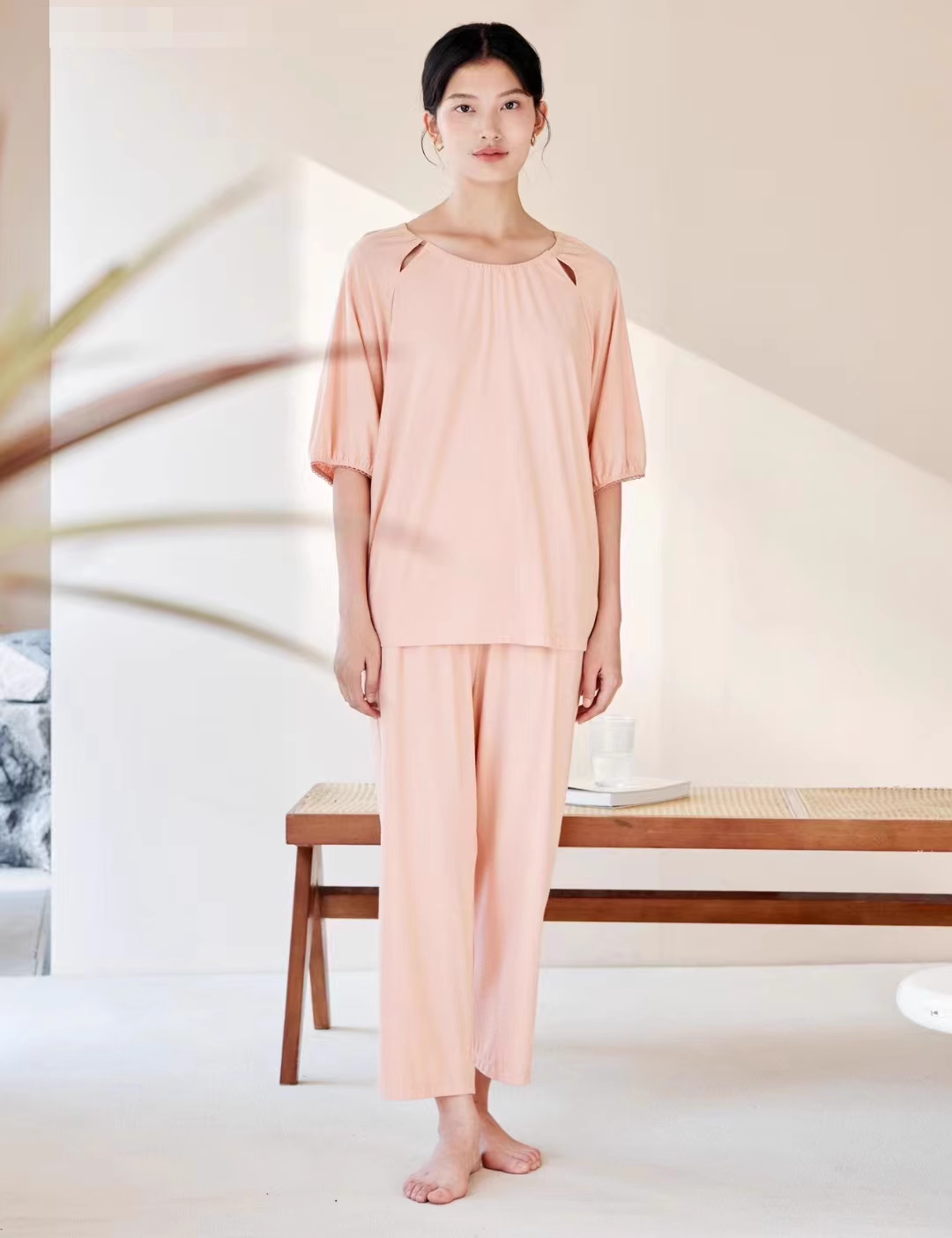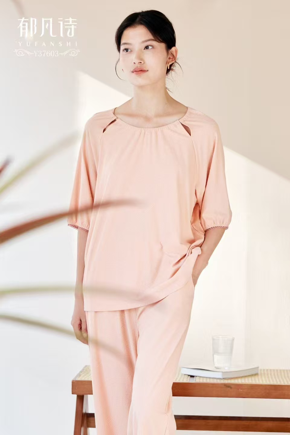 郁凡诗-圆领套头七分袖睡衣套装V领开衫家居服Y37603【ZB】