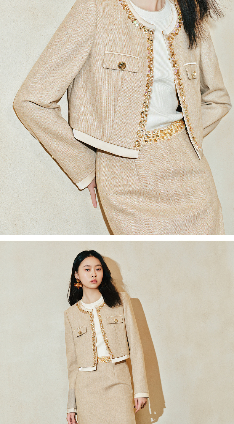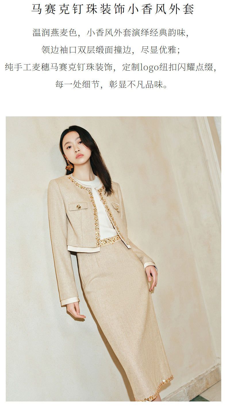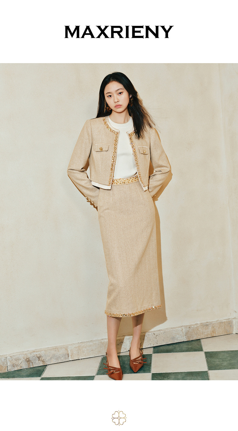【商场同款-都市华丽日常】MAXRIENY小香风钉珠外套晚会宴会穿搭(货号:MC85JA020)