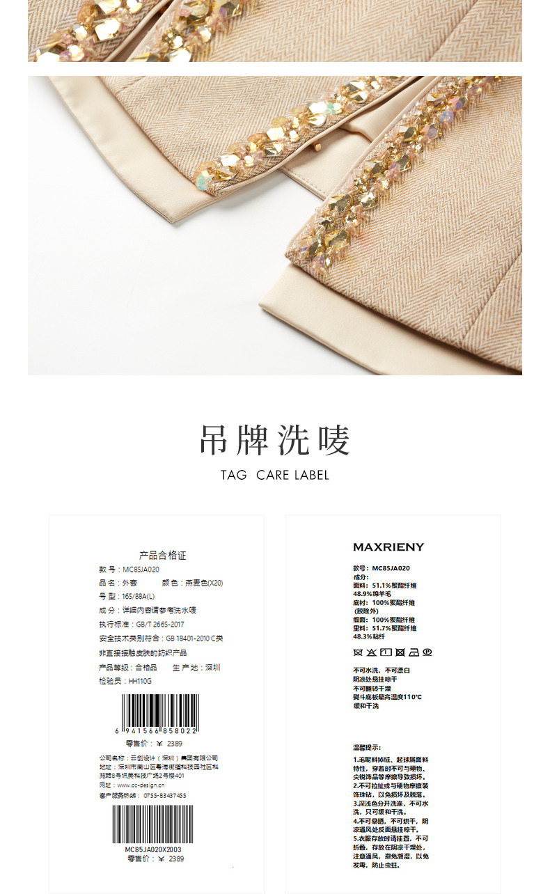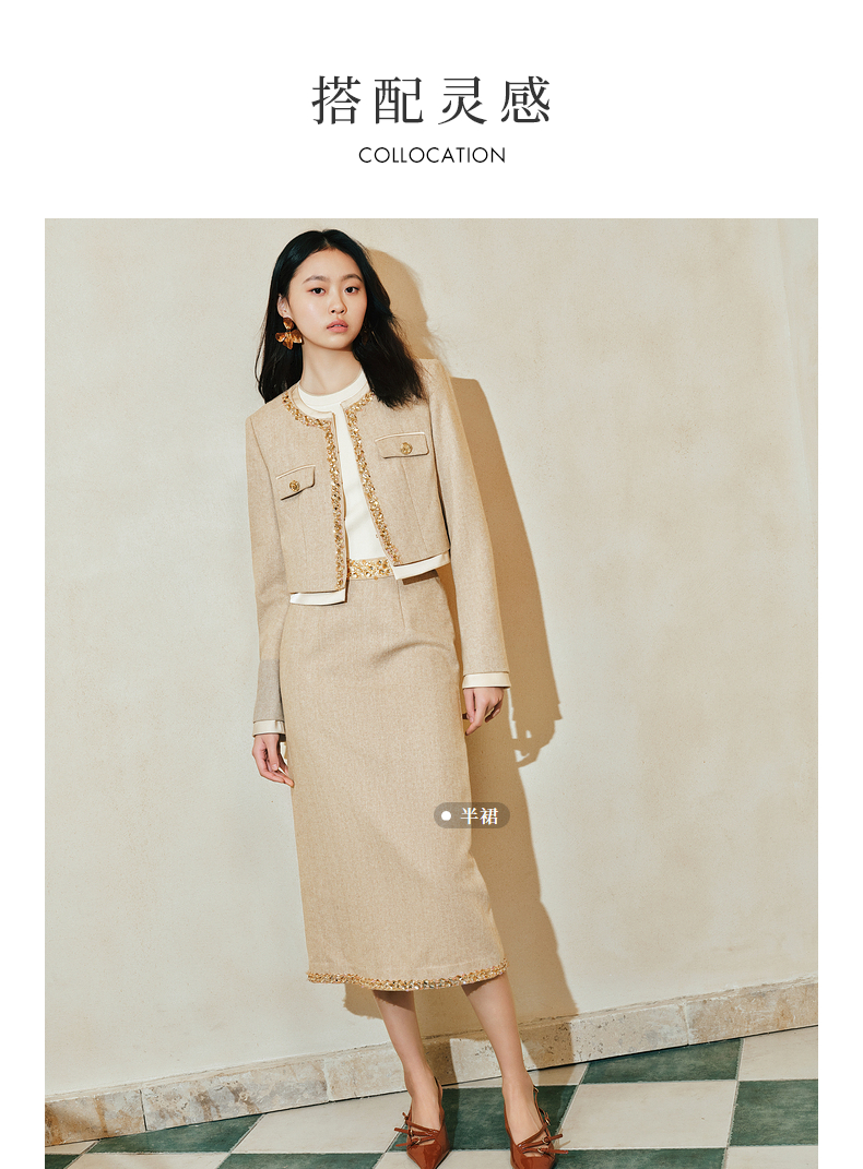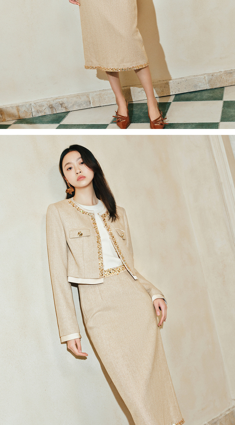 【商场同款-都市华丽日常】MAXRIENY小香风钉珠外套晚会宴会穿搭(货号:MC85JA020)