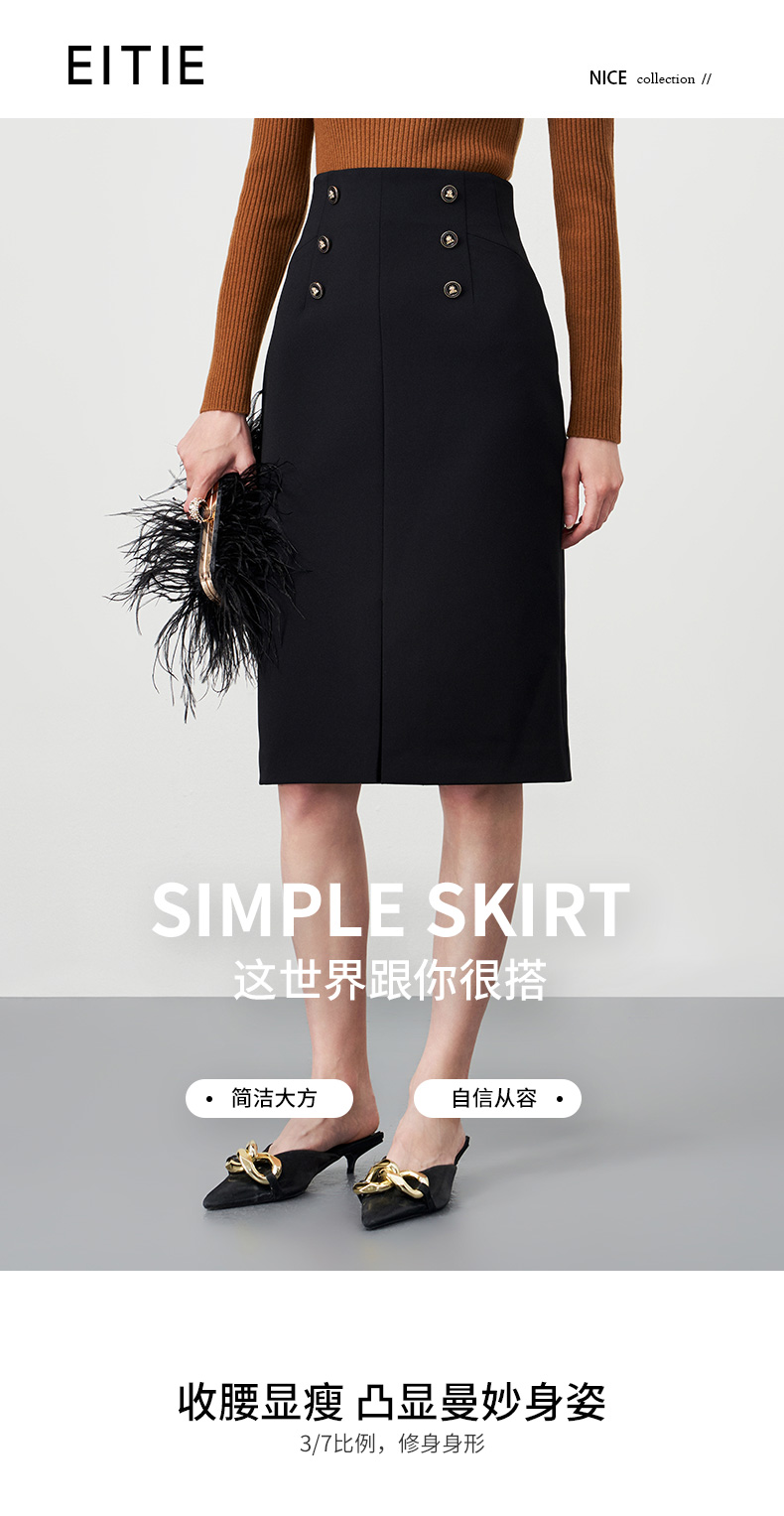 EITIE爱特爱秋季新款女装时尚包臀修身显瘦半身裙6706409