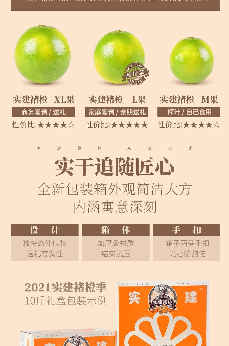 云南玉溪 2021实建褚橙M/L/XL级10斤礼盒装