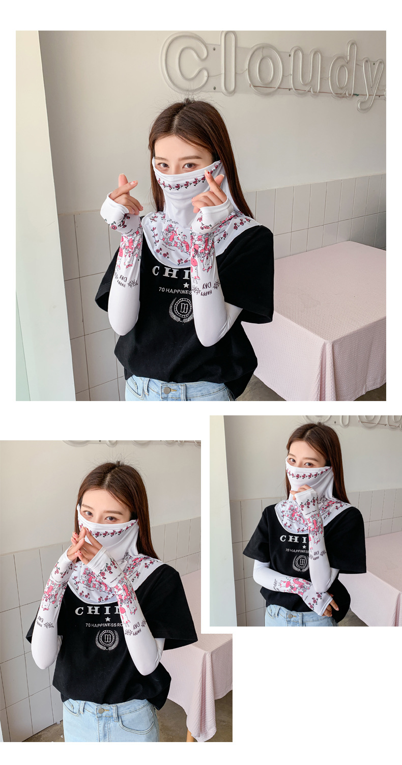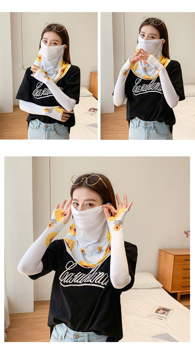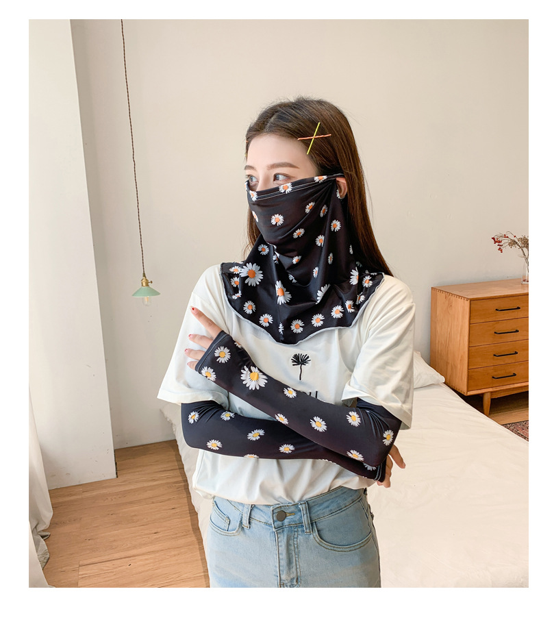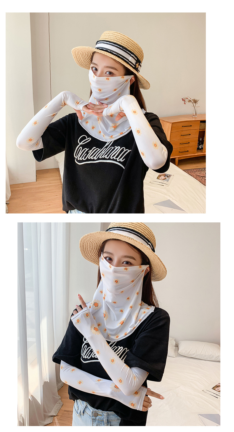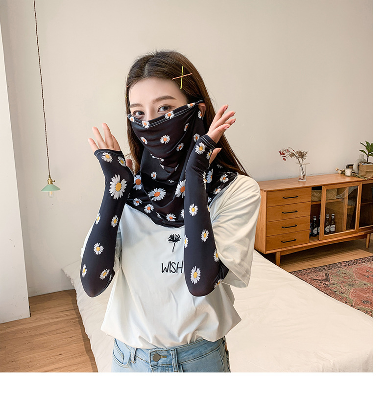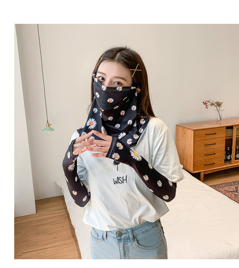(五一出游必备——护颈防晒口罩+冰袖)女神泫雅风冰丝小雏菊系列一体防晒WY