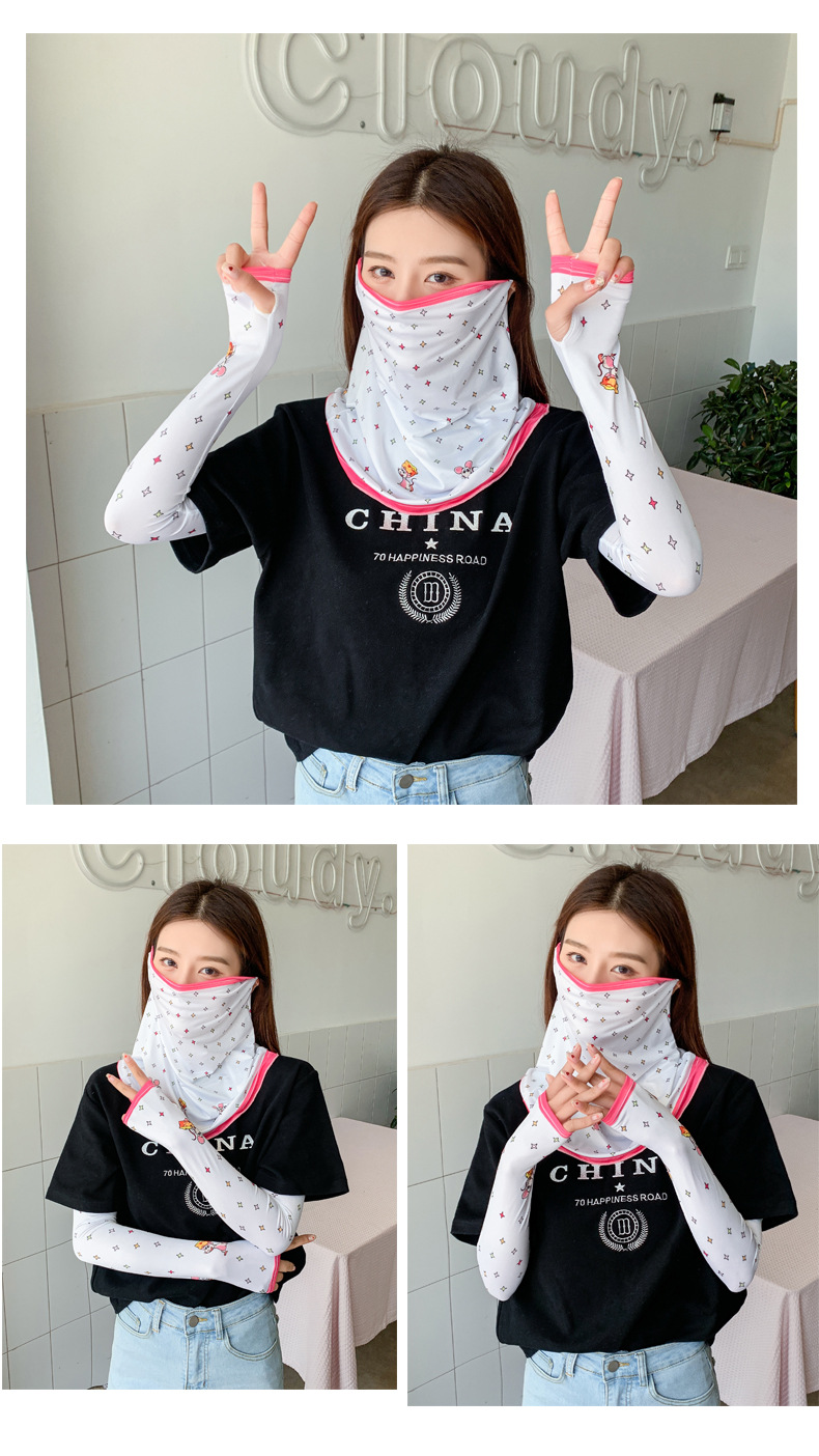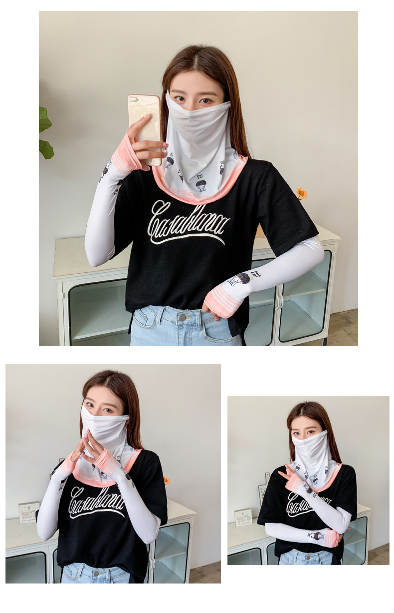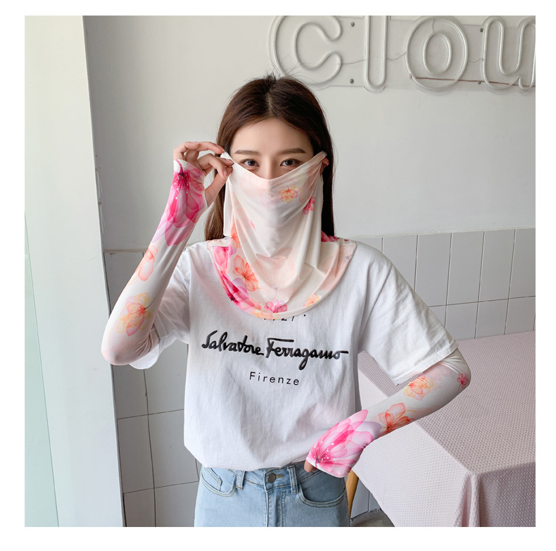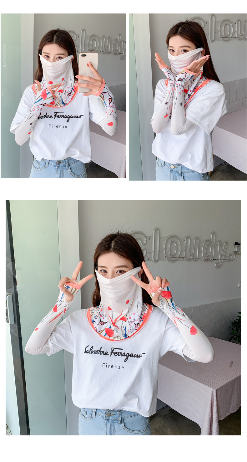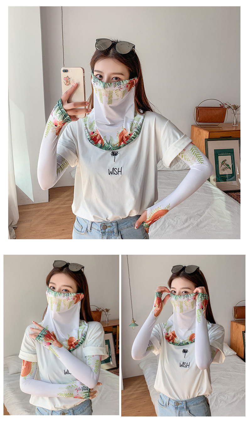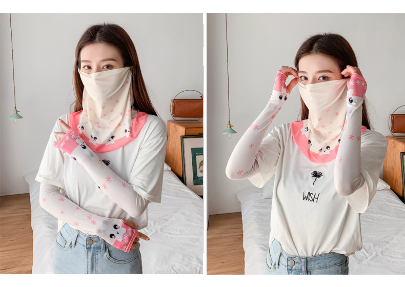 (五一出游必备——护颈防晒口罩+冰袖)女神泫雅风冰丝小雏菊系列一体防晒WY