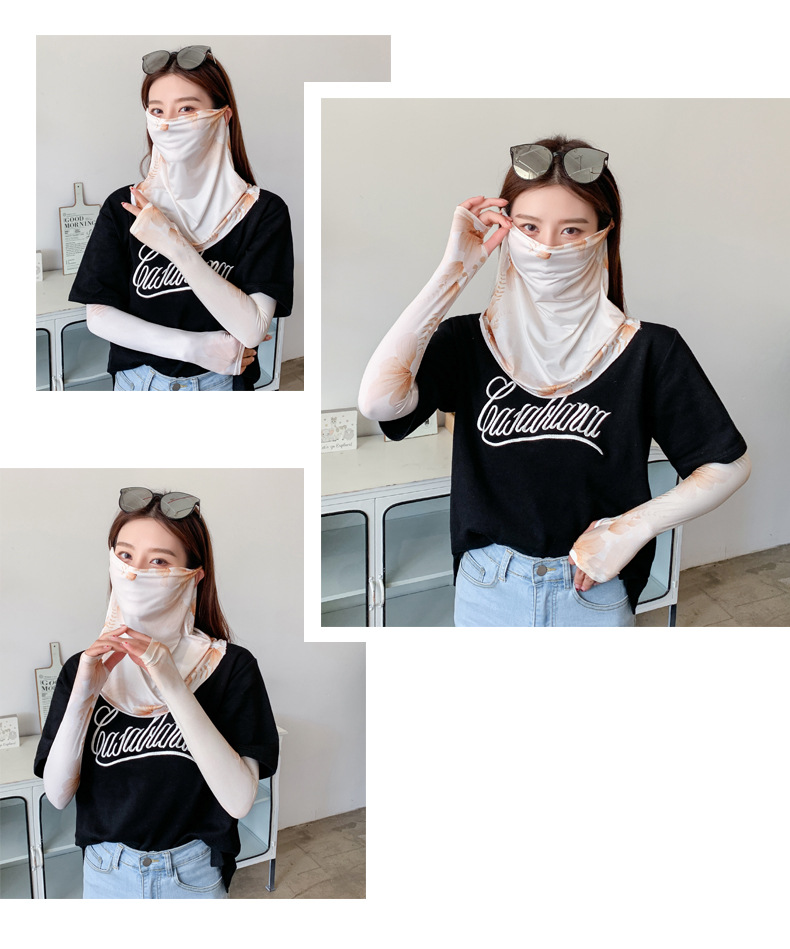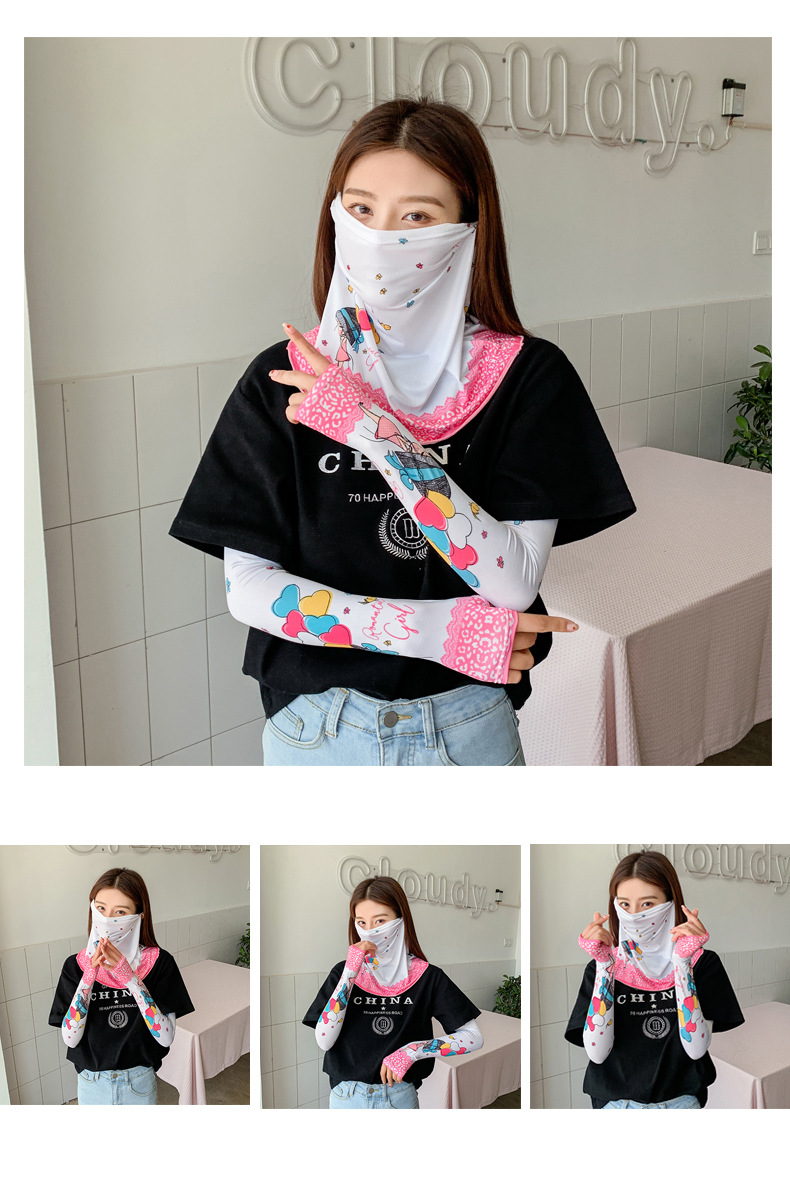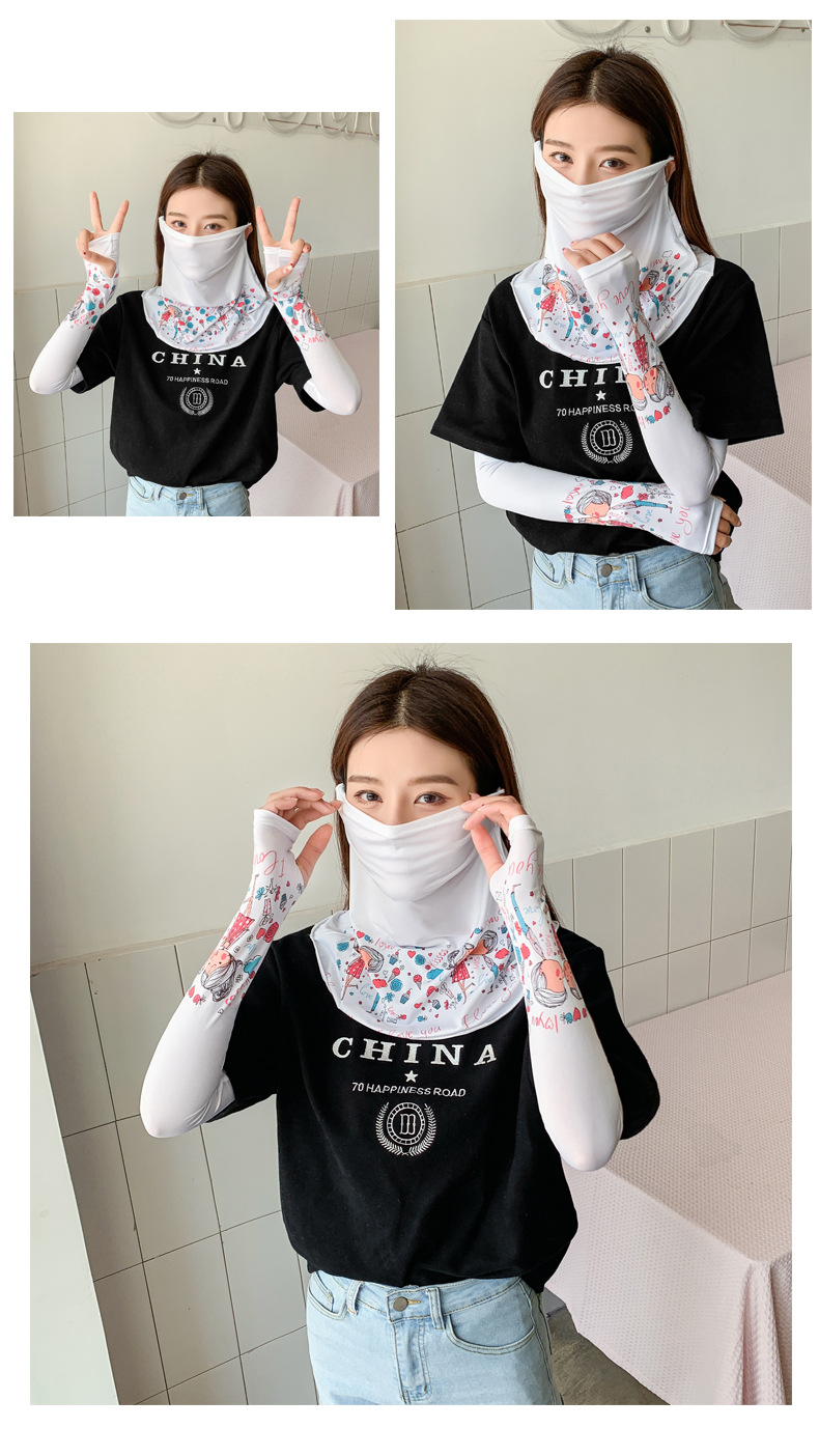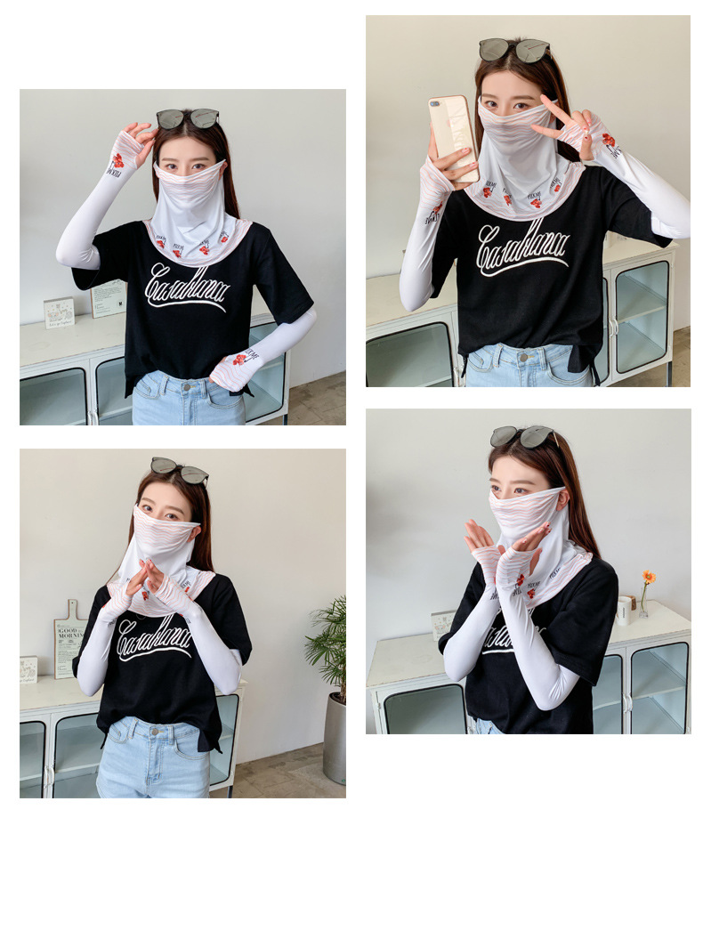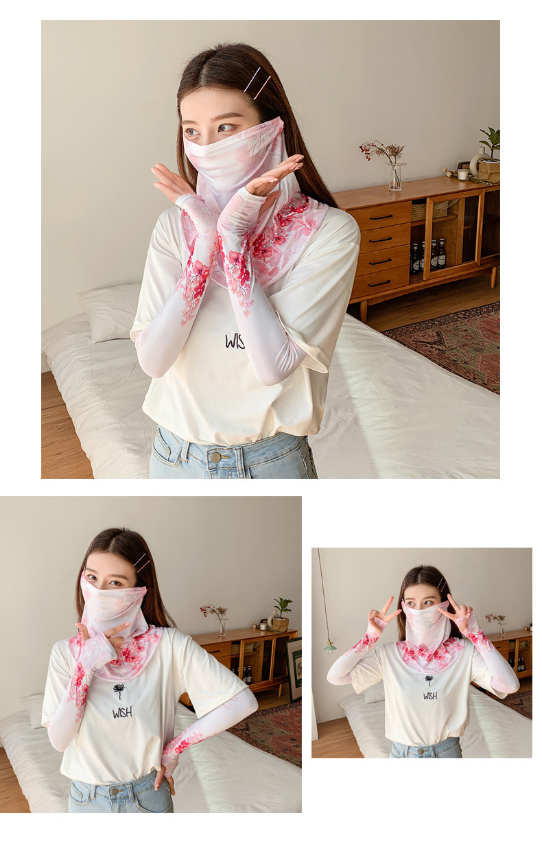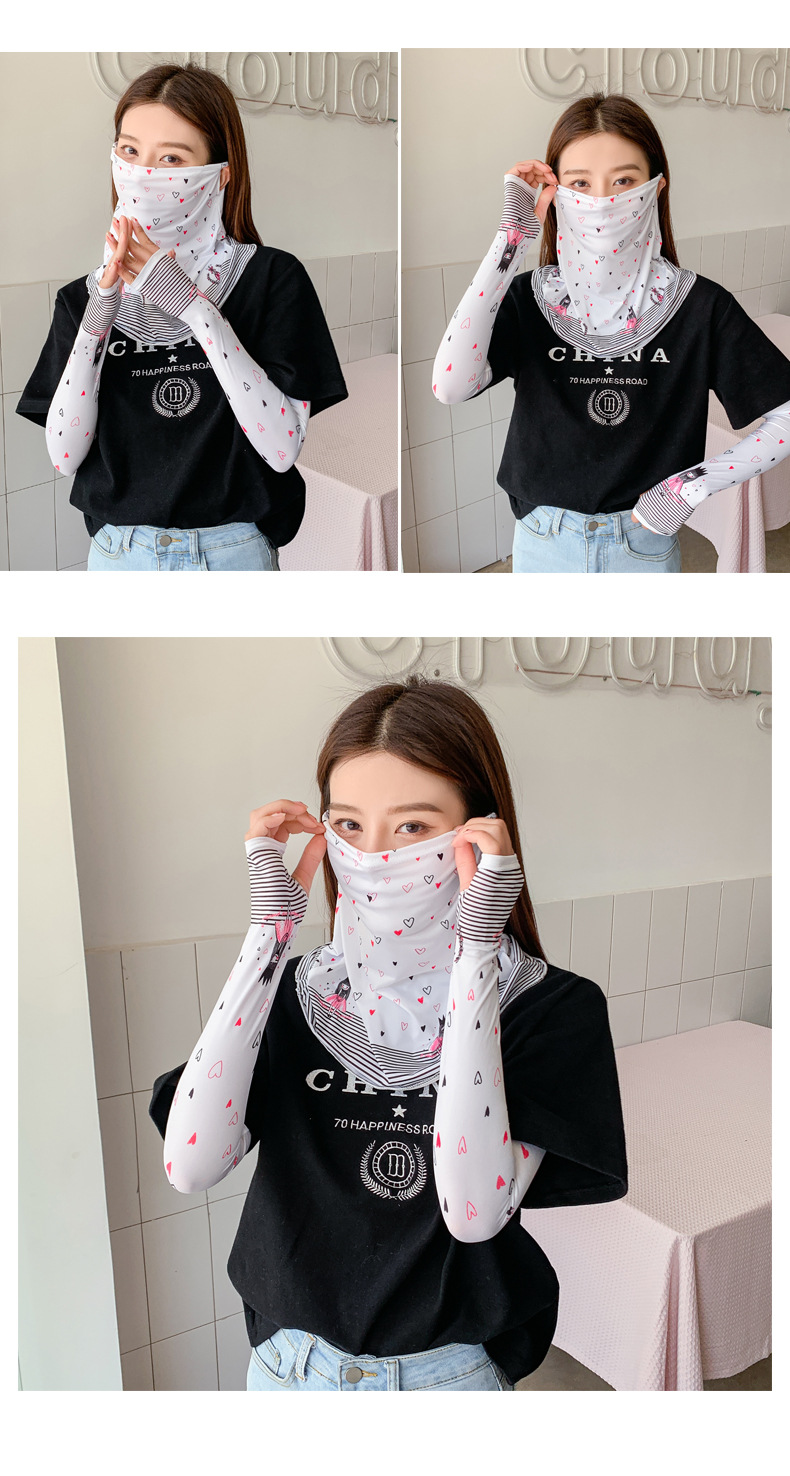 (五一出游必备——护颈防晒口罩+冰袖)女神泫雅风冰丝小雏菊系列一体防晒WY